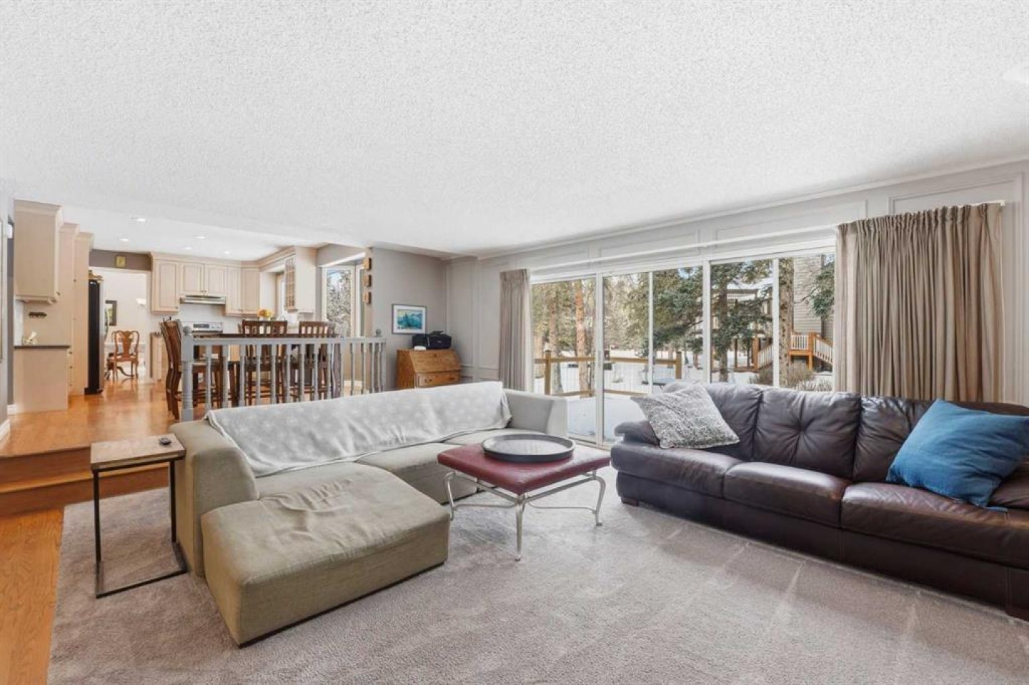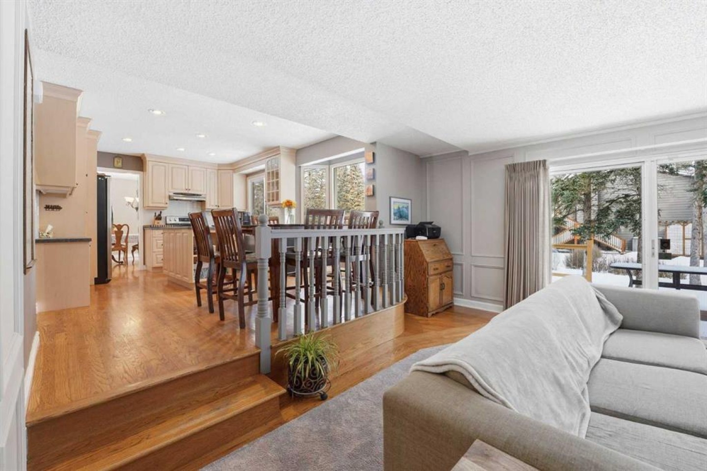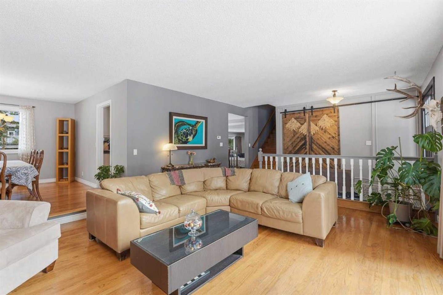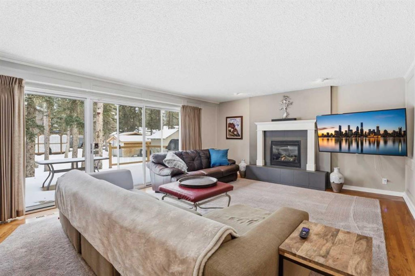 Welcome to a beautifully cared for family home nestled among the towering evergreens of Redwood Meadows where nature, space, and community come together. This inviting 2-storey residence offers over 2,500 sq ft above grade plus a fully finished basement, providing over 3,300 sq ft of developed living space on a nearly 16,150 sq ft lot. Warm and welcoming from the moment you arrive, the home features a new custom Oak front entry door and new garage door, leading inside to a thoughtfully designed layout with hardwood flooring and newer, luxuriously soft carpeting throughout. The main level offers exceptional versatility, highlighted by a sunken great room with a gas fireplace, an additional living room with a wood-burning fireplace, formal dining space, and a bright kitchen overlooking the private treed yard.