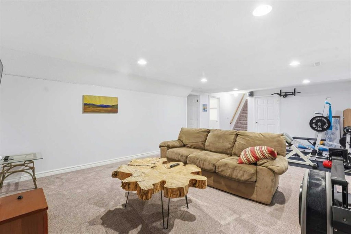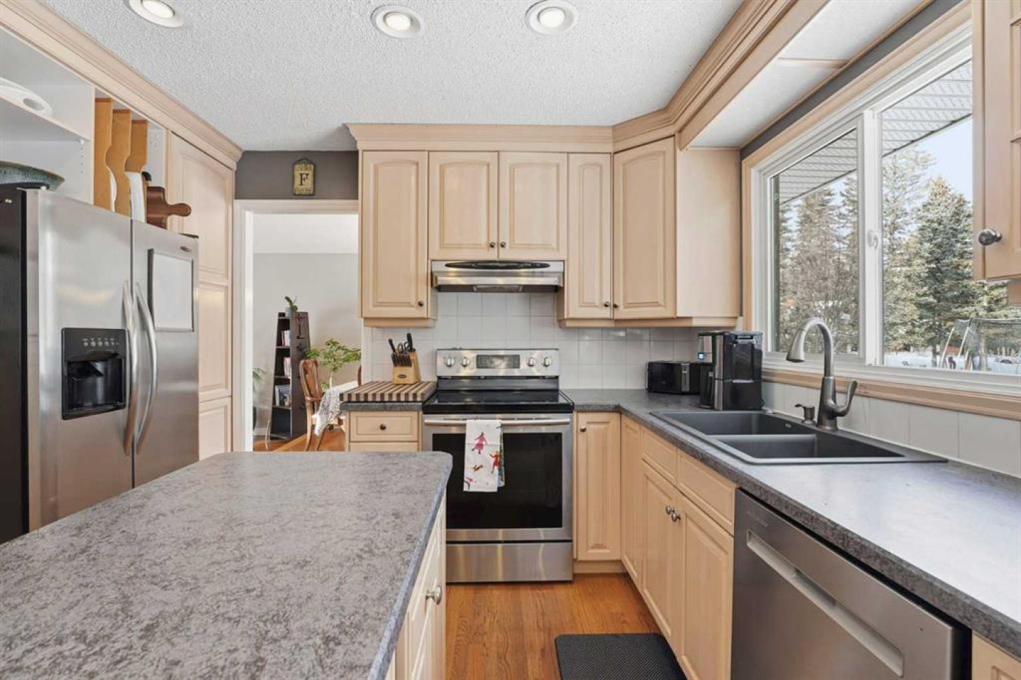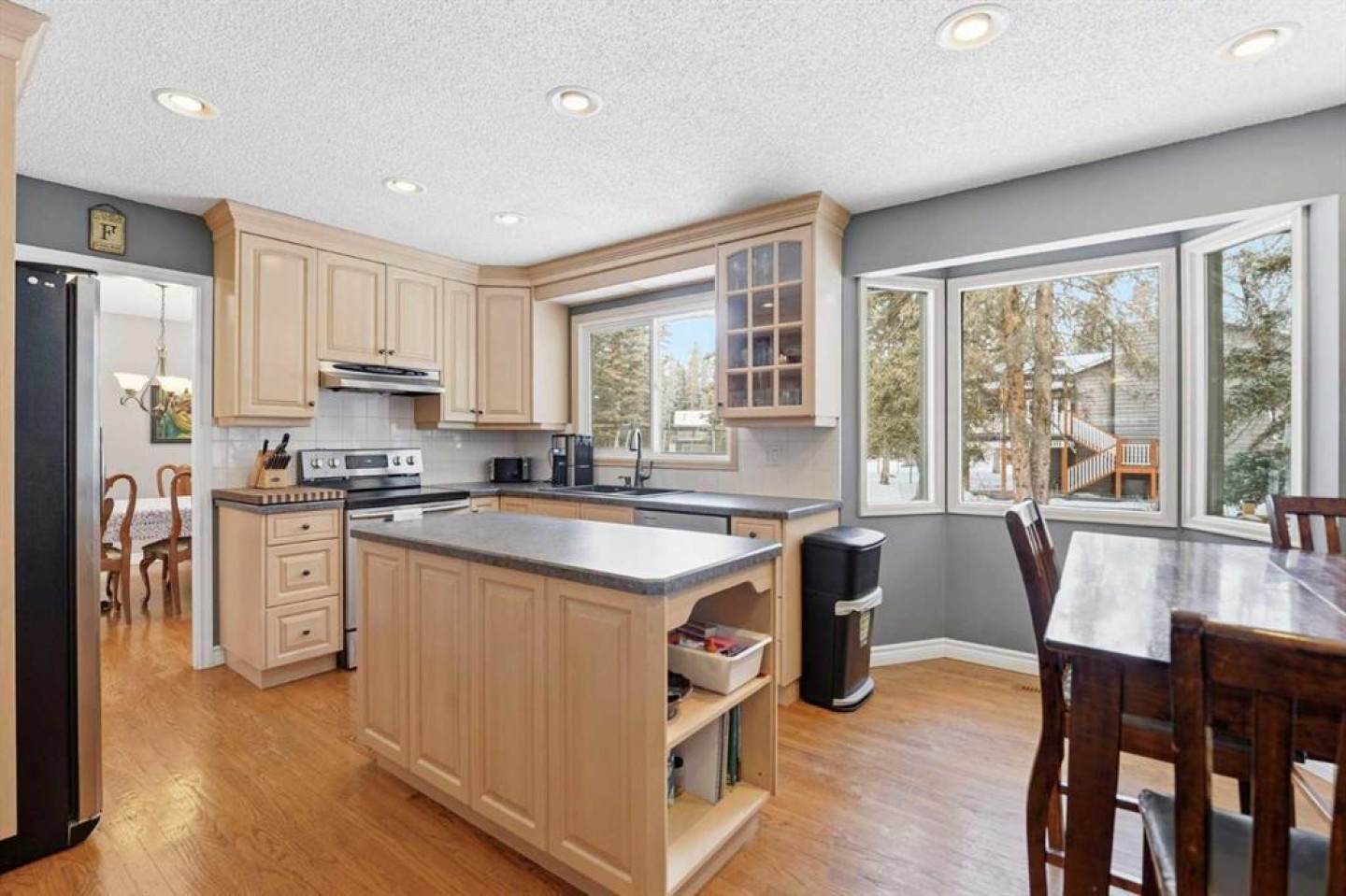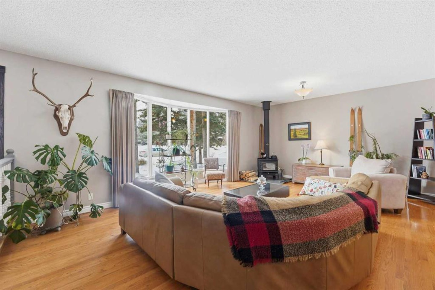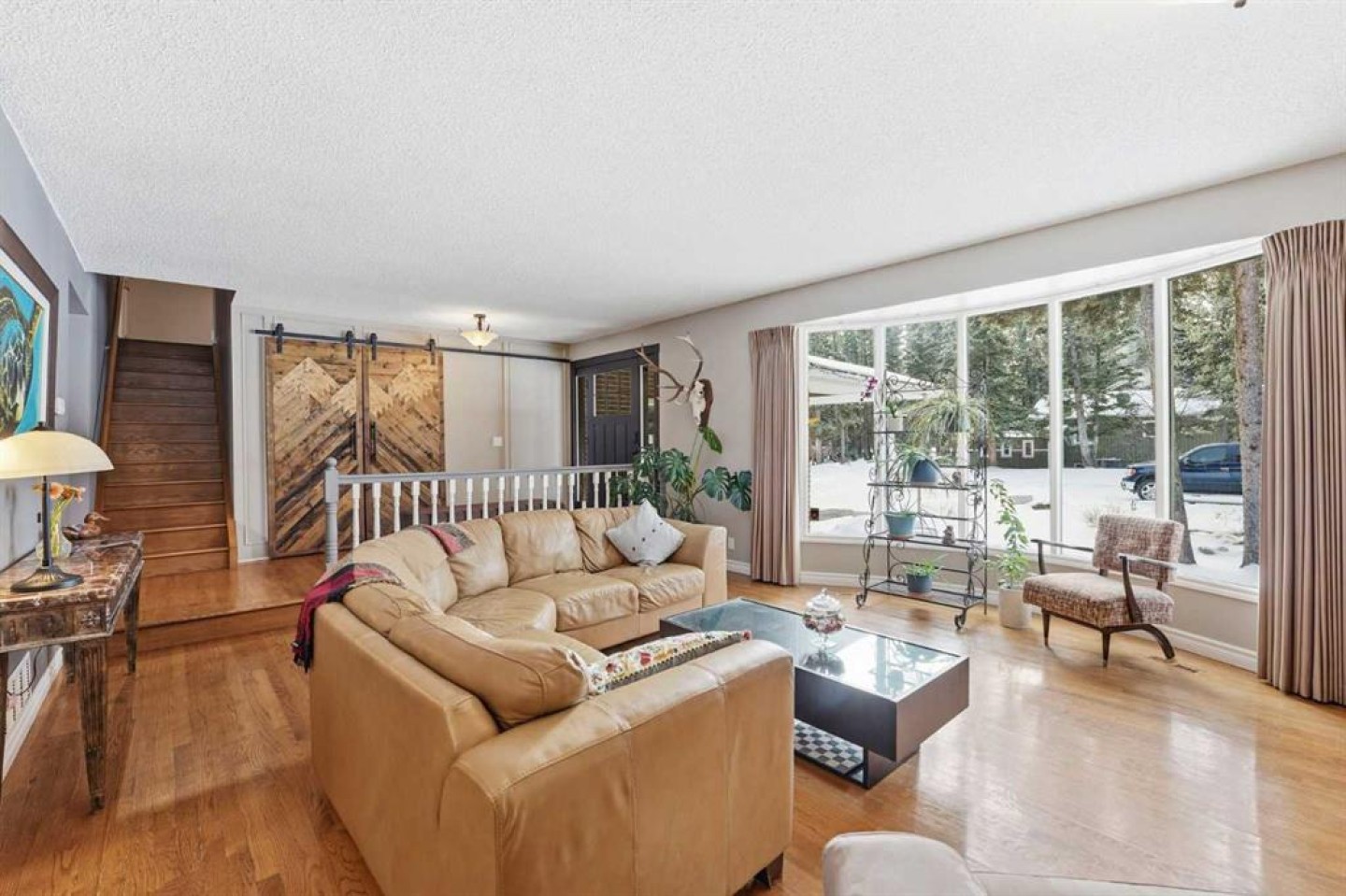 Welcome to a beautifully cared for family home nestled among the towering evergreens of Redwood Meadows where nature, space, and community come together. This inviting 2-storey residence offers over 2,500 sq ft above grade plus a fully finished basement, providing over 3,300 sq ft of developed living space on a nearly 16,150 sq ft lot. Warm and welcoming from the moment you arrive, the home features a new custom Oak front entry door and new garage door, leading inside to a thoughtfully designed layout with hardwood flooring and newer, luxuriously soft carpeting throughout. The main level offers exceptional versatility, highlighted by a sunken great room with a gas fireplace, an additional living room with a wood-burning fireplace, formal dining space, and a bright kitchen overlooking the private treed yard.