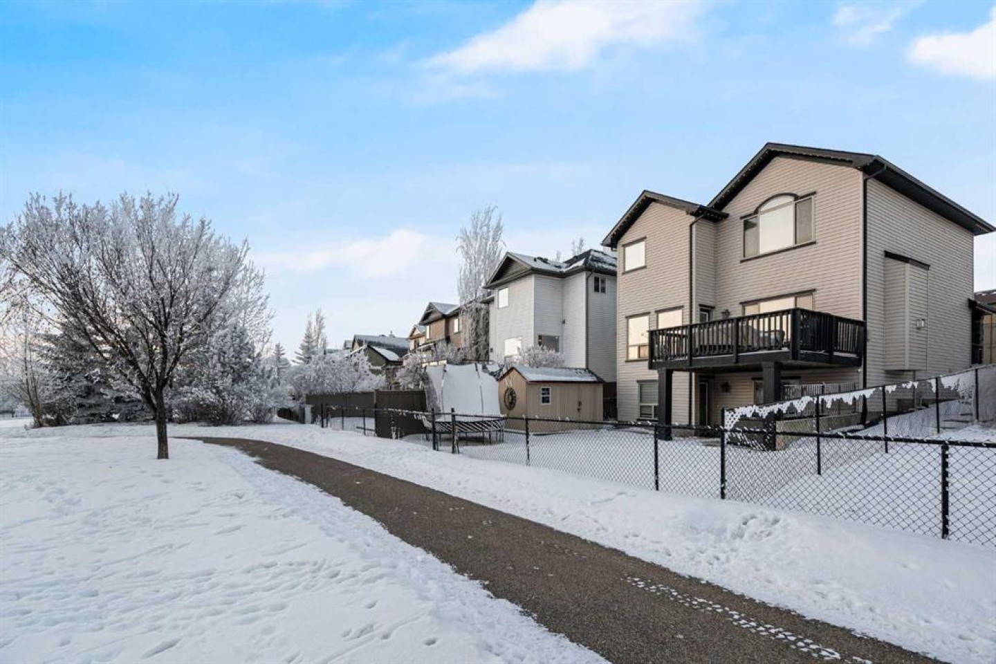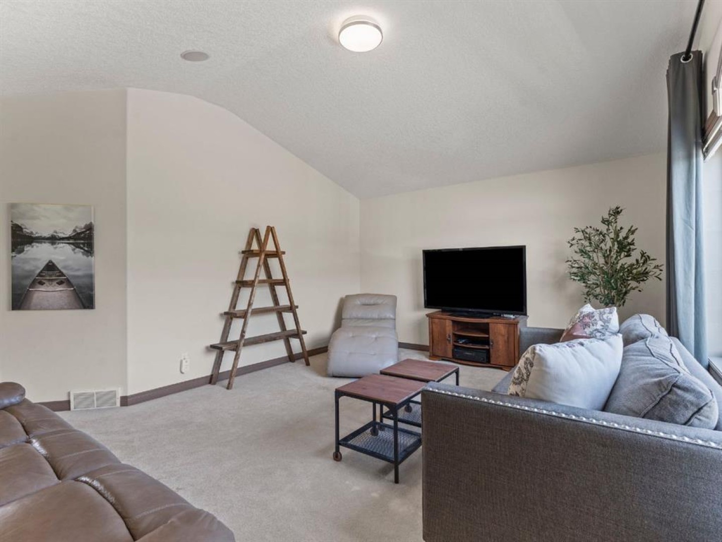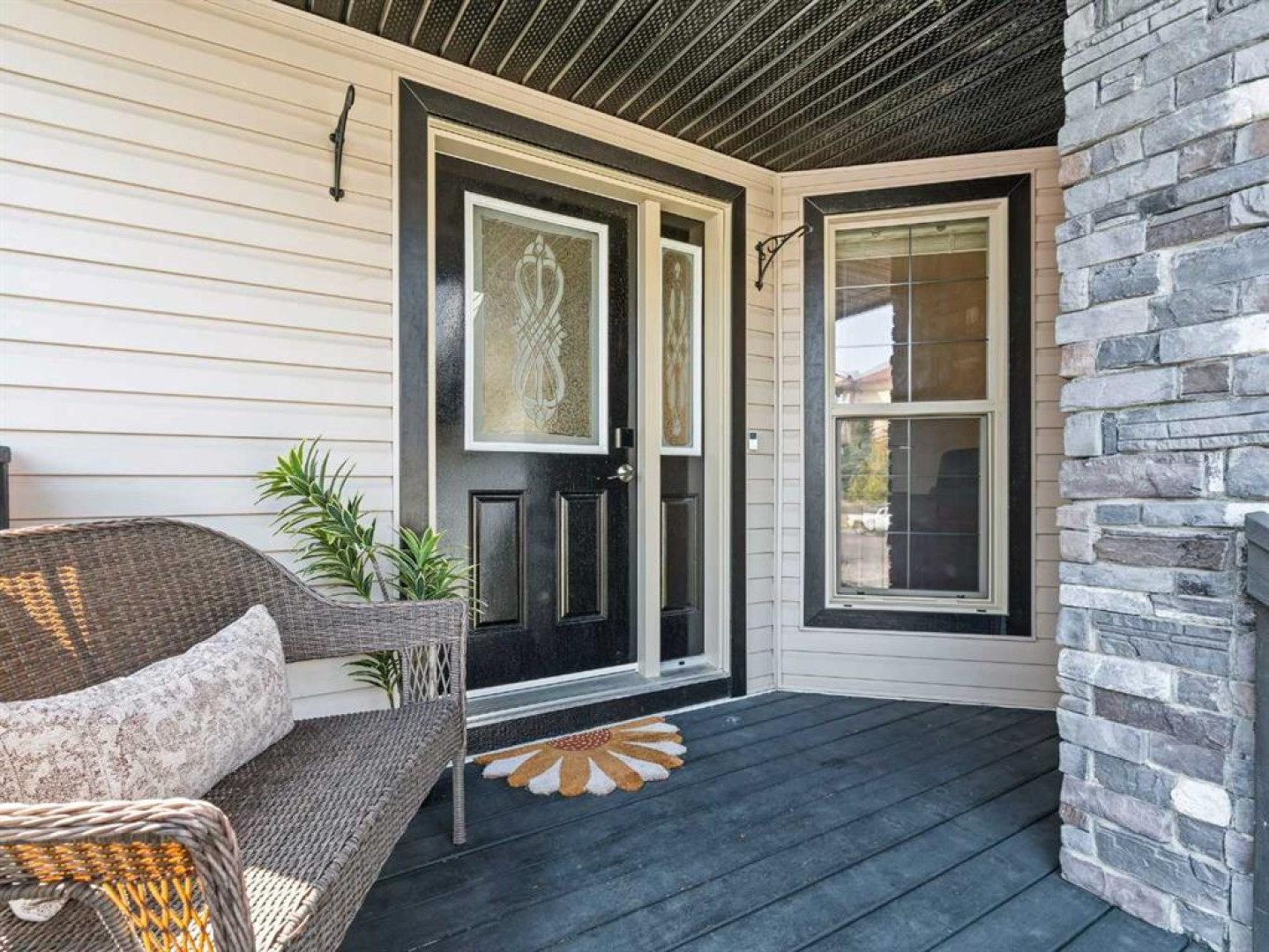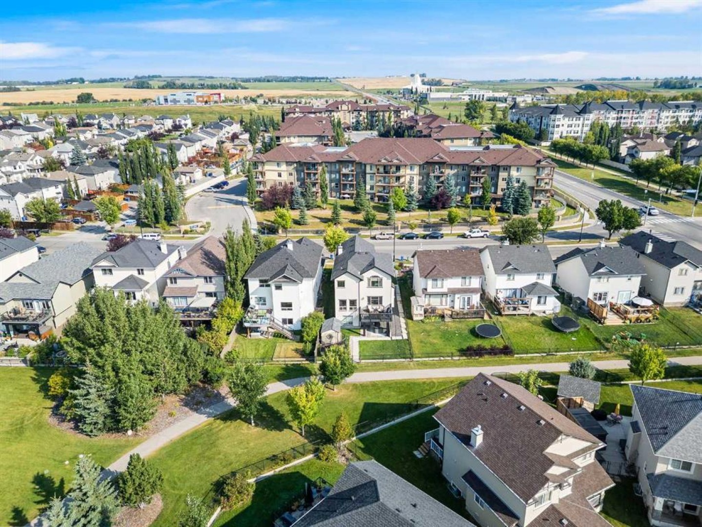 Welcome to this fully finished walkout 2-storey offering over 3,000 sq ft of living space designed for both comfort and lifestyle. Complete with air conditioning, a large garage, and a setting that backs onto greenspace and walking paths with mountain views and a park nearby, this home truly has it all. You’ll also enjoy exclusive lake access with year-round activities—swimming, fishing, paddle boarding, volleyball, basketball, and barbecues in the summer, plus skating in the winter. Add in a great school district and quick access to Calgary, just 15 minutes to South Calgary, and the location checks every box. Inside, you’re greeted by a grand entrance, where the main floor features 9-ft ceilings and hardwood flooring. A front office makes working from home easy, while the open living area offers a gas fireplace and large windows for natural light. The kitchen showcases a big island, dark stainless appliances, and flows to the dining area with access to a back deck where you can enjoy the greenbelt behind you. Upstairs you’ll find a vaulted bonus room and three bedrooms, including a large primary suite with mountain views, a walk-in closet, and a spa inspired ensuite with a jetted tub, walk-in shower, and dual sinks. The fully developed basement adds even more living space with a big bedroom, full bathroom with shower, a wet bar with cabinets, and a large open rec space that walks out to the backyard. This home blends lifestyle, location, and family-friendly features in one complete package. Call your favourite Realtor to book your private showing—homes like this don’t last long!