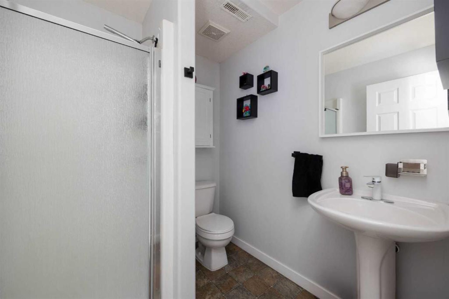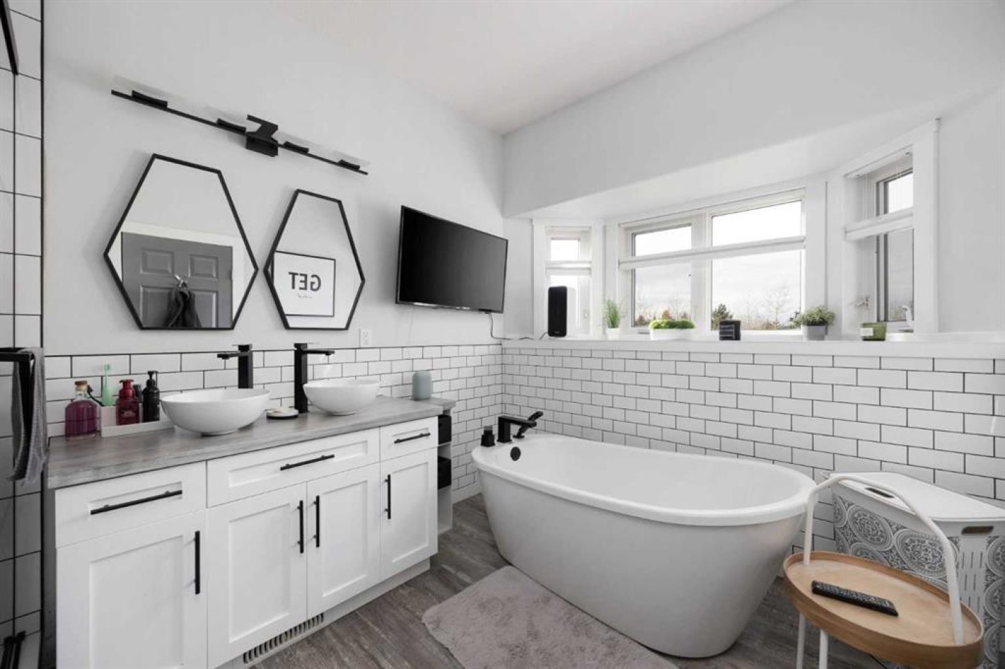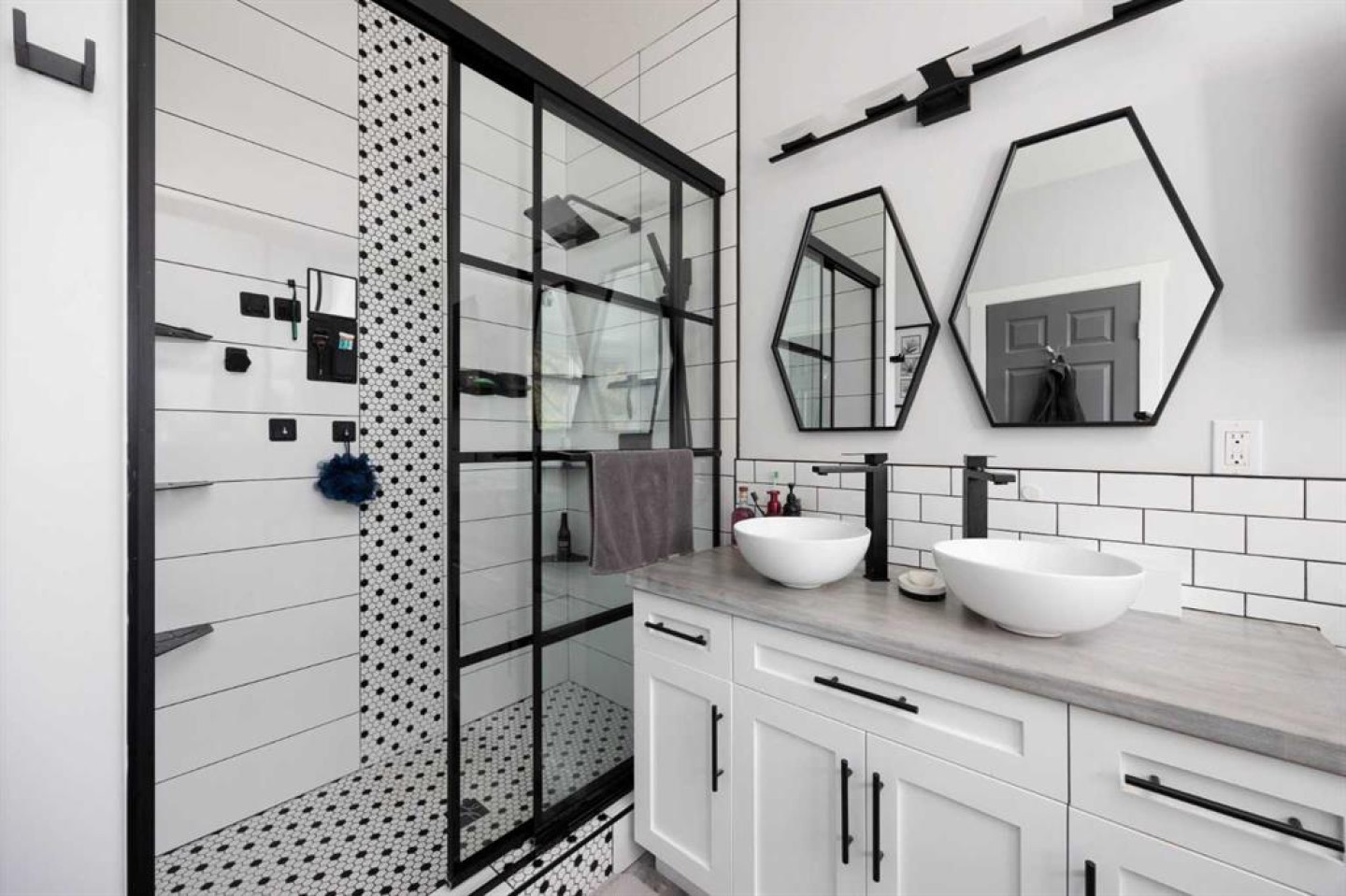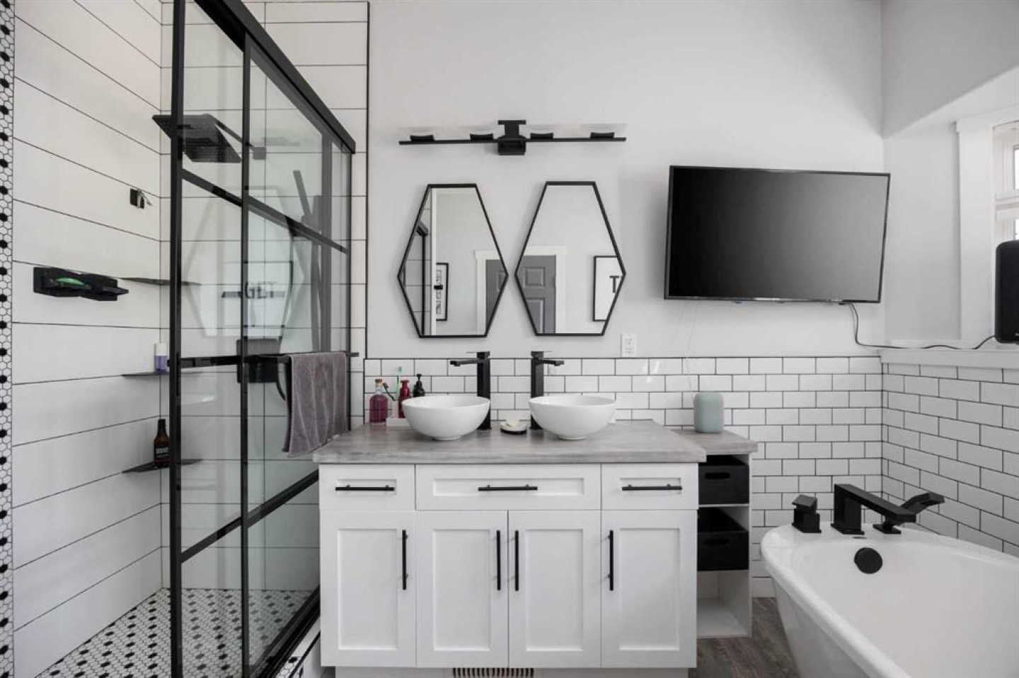 The primary bedroom is your grown-up getaway with room for a king bed, a walk-in closet plus two more closets, and an ensuite that’s basically a vacation. Think tiled walk-in shower with sleek black trim and glass doors, dual sinks so no one fights for mirror space, and a stand-alone tub that’s pure luxury. Better than a spa, because this one’s all yours. It is a place to relax and have some adult time!