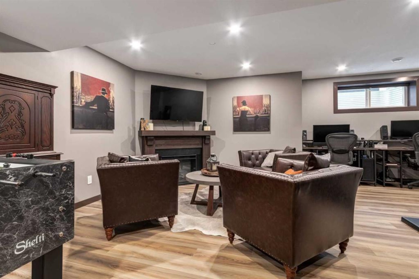 All TV Wall Mounts, Tire Racks in Garage, Electric Fireplace and Mantle in Basement