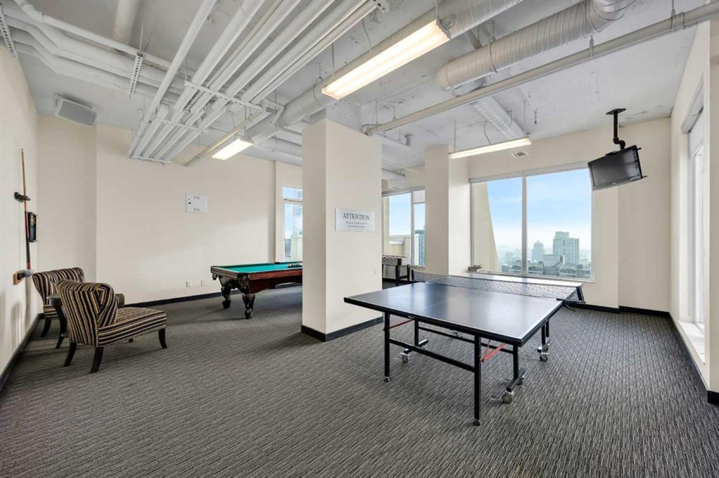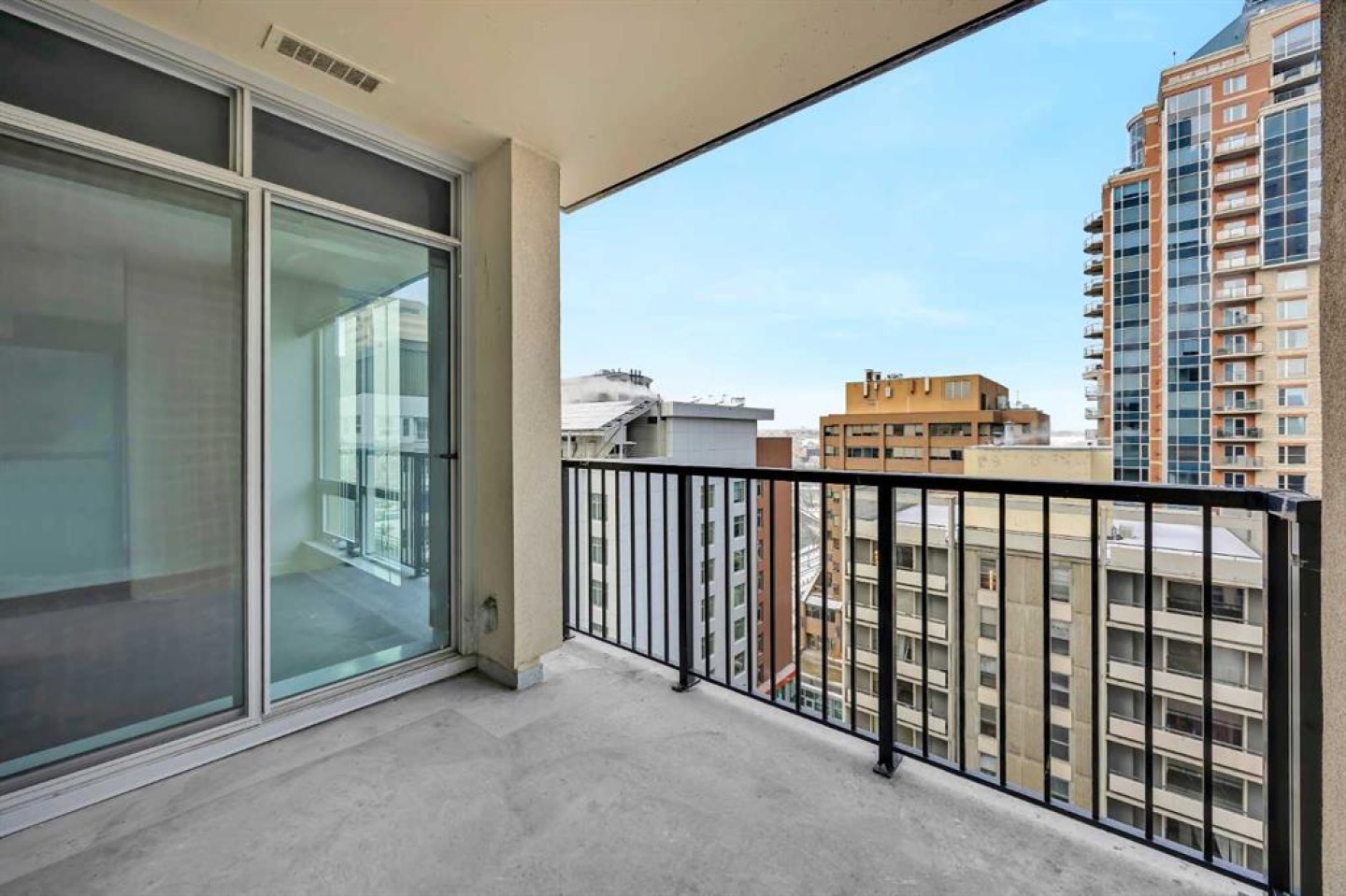 Set high on the 11th floor of Vogue, this refined 1 bedroom + den /1 bathroom residence offers an exceptional downtown living experience with contemporary finishes. The OPEN-CONCEPT LAYOUT showcases a sleek modern kitchen with quartz countertops, generous cabinetry and stainless-steel appliances, seamlessly connecting to a bright living space finished with HARDWOOD FLOORING—ideal for both relaxed living and elegant entertaining. The SEPARATE DEN provides a versatile space for a home office or additional storage, while the SPACIOUS BEDROOM comfortably accommodates a queen or king-sized bed and features a WALK-THROUGH CLOSET leading to the ensuite bathroom. Additional highlights include AIR CONDITIONING, a private balcony, a secured underground PARKING STALL and a STORAGE LOCKER. Access to PREMIUM AMENITIES including a rooftop fitness centre, owner’s lounge, games room, professional boardroom, SECURE VISITOR PARKING and full concierge service. Located in the heart of downtown, this suite offers EXCEPTIONAL WALKABILITY with immediate access to the Bow River pathways, Prince’s Island Park, the C-Train and Calgary’s +15 network.. A fantastic opportunity for individuals, couples, or investors seeking quality, convenience and the welcoming spirit of a vibrant community!