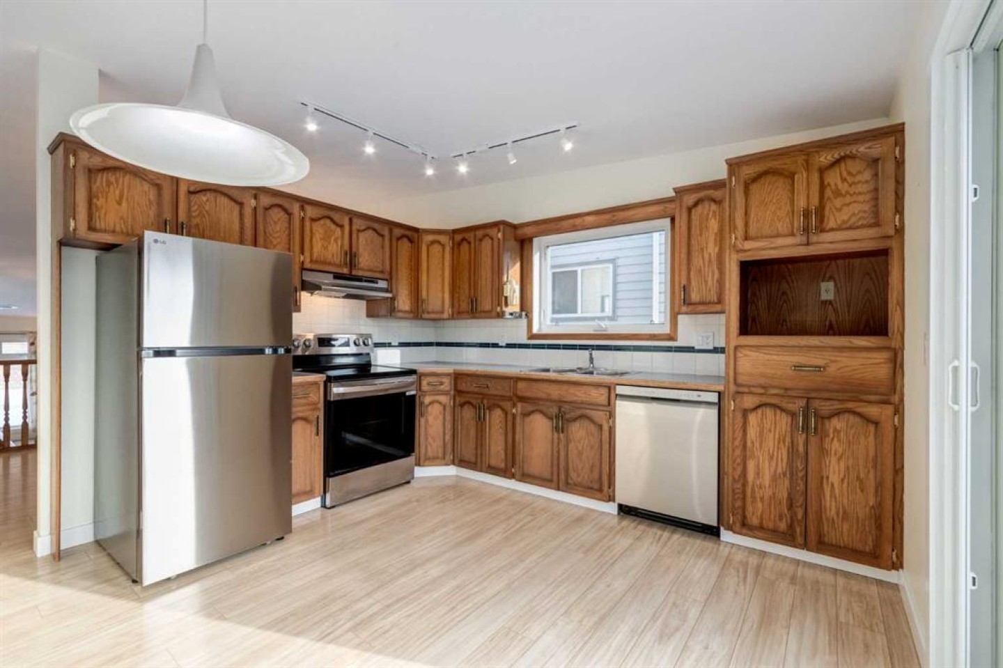 Dishwasher, Dryer, Electric Stove, Range Hood, Refrigerator, Washer, Window Coverings