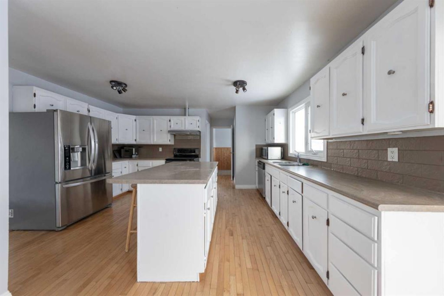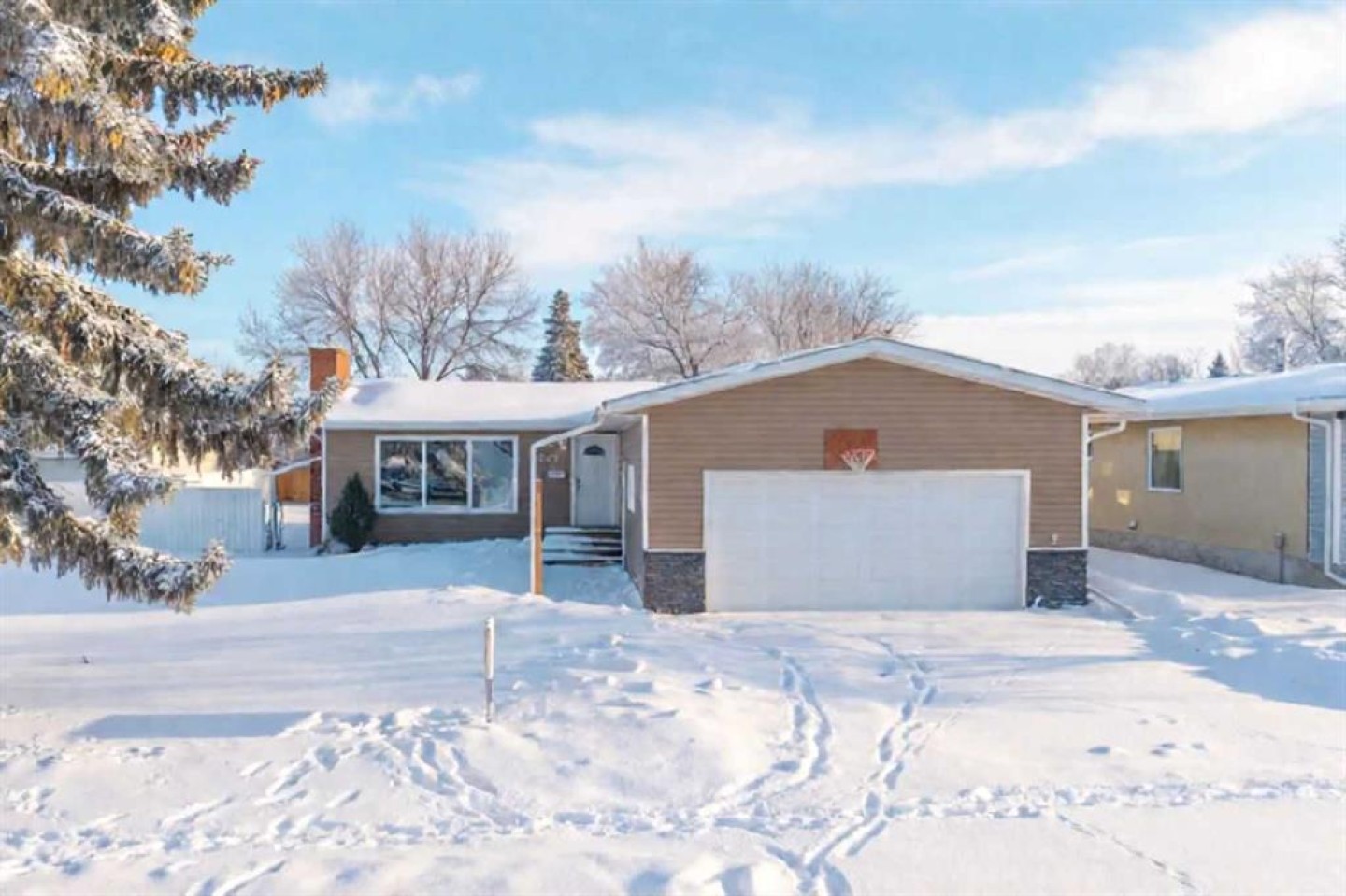 Make your move—this spacious home offers a solid layout and plenty of potential for a growing family. Updates over the years include exterior vinyl siding and vinyl windows. The well-designed floor plan features both an eat-in kitchen and a formal dining area. The kitchen is bright and functional with an island and plenty of cabinet space. The living room offers a cozy gas fireplace, and the home is air-conditioned for added comfort. The main floor includes three good-sized bedrooms, with the primary bedroom featuring a walk-in closet and private ensuite. Two additional bedrooms are located in the basement, providing flexible space for family, guests, or a home office. Outside, the fully fenced backyard offers direct access to the basement and includes RV parking. A double attached garage and included appliances add to the value. Enjoy the spacious yard with the lot being over 8,000 square feet! Located in a quiet area close to parks, walking paths, and schools, this home is a great opportunity for buyers looking to add their own touches while enjoying a practical family-friendly location.