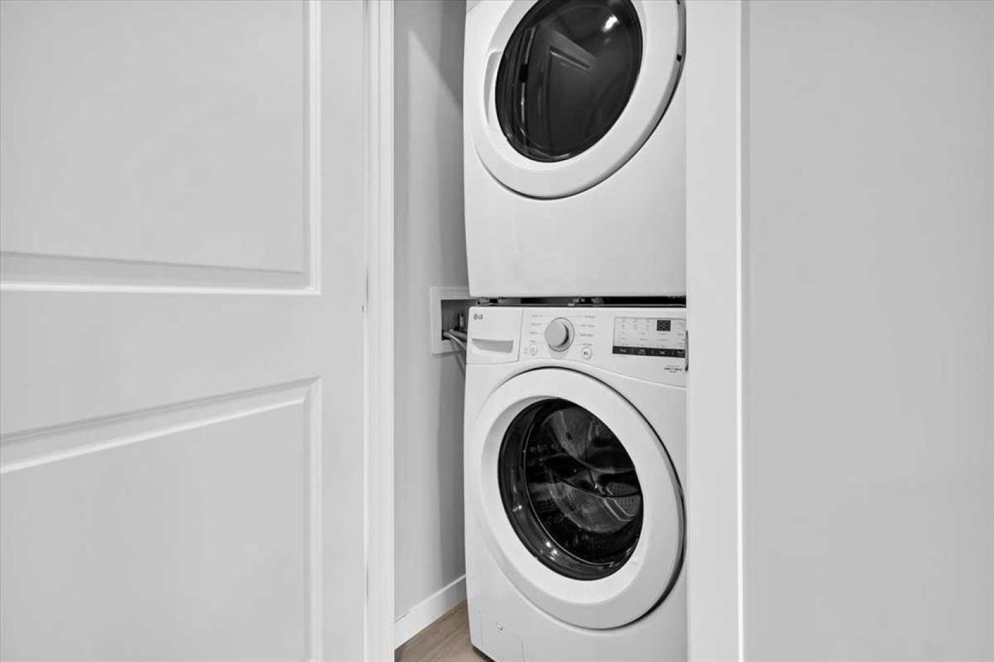 Dishwasher, Electric Stove, Microwave, Microwave Hood Fan, Refrigerator, Washer/Dryer Stacked