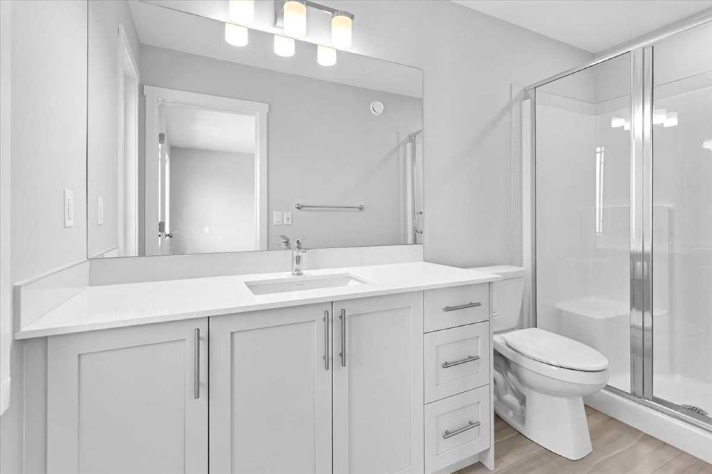 As soon as you step in to this property you will be greeted by nice foyer and coat closet. The main floor offers open layout, great kitchen with stainless steel appliances, Quartz countertops, good size kitchen island, upgraded cabinets with soft closing and under-cabinet lighting. The kitchen also comes with a generous size pantry with wired shelving.