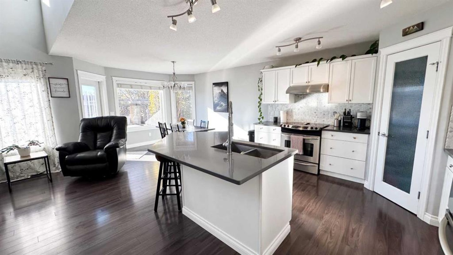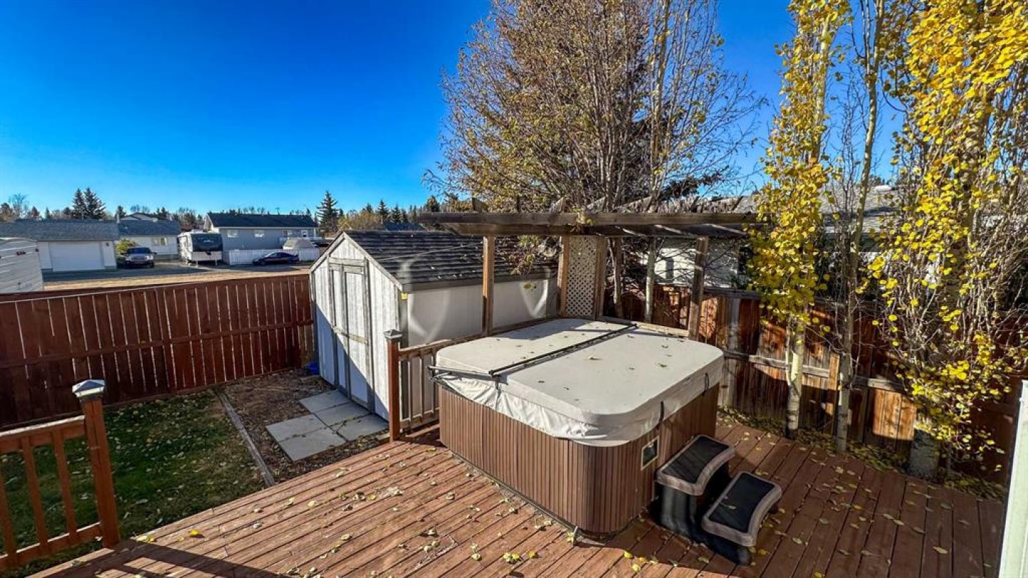Get excited to see this beautiful two-story family home on a quiet street in one of Sundre’s most sought-after neighborhoods — just a short walk from schools, parks, the arena, and walking trails, close to biking trails and access to the river for the fishing enthusiasts. This property has back lane access and no neighbors directly behind, making it very private but also has more parking room in the back alley. Sundre is a small town with great schools, amenities, clubs, sports, medical services and opportunity, especially for nature lovers. The open-concept main floor features vaulted ceilings, large windows, and plenty of natural light, creating a warm and inviting atmosphere. You’ll love the bright living area with natural gas fireplace, spacious and well laid out kitchen and dining space with patio doors to the deck for summer outdoor entertainment, and the convenience of main floor laundry and a two-piece bathroom. Total of 1725 Sq ft above grade with a fully developed basement and double garage built in 2006, Upstairs, you will find three comfortable bedrooms and two full bathrooms, including a lovely primary suite with room to unwind, a large 4 piece ensuite and walk in closet. The fully developed basement adds even more living space with a family room, fourth bedroom, and another full bathroom — ideal for guests or teenagers. Enjoy the outdoors in your south-facing backyard, offering all-day sun, no neighbors behind, and lane access with extra parking. Relax or entertain on the private decks and soak in the hot tub under the stars. A double attached garage and modern, light-filled design make this home a perfect combination of comfort, style, and functionality — the ideal place to settle in and enjoy all that Sundre has to offer.