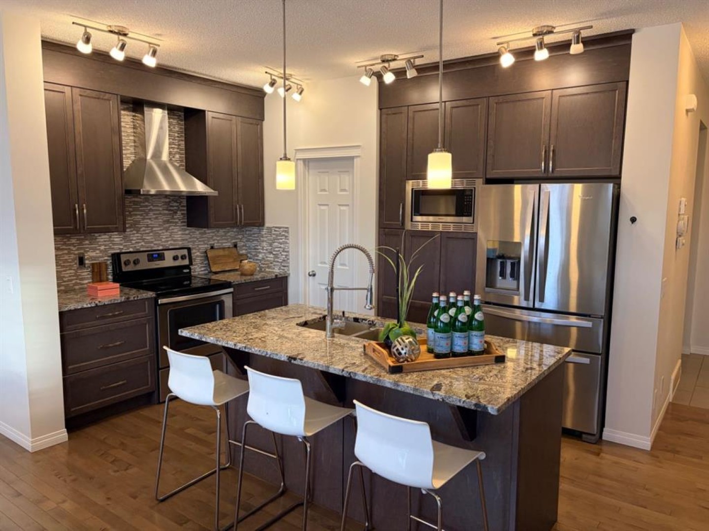 Welcome to this energy-efficient 3 bedroom, 2.5 bathroom home loaded with upgrades and modern features. Built Green Certified with solar-ready rough-in, triple-pane windows, Hunter Douglas blinds, and wiring for solar and satellite. 9 ft ceilings and large south-facing windows fill the main floor with natural light. The cozy gas fireplace adds warmth and charm, while a stunning light fixture defines the dining space. The kitchen features granite countertops, stainless steel appliances, rich espresso cabinets, a large centre island, and walk-in pantry. Upstairs offers a bright family room, 3 bedrooms, 2 full baths, and convenient laundry. The primary bedroom enjoys mountain views, a walk-in closet, and a 5-piece ensuite with double sinks and a 6 ft soaker tub. Big Loft gives u lot of options for entertaining or work from home . The unfinished basement awaits your ideas. Enjoy privacy with no rear neighbours and a large south-facing backyard perfect for gardening or entertaining. Close to schools, parks, shopping, golf, and city transit. Book a showing now!!!!!