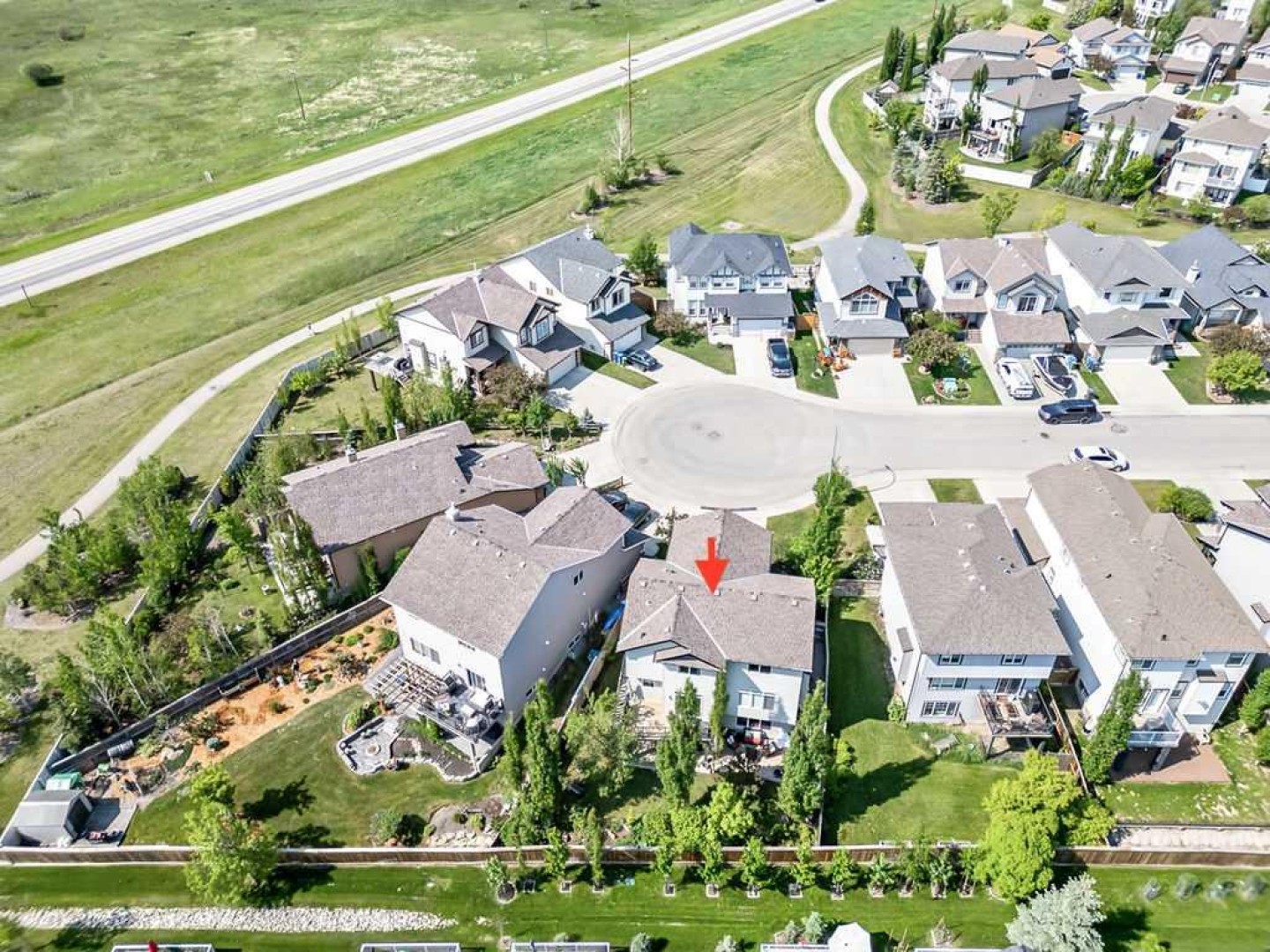 *** UNBELIEVABLE VALUE in this FULLY FINISHED WALKOUT HOME*** Welcome to your new home in the desirable family friendly community of Westmount, Okotoks! Tucked away in a quiet cul-de-sac, this beautifully maintained 2-storey home offers space, style, and comfort for the whole family. From the moment you arrive, you’ll appreciate the large driveway and impressive curb appeal, highlighted by lush perennial landscaping that creates a private and peaceful front veranda—perfect for morning coffees or evening chats. Step inside to a spacious front entrance that warmly welcomes your guests. The main floor features stunning newer hardwood flooring and a bright, open-concept layout. The updated kitchen is both functional and stylish, with rich wood cabinetry, quartz countertops, a corner pantry, and ample prep space—ideal for everyday living and entertaining. The spacious living room has a gas fireplace, large windows, stunning hardwood floors providing the perfect place to visit with family and friends . A tucked-away 2-piece bathroom adds convenience and privacy. Upstairs, you'll find a sunny and spacious bonus room filled with natural light—great for a playroom, office, or extra lounge area. The large primary suite boasts a walk-in closet and a private ensuite. Two additional bedrooms offer great space for kids, guests, or home office needs. The fully finished walkout basement adds even more value with a large family room, a fourth bedroom, another full bathroom, and direct access to the beautifully landscaped backyard. Enjoy *three distinct outdoor living spaces*, perfect for barbecues, relaxing in the sun, or taking in the peaceful views of the nearby farmers’ fields. Located close to schools (including Westmount K–9), playgrounds, parks, and shopping, this is a fantastic family-friendly neighborhood with everything you need nearby. Don’t miss this opportunity to own a stunning home in a prime location! Book your showing today