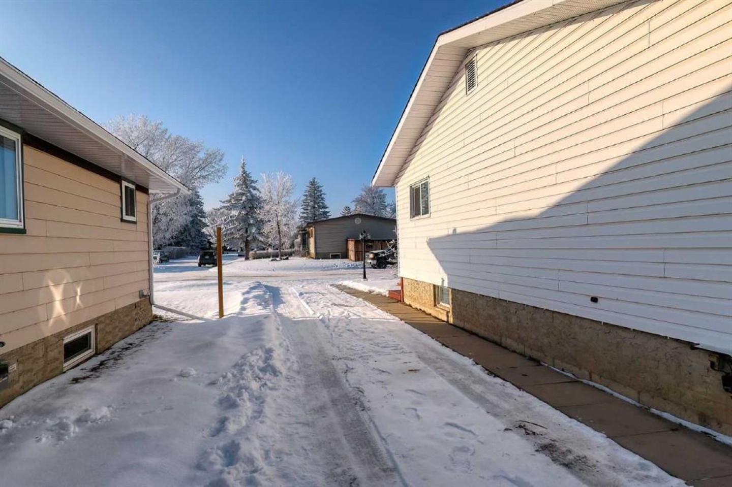 This three-bedroom, two-and-a-half-bathroom home in the highly desirable southwest area of High River. A fixer upper full of potential and just waiting for your personal touch. Upstairs you’ll find three spacious bedrooms, including a primary suite with its own ensuite. The home offers a welcoming kitchen nook, glass blocks to allow in daylight, a cozy layout anchored by a wood-burning/gas fireplace. On the way to the backyard there is a cozy glass sunroom that brings in plenty of natural light. Thoughtful extras like a cold room, laundry and work shop in the basement. The attic has floor boards, four feet clearance. great for storage. The exterior features large front and back decks, finished with attractive wood and glass railings, creating the perfect spot to enjoy warm summer evenings. The back yard offers plenty of opportunity, garden shed by house between deck and fence, three additional sheds, RV parking. A mature maple tree in the front. Front driveway to single garage allowing off-street parking complete the package.