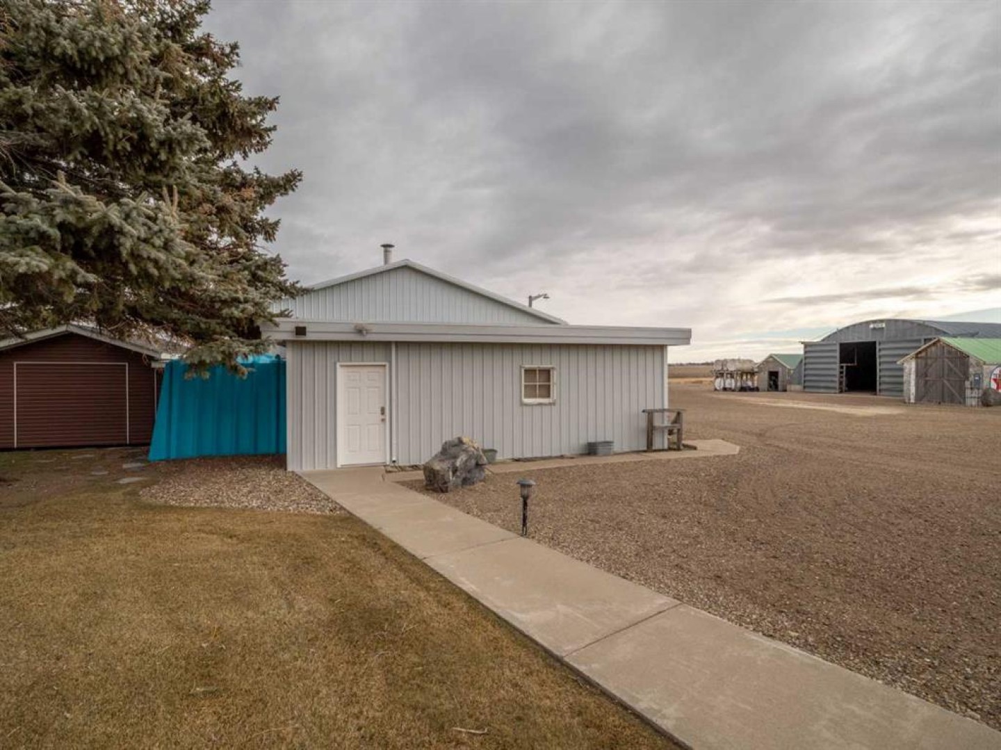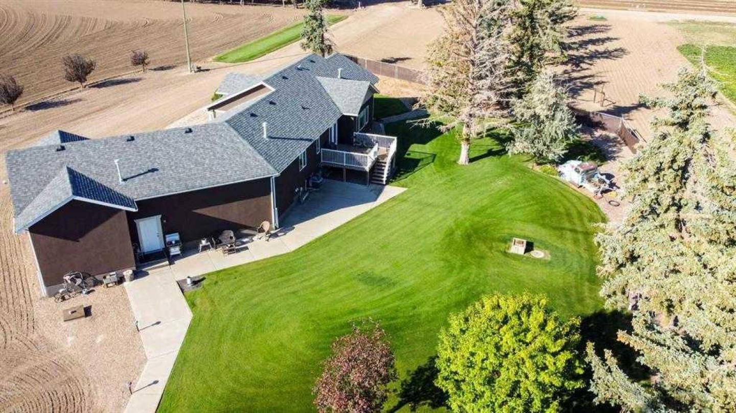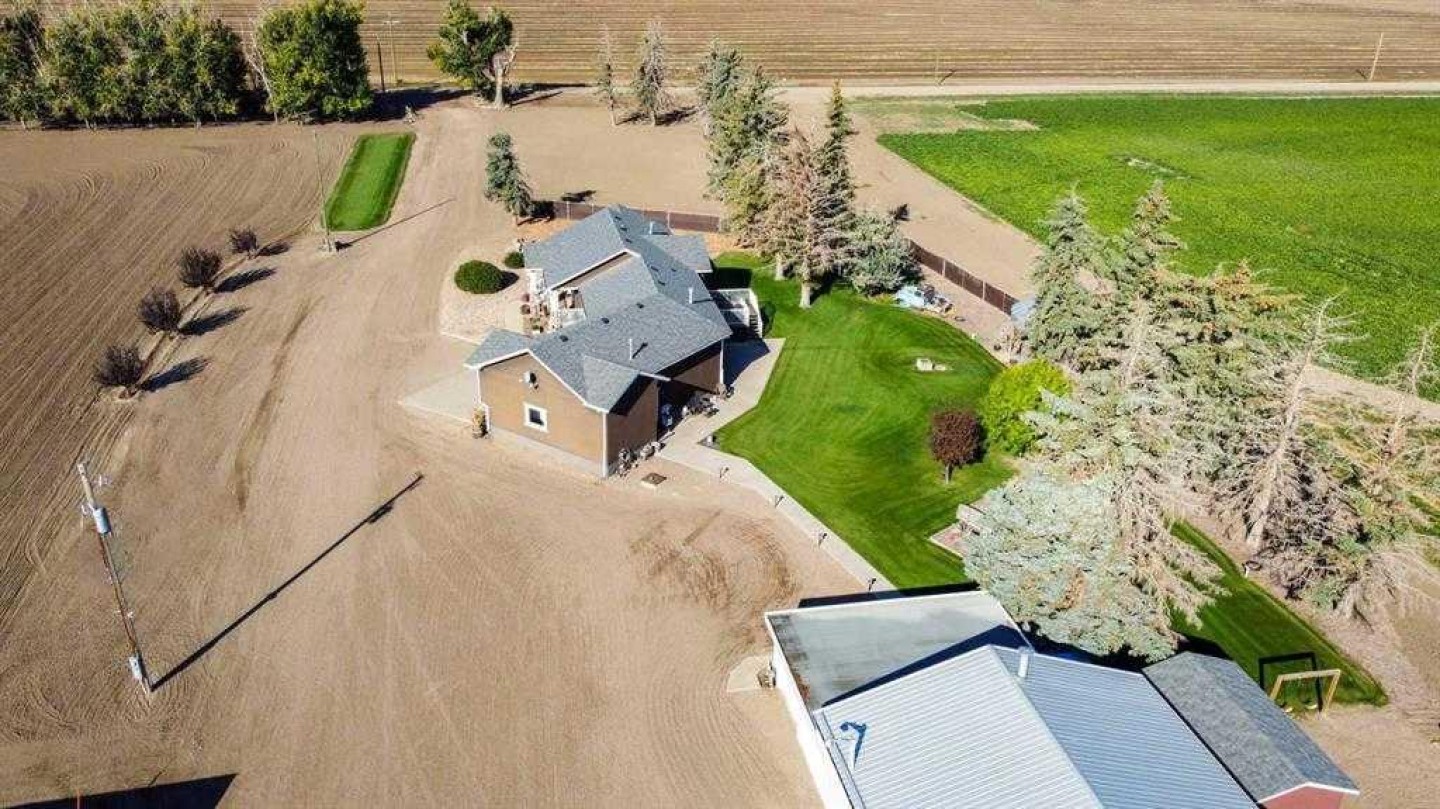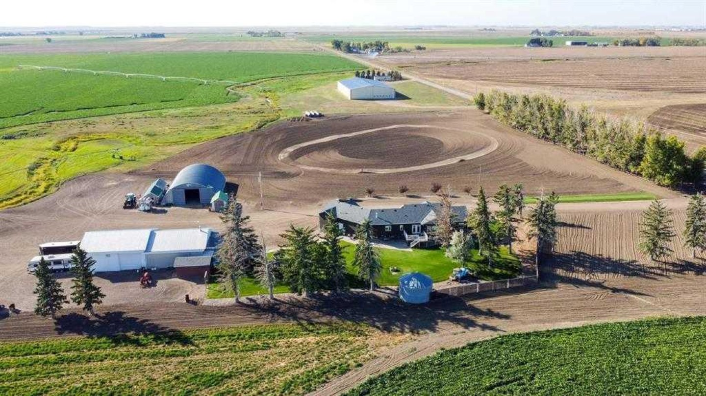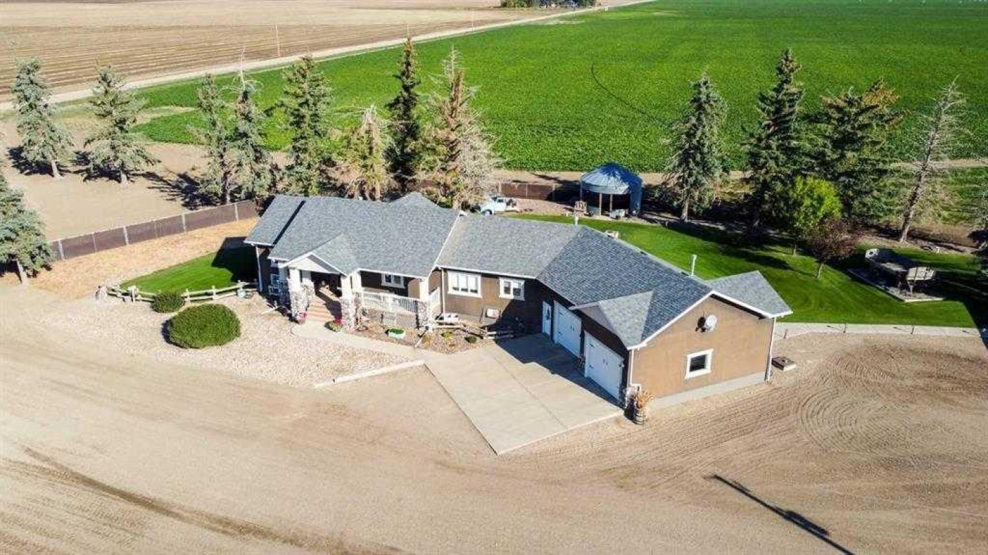 Just 15 minutes east of Coaldale, this ranch-style acreage offers the perfect blend of space, function, and country charm. The home features 4 bedrooms and 3 bathrooms and showcases a beautiful rock fireplace, large windows, and an open-concept floor plan that fills the space with natural light while maintaining a warm, cosy country feel. Situated on 7.86 acres, the property is exceptionally well equipped with a large heated shop (73’ x 51’) featuring five overhead doors, a Quonset, and six additional sheds, making it ideal for a home based business, equipment storage, or hobby farming. The backyard is highlighted by a unique grain bin gazebo, creating a the perfect spot for entertaining, hosting weddings, or gathering family and friends for special occasions.This acreage offers a rare opportunity to enjoy rural living with space, character, and versatility,
