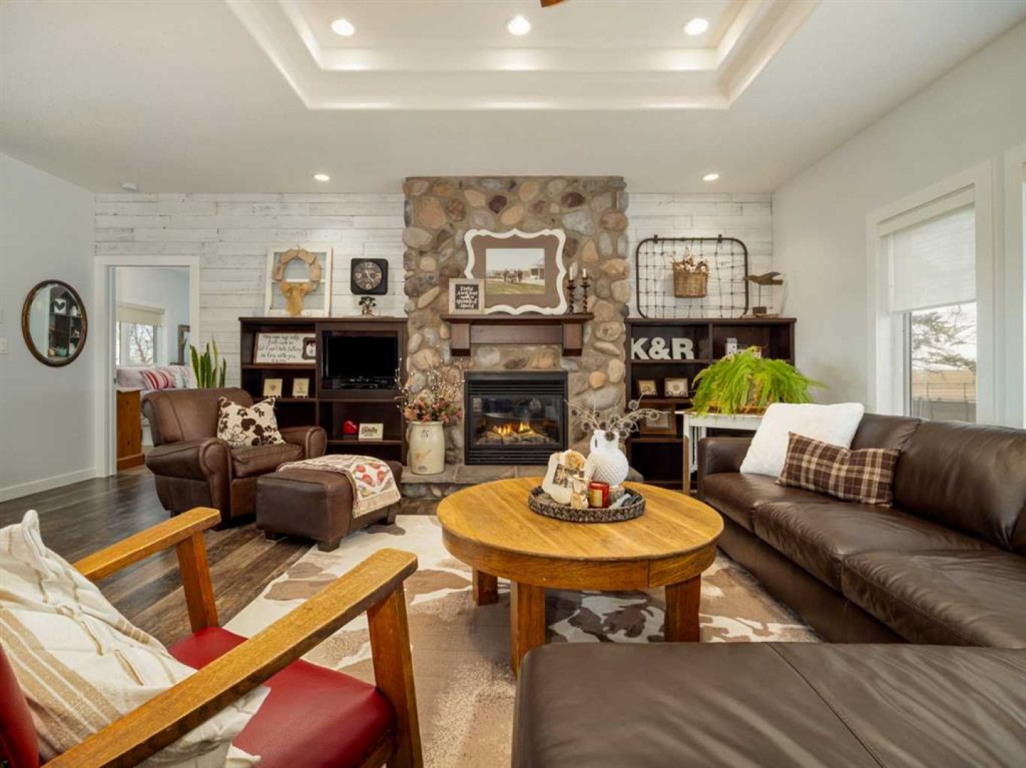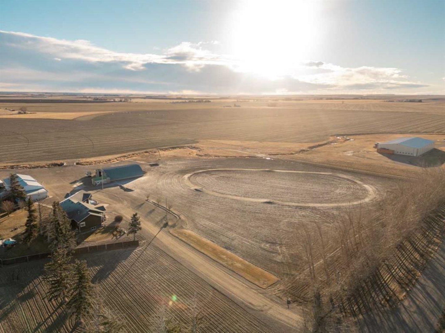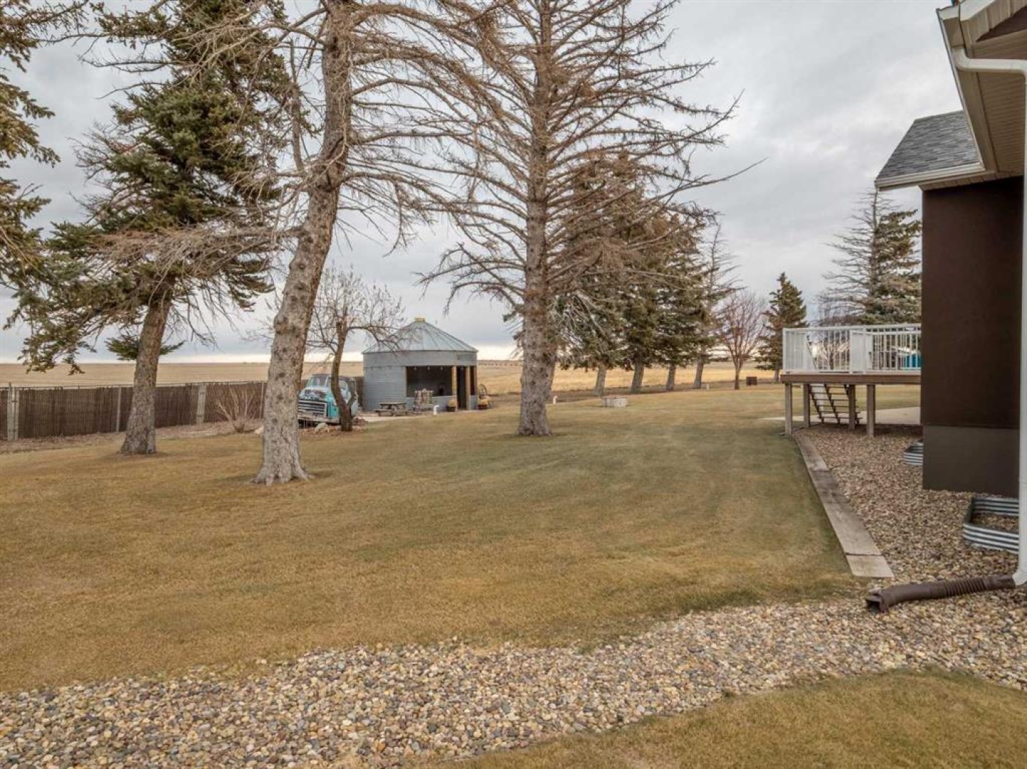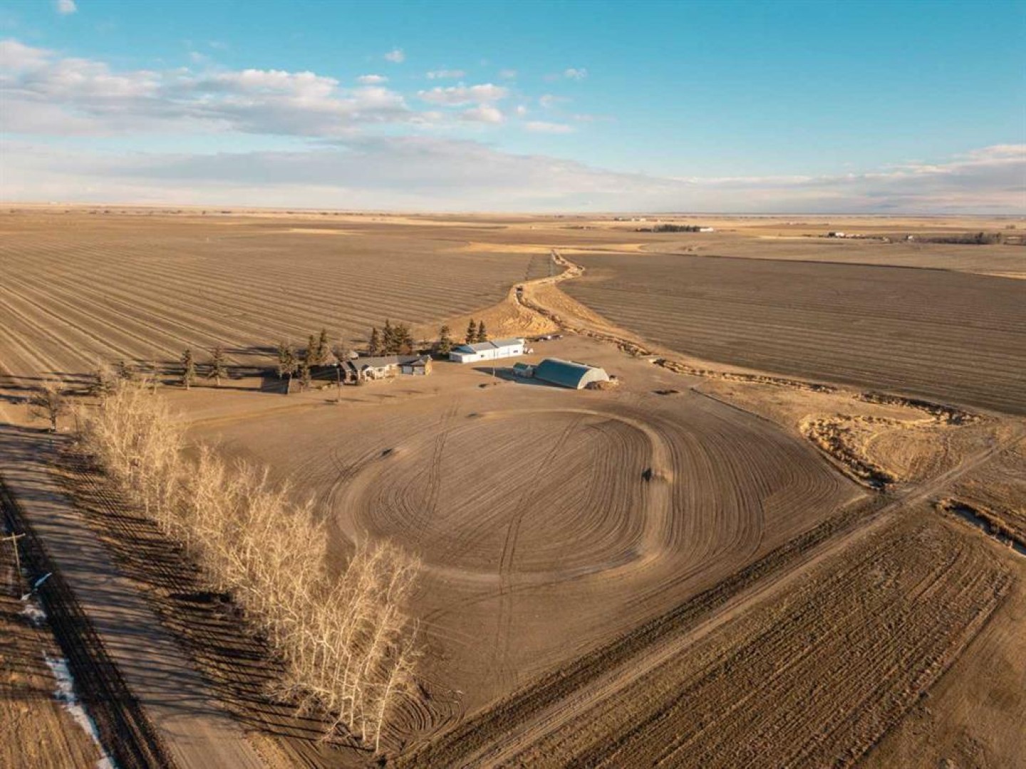 Just 15 minutes east of Coaldale, this ranch-style acreage offers the perfect blend of space, function, and country charm. The home features 4 bedrooms and 3 bathrooms and showcases a beautiful rock fireplace, large windows, and an open-concept floor plan that fills the space with natural light while maintaining a warm, cosy country feel. Situated on 7.86 acres, the property is exceptionally well equipped with a large heated shop (73’ x 51’) featuring five overhead doors, a Quonset, and six additional sheds, making it ideal for a home based business, equipment storage, or hobby farming. The backyard is highlighted by a unique grain bin gazebo, creating a the perfect spot for entertaining, hosting weddings, or gathering family and friends for special occasions.This acreage offers a rare opportunity to enjoy rural living with space, character, and versatility,