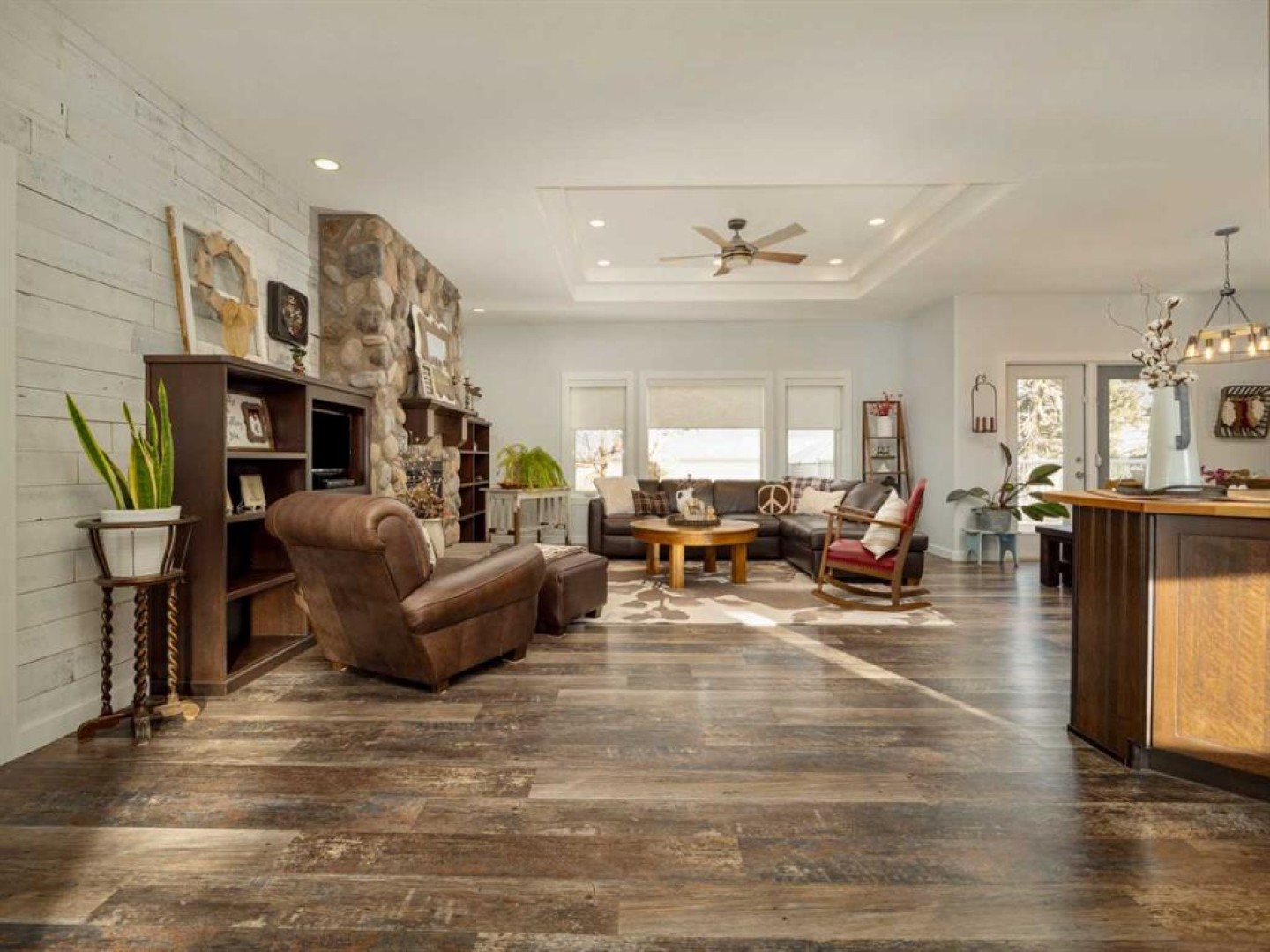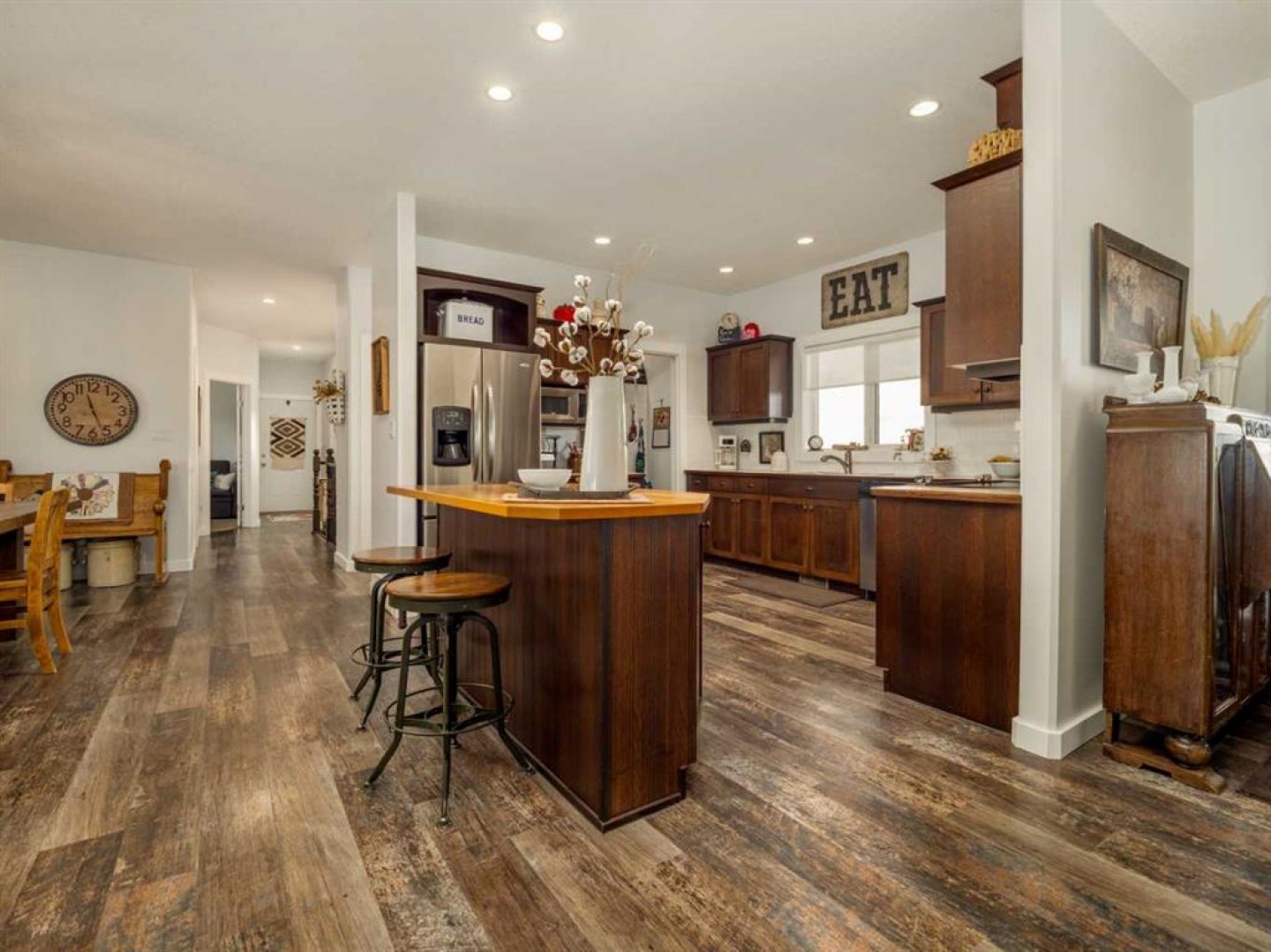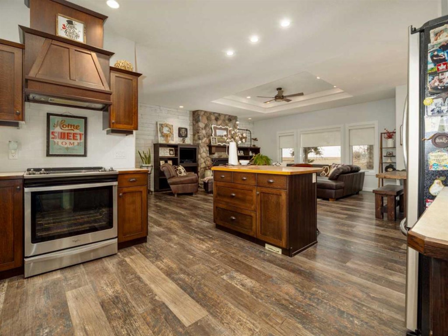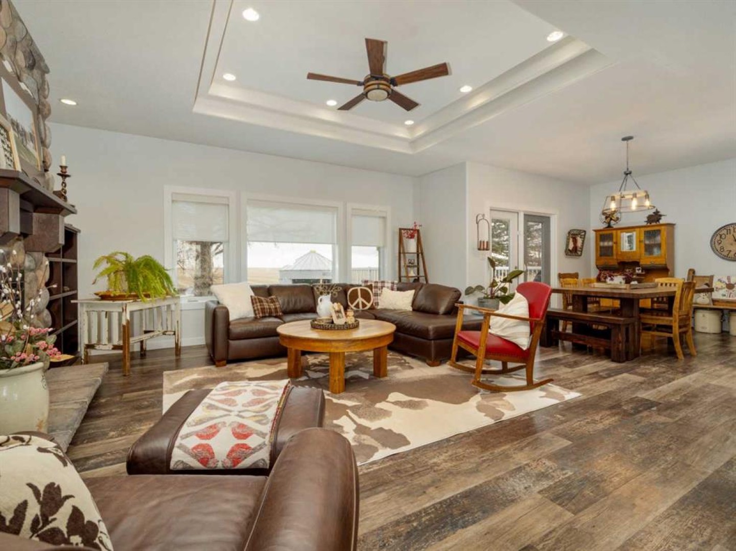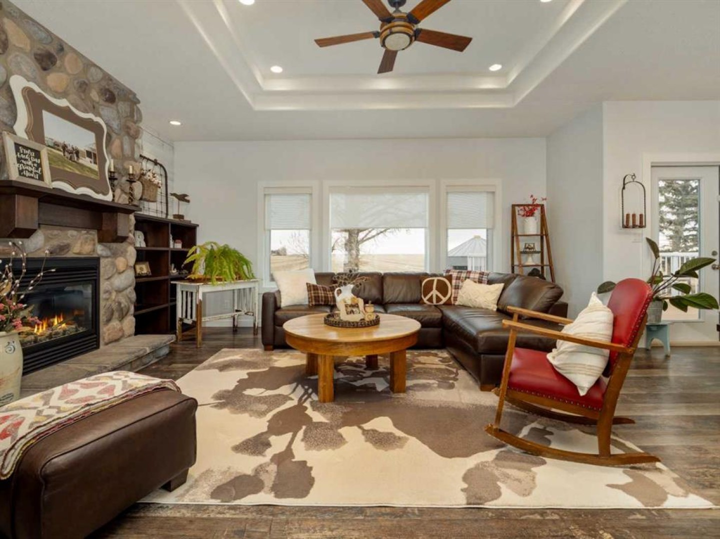 Just 15 minutes east of Coaldale, this ranch-style acreage offers the perfect blend of space, function, and country charm. The home features 4 bedrooms and 3 bathrooms and showcases a beautiful rock fireplace, large windows, and an open-concept floor plan that fills the space with natural light while maintaining a warm, cosy country feel. Situated on 7.86 acres, the property is exceptionally well equipped with a large heated shop (73’ x 51’) featuring five overhead doors, a Quonset, and six additional sheds, making it ideal for a home based business, equipment storage, or hobby farming. The backyard is highlighted by a unique grain bin gazebo, creating a the perfect spot for entertaining, hosting weddings, or gathering family and friends for special occasions.This acreage offers a rare opportunity to enjoy rural living with space, character, and versatility,