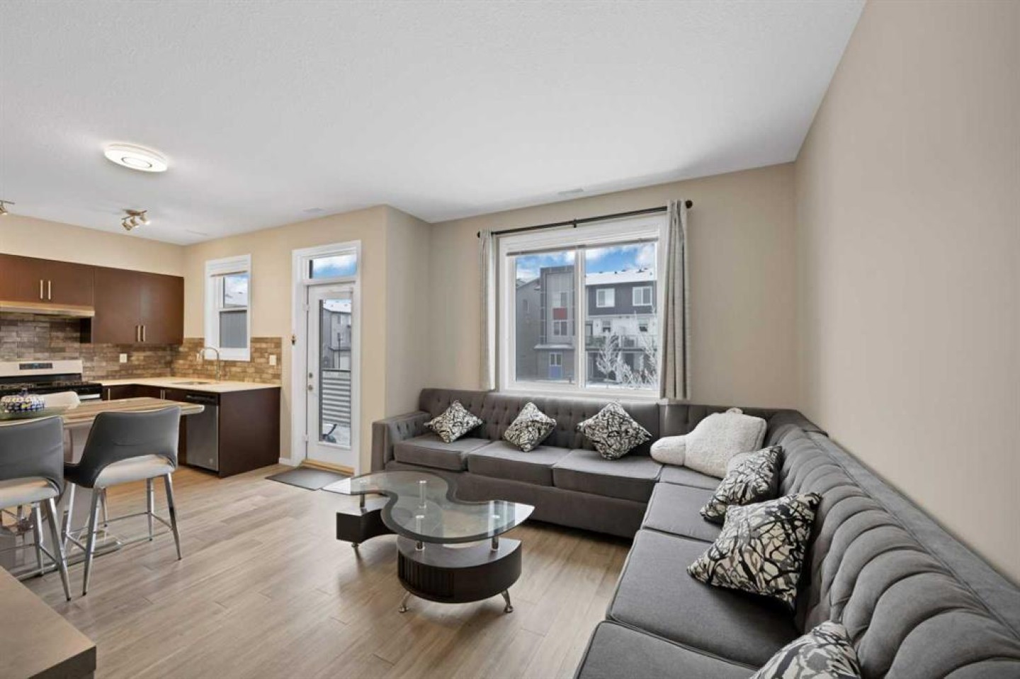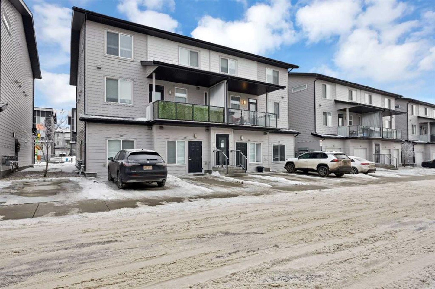 3 BEDS | 3.5 BATHS | MULTI LEVEL TOWNHOME | CORNER END-UNIT | SEPARATE ENTRANCE | Welcome to this beautiful CORNER MULTI LEVEL END-UNIT TOWNHOME nestled in the highly sought-after community of Redstone, offers unparalleled convenience and comfort. This corner end unit is perfectly positioned to enjoy full-day sunshine as it’s directly backing onto a large park. This spacious 3-level home offers a thoughtful layout with 3 bedrooms, 3.5 bathrooms and a convenient parking stall out-front. The entry level features a versatile bedroom that can serve as a guest room, office or flex space with and attached full bathroom. The open-concept second level is designed for both everyday living and entertaining, showcasing a bright and modern kitchen with ample cabinetry, quartz countertops, stainless steel appliances, a large living room and a dining area with a leading door to the balcony, where you can enjoy summer evening barbecues and soak in the vibrant atmosphere. On the second level, you'll find two luxurious primary bedrooms boasting a pristine en-suite in each and a spacious walk-in closet ensuring comfort and privacy for all occupants. Laundry is thoughtfully located on the upper floor for added convenience. Large windows throughout the home create a bright and inviting atmosphere, while the location offers easy access to parks, walking paths and family-friendly green spaces just steps from your front door. With its unbeatable location and immaculate condition, this property is a rare find in today's market. Don't miss out on the opportunity to make it yours – schedule a showing with your favorite realtor today before it's gone!