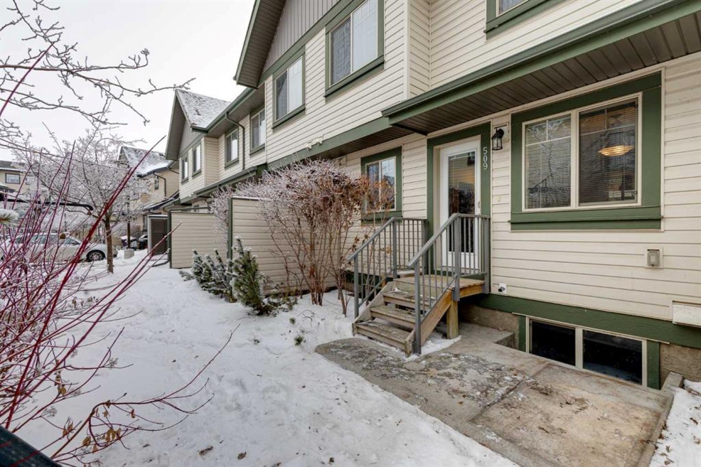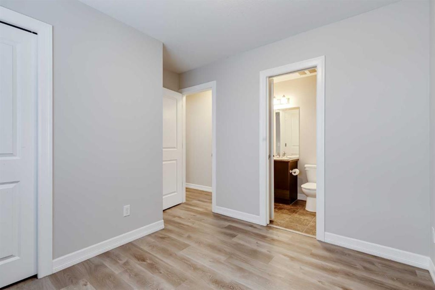 unit, along with two separate storage lockers! Offering approximately 1230 square feet of developed living space across two levels, the layout is both practical and inviting. The main floor features vinyl plank flooring, a spacious front living room, and a bright kitchen with matching stainless steel appliances, including a new refrigerator (2025), new stove (2025), and a newer dishwasher (2023). A large front porch adds charm and usable outdoor space, while the rear of the home opens onto a concrete patio, perfect for summer barbeques and outdoor entertaining. Upstairs you'll find three bedrooms, including the primary bedroom with a walk in closet and 3 piece ensuite. The remaining two bedrooms share a Jack and Jill 4 piece bathroom, creating an ideal layout for families, guests, or home office flexibility. The basement offers over 500 square feet of undeveloped space, includes the laundry area, and features roughed in plumbing for a future full bathroom, providing excellent potential to expand your living space. All you have to do is move in. Conveniently located close to Stoney Trail, Deerfoot Trail, shopping, schools, parks, and all amenities. Don't miss this opportunity, book your showing today.