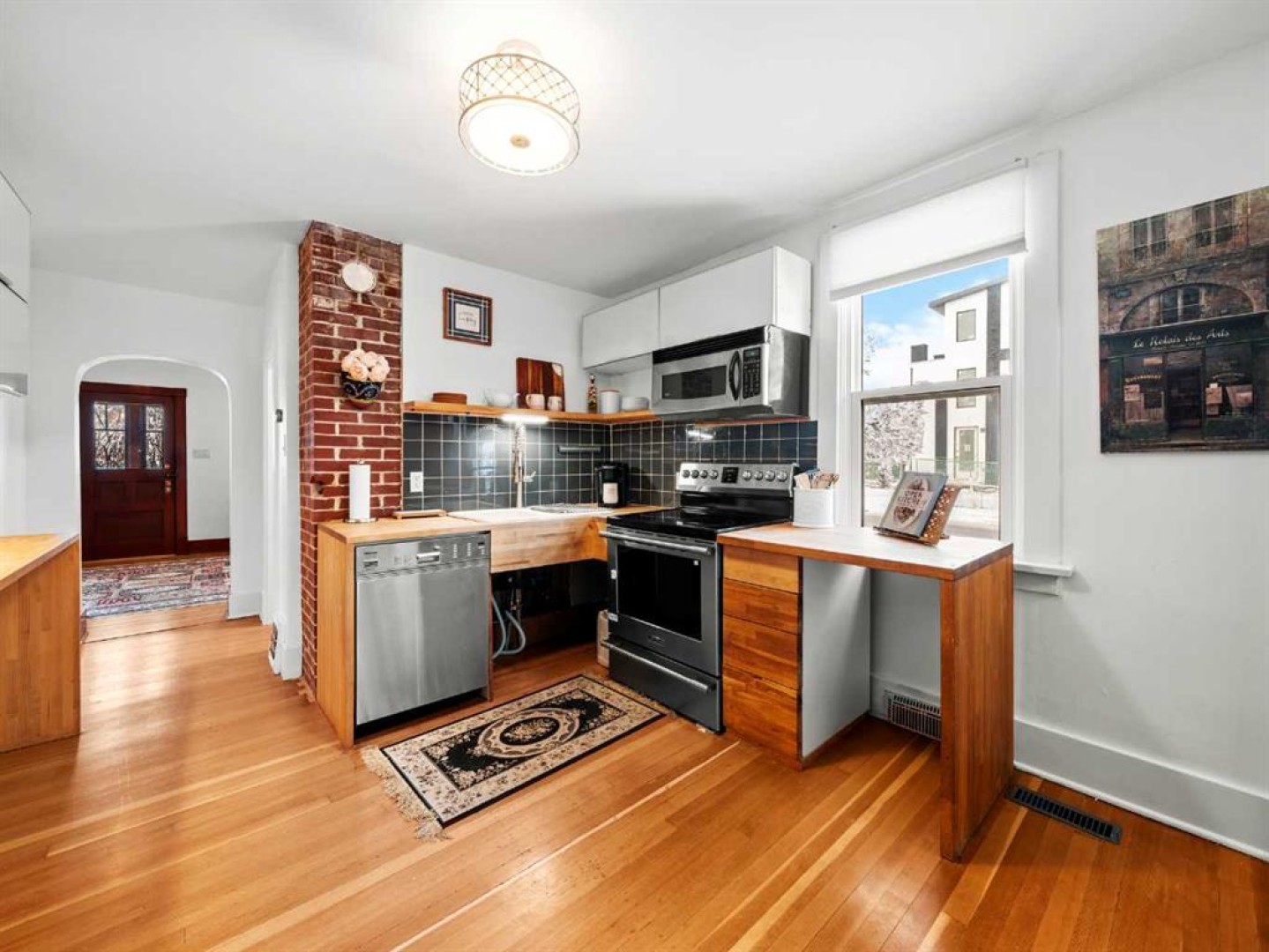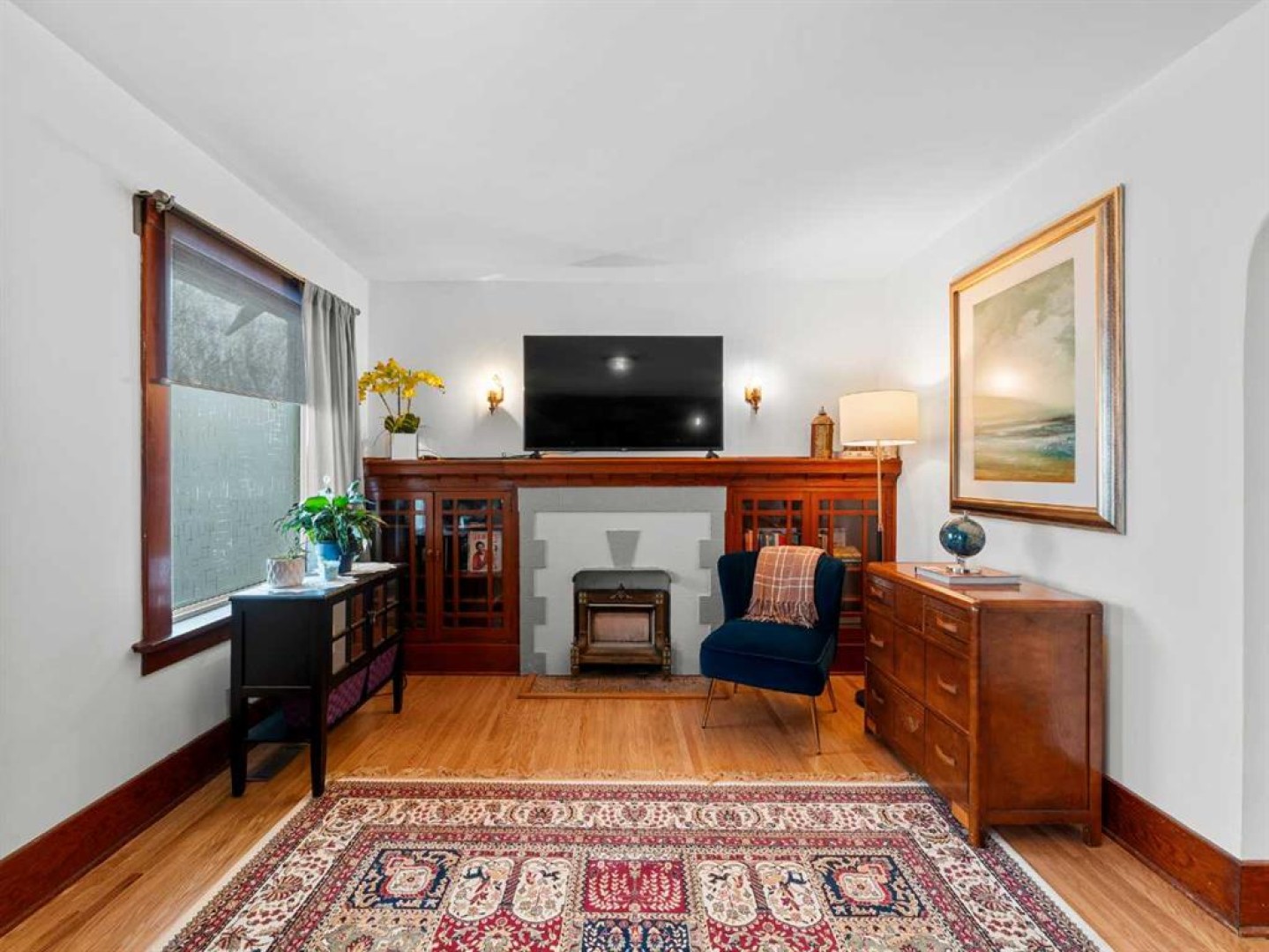 ***Open House Saturday, Jan 10th 1pm to 3pm*** This Tuxedo home blends original character with thoughtful updates and offers flexibility for a range of future uses. A front vestibule provides a practical entry space, helping to maintain warmth during colder months. Inside, the living room highlights the home's charm with original fir trim, hardwood floors throughout, built-in cabinetry surrounding the original fireplace and traditional hearth.