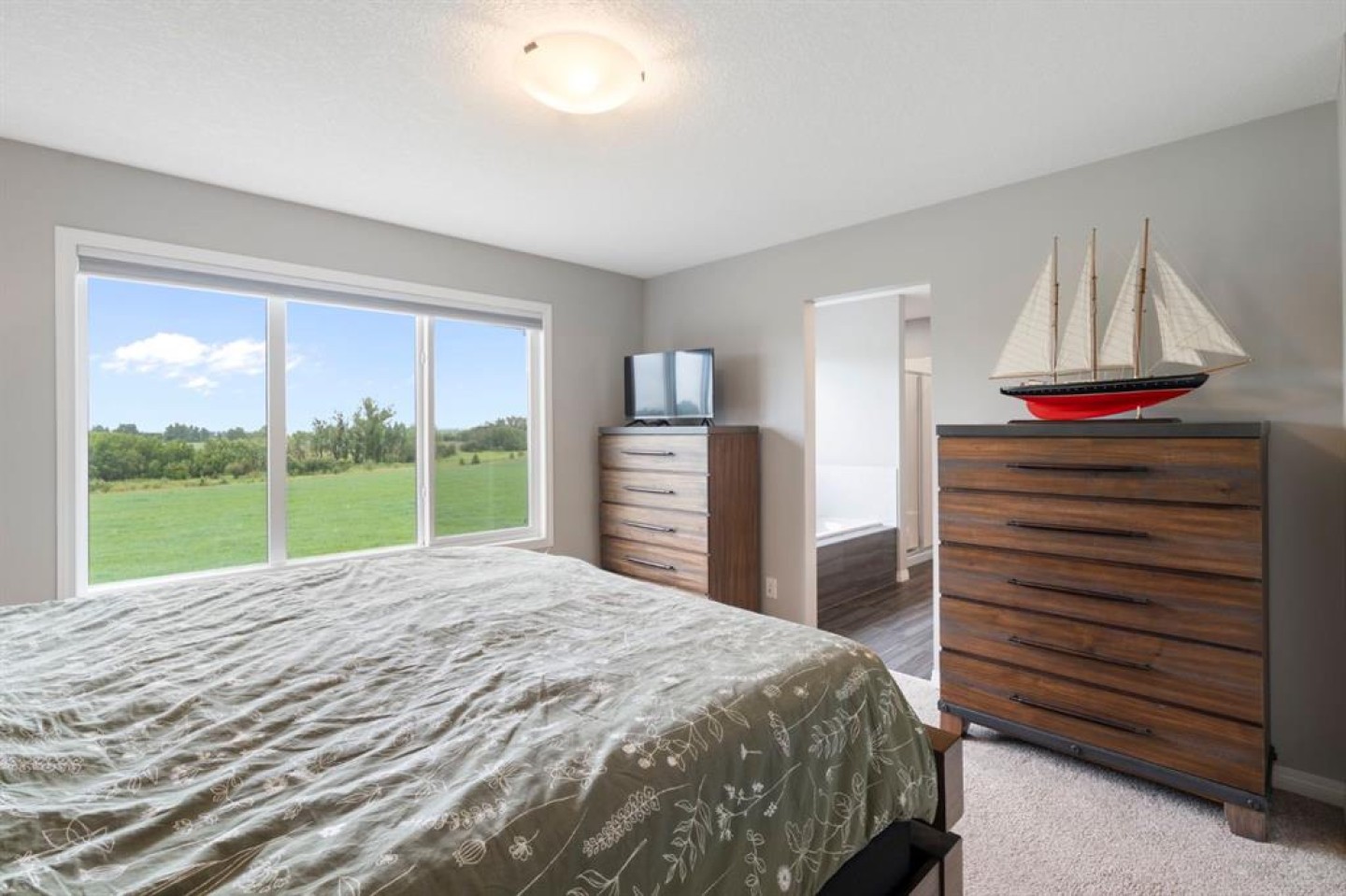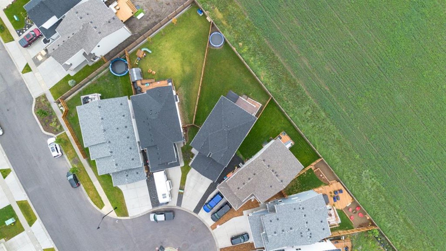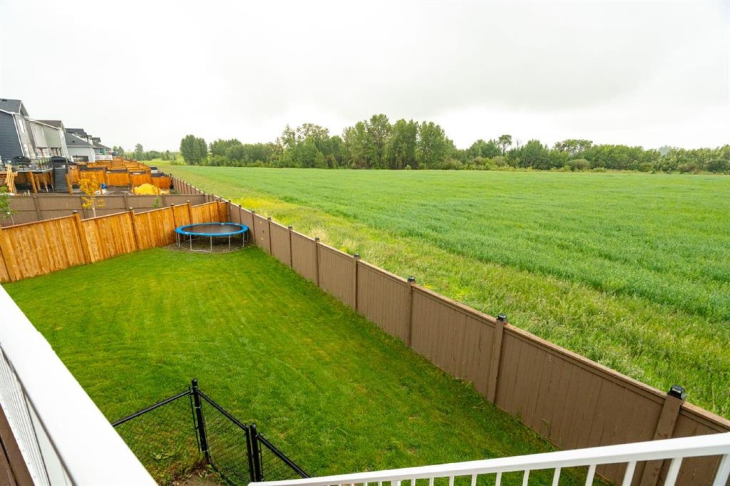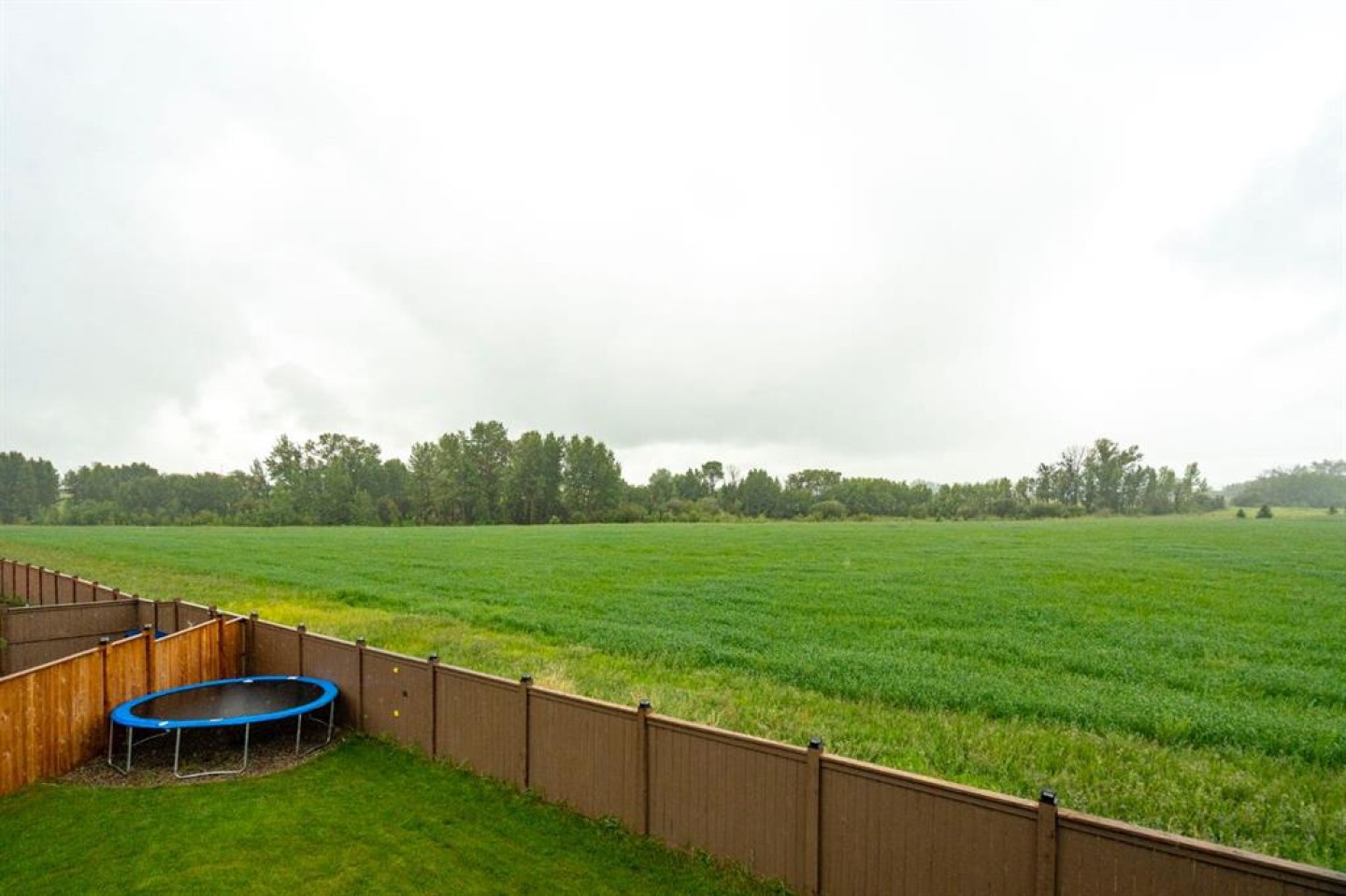 Outside, the west-facing pie-shaped backyard backs onto open farmland leased by a local farmer, giving you peaceful prairie views and the kind of backyard most people only dream of. The home also features A/C to keep you cool in the summer and warm in the winter, plus gorgeous trim lighting that adds a little sparkle year-round. And for those who like their winters toasty, the double attached garage is already equipped with a heater, because stepping into a warm car on a cold Alberta morning? That’s living the dream.