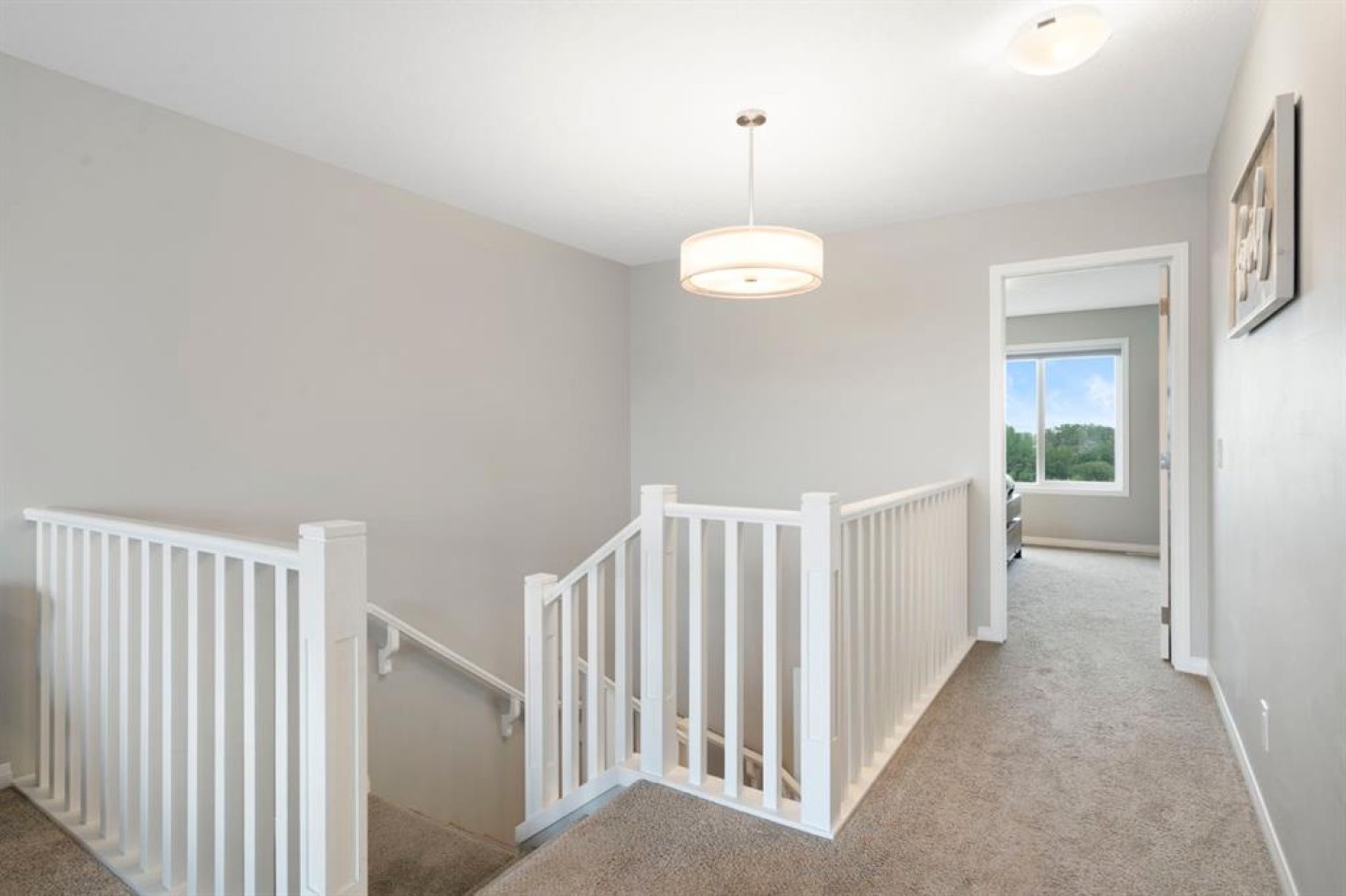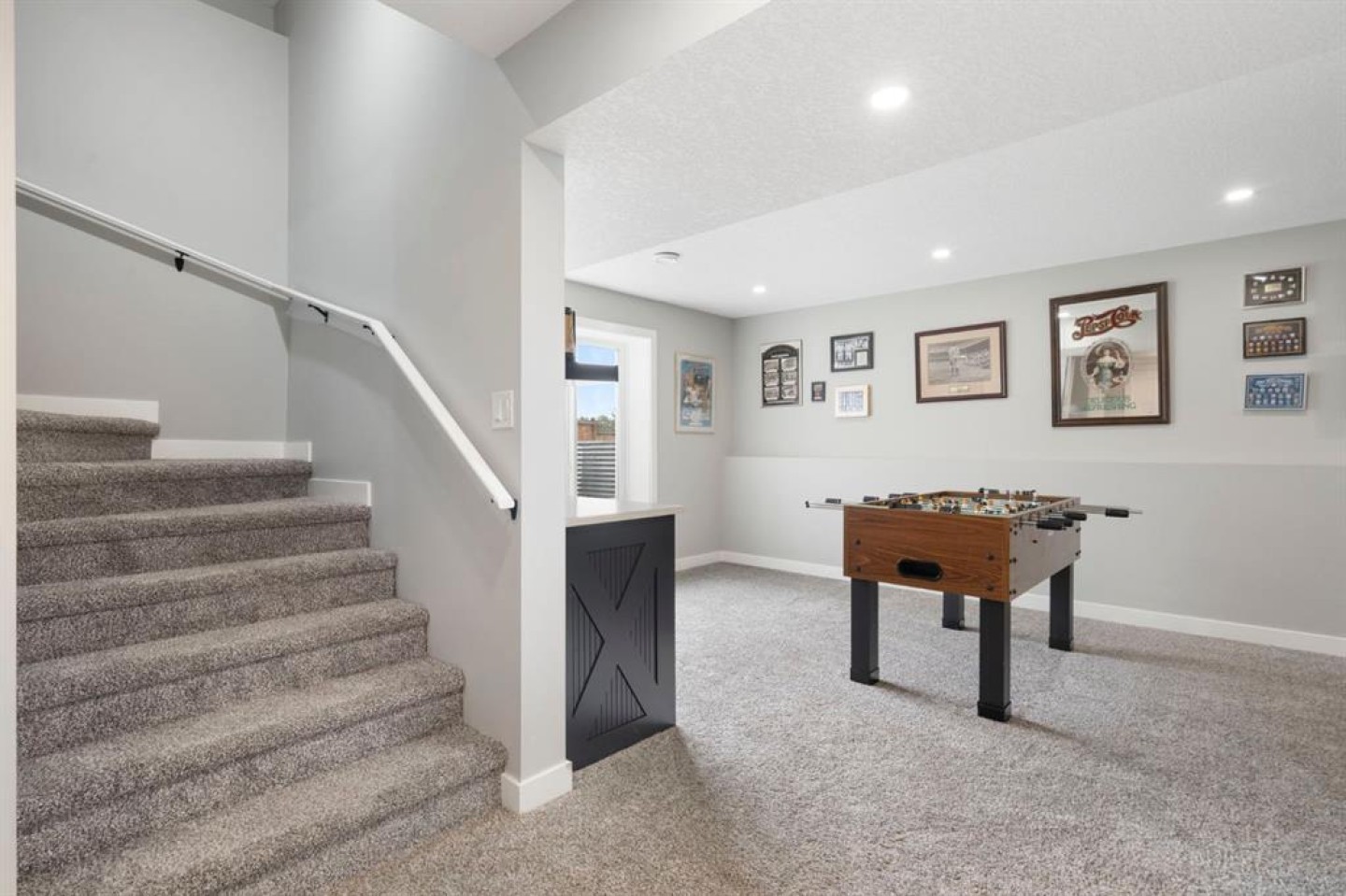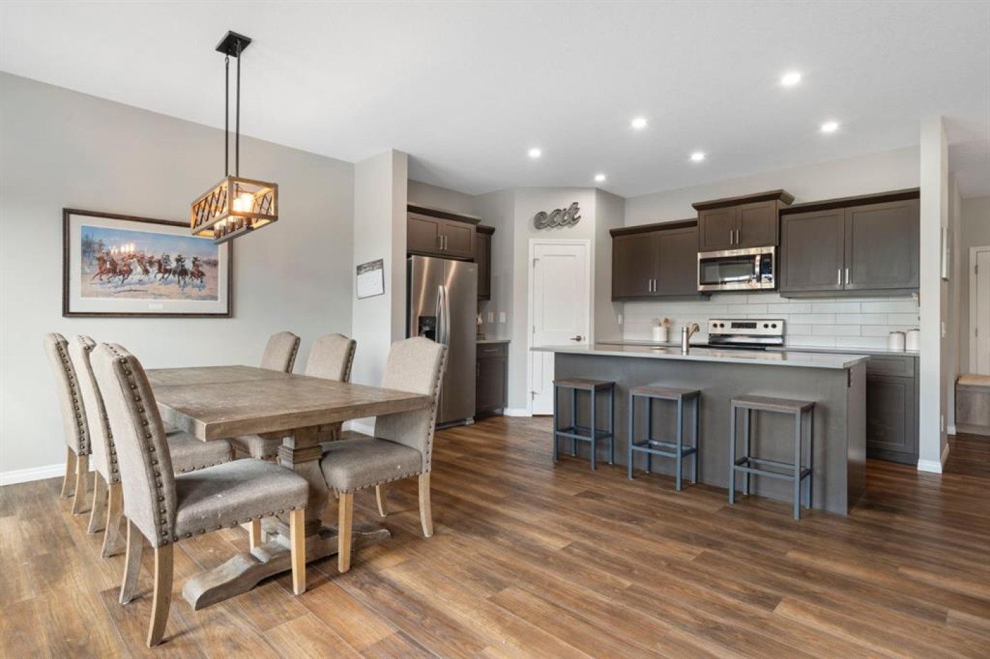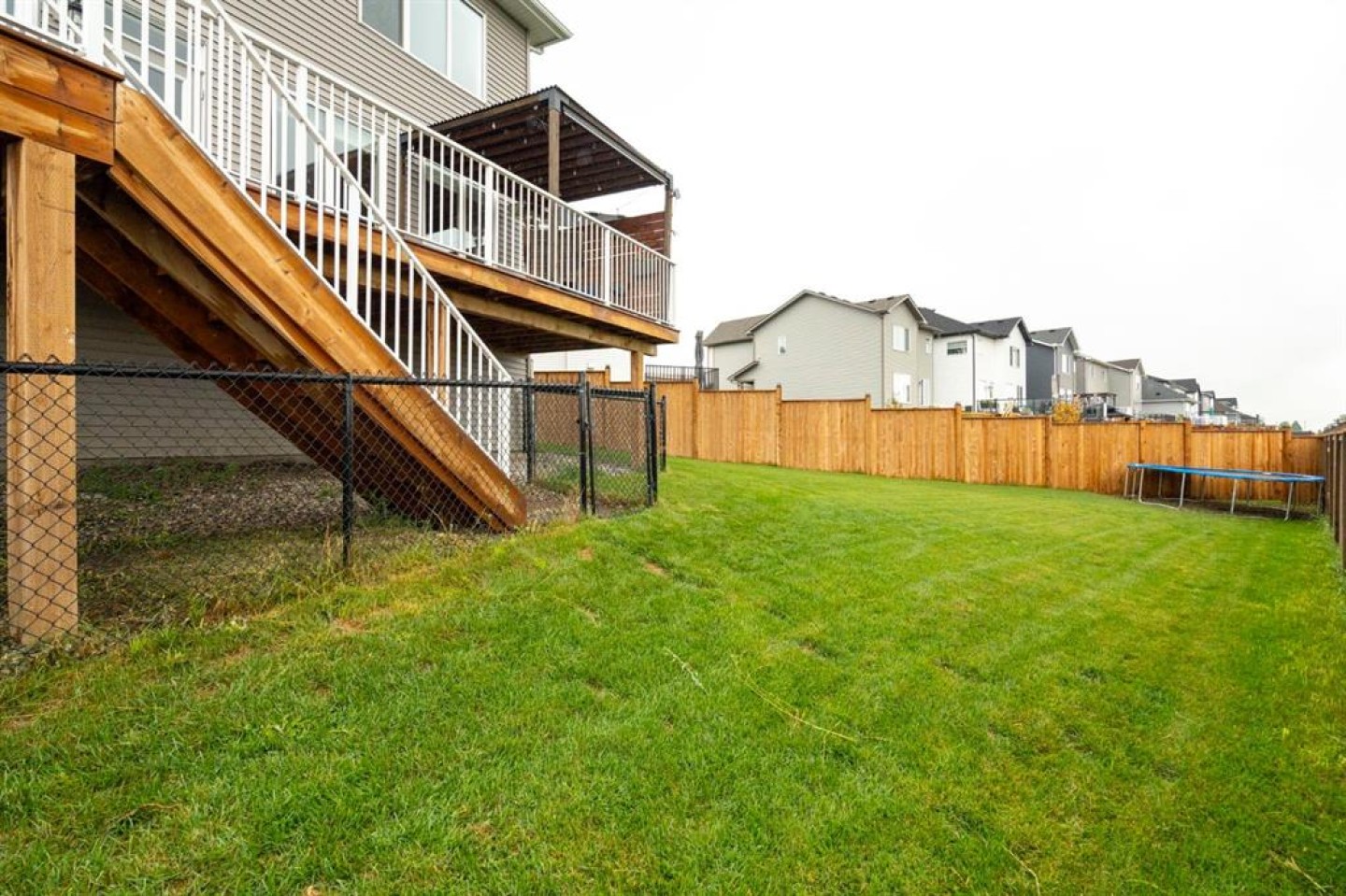 Outside, the west-facing pie-shaped backyard backs onto open farmland leased by a local farmer, giving you peaceful prairie views and the kind of backyard most people only dream of. The home also features A/C to keep you cool in the summer and warm in the winter, plus gorgeous trim lighting that adds a little sparkle year-round. And for those who like their winters toasty, the double attached garage is already equipped with a heater, because stepping into a warm car on a cold Alberta morning? That’s living the dream.