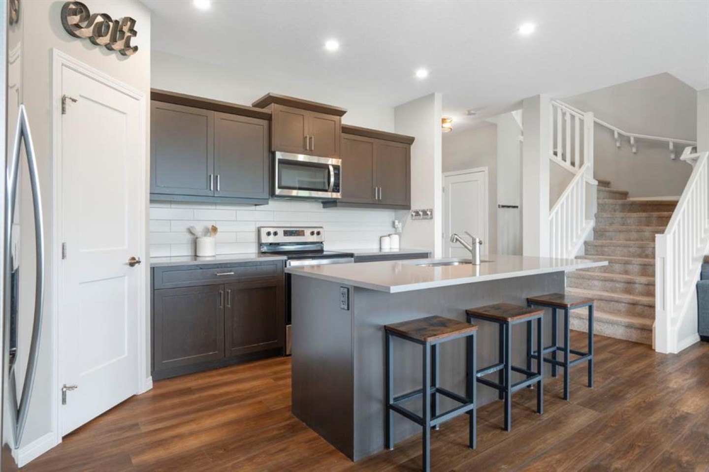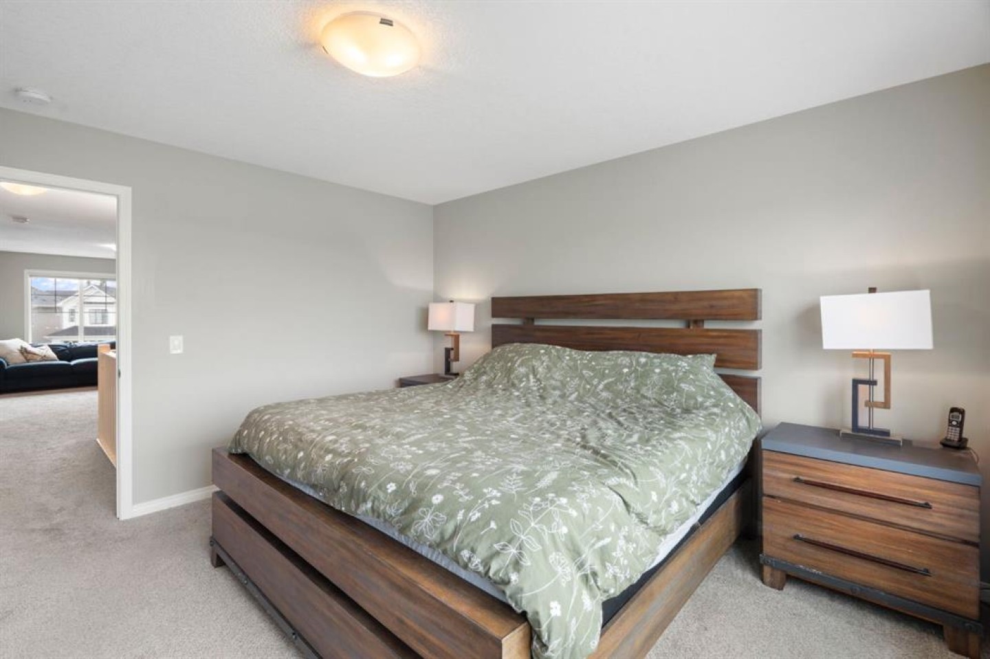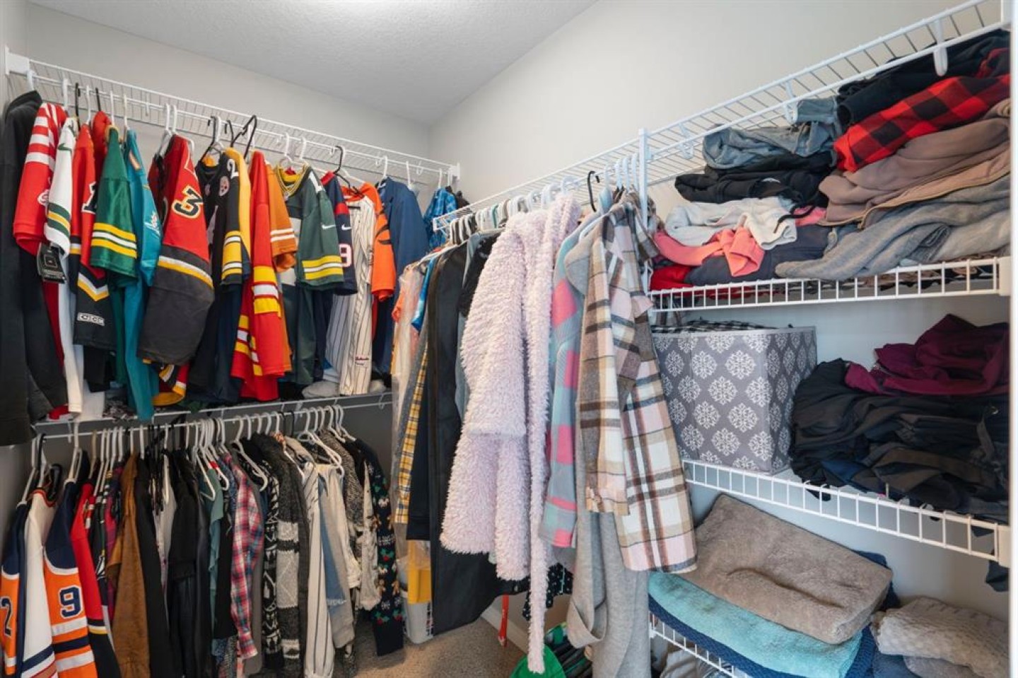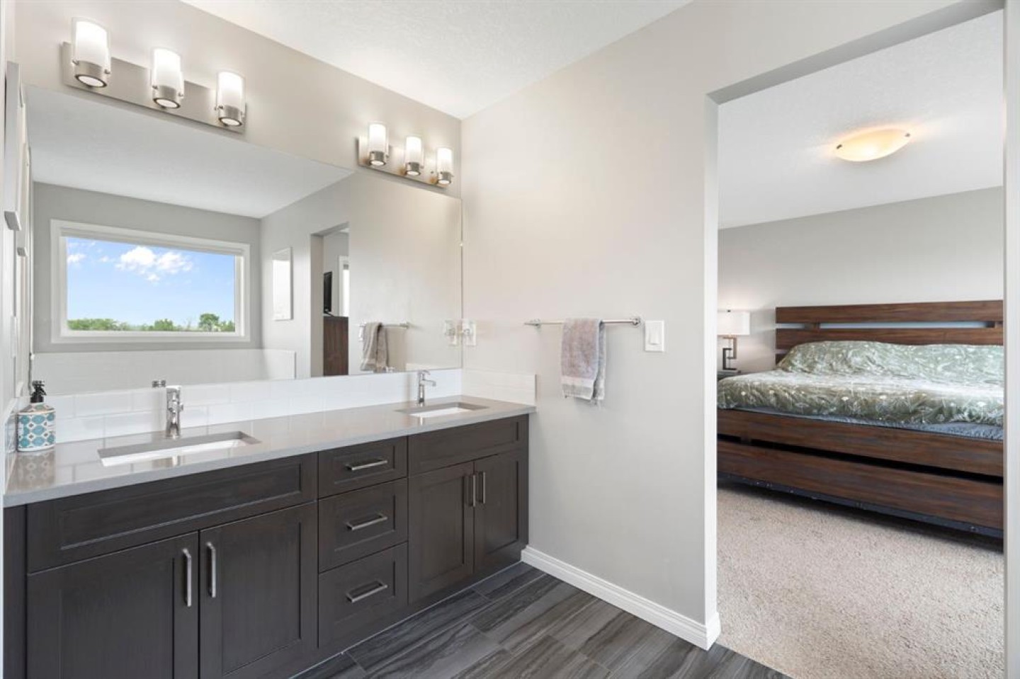 Outside, the west-facing pie-shaped backyard backs onto open farmland leased by a local farmer, giving you peaceful prairie views and the kind of backyard most people only dream of. The home also features A/C to keep you cool in the summer and warm in the winter, plus gorgeous trim lighting that adds a little sparkle year-round. And for those who like their winters toasty, the double attached garage is already equipped with a heater, because stepping into a warm car on a cold Alberta morning? That’s living the dream.