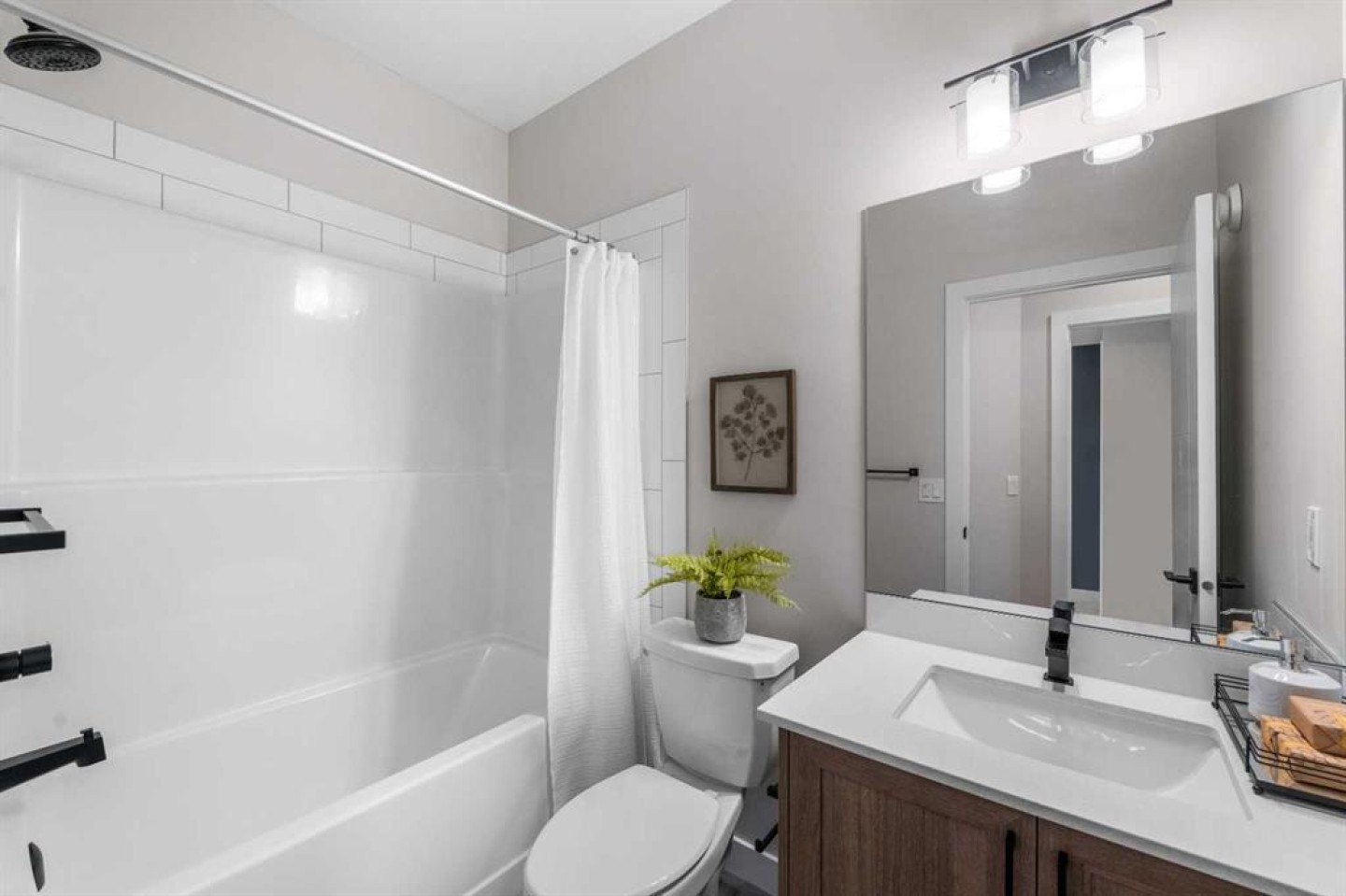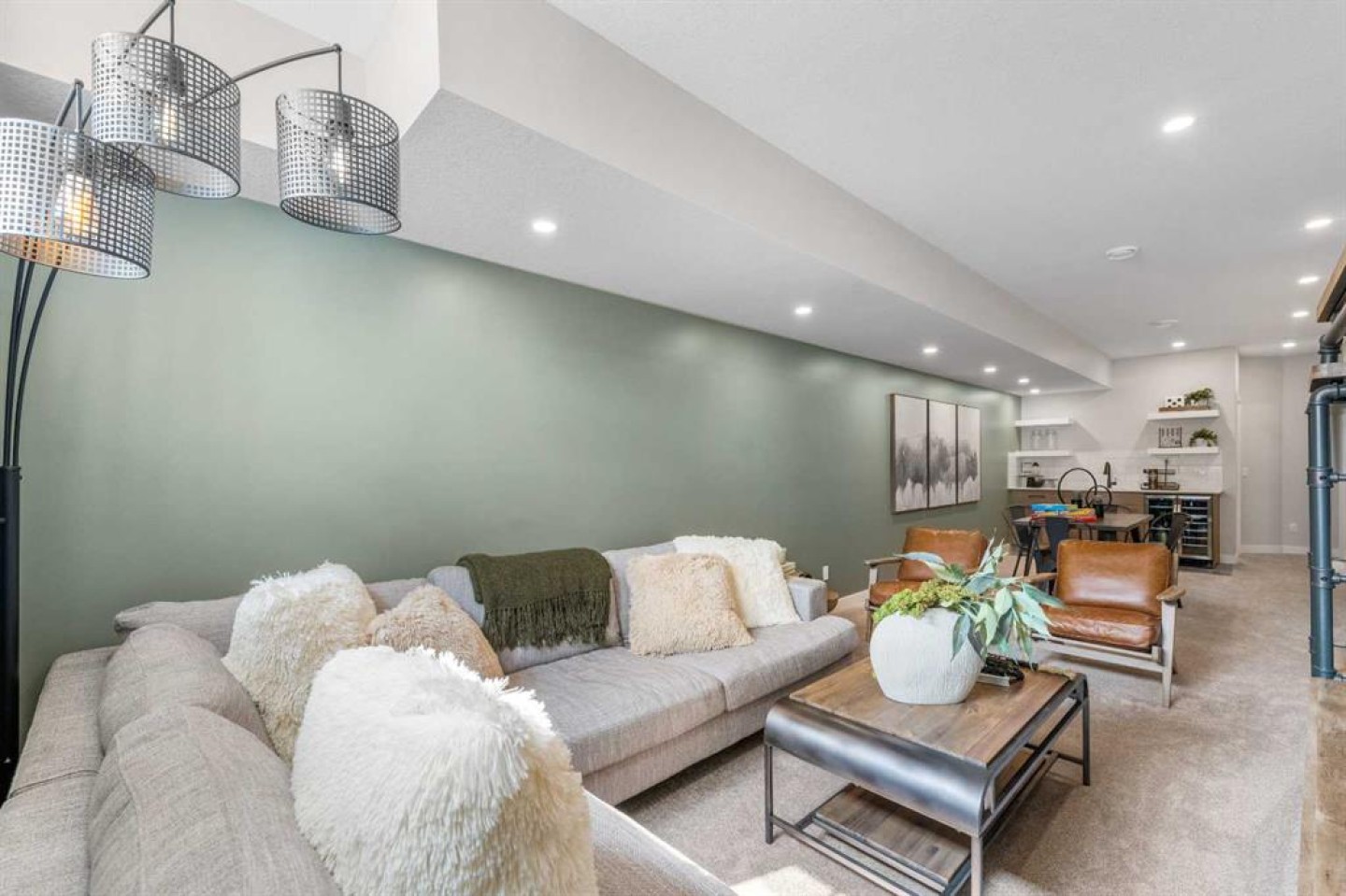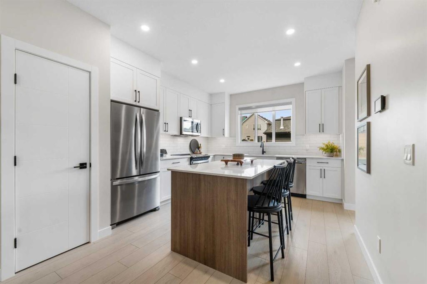Welcome to the former Edward model showhome by Partners Homes, located in the southeast Calgary community of Logan Landing. This fully finished home offers a well-planned layout, thoughtful finishes, and the added peace of mind of builder’s new home warranty. Additional highlights include central air conditioning and a detached garage that is insulated, drywalled, and heated. The main floor features a welcoming entry with a large front closet, a convenient powder room, and a flexible front room suitable for a home office or additional living space. The kitchen is bright and practical, with a central island, window over the sink, two-tone cabinetry extended to the ceiling, and a walk-in pantry. Open dining and living areas flow comfortably together, while the rear mudroom provides everyday organization. Upstairs, the primary bedroom includes a walk-in closet and a four-piece ensuite with dual sinks and a fully tiled shower. A central bonus room separates the primary bedroom from two additional bedrooms, offering privacy and flexibility. A full bathroom and side-by-side laundry complete this level. The fully developed basement with a separate side entrance adds valuable living space and versatility. This level includes a large open recreation area with a built-in bar, beverage fridge, and shelving, along with an additional bedroom, a full bathroom, and ample storage. Logan Landing offers access to the Bow River, ponds, parks, playgrounds, and an extensive pathway network. The community is minutes from the Seton Urban District with shopping, schools, healthcare, and entertainment, and provides convenient access to Deerfoot Trail. This former showhome presents a rare opportunity to own a fully finished, move-in-ready home in one of Calgary’s newest southeast communities.