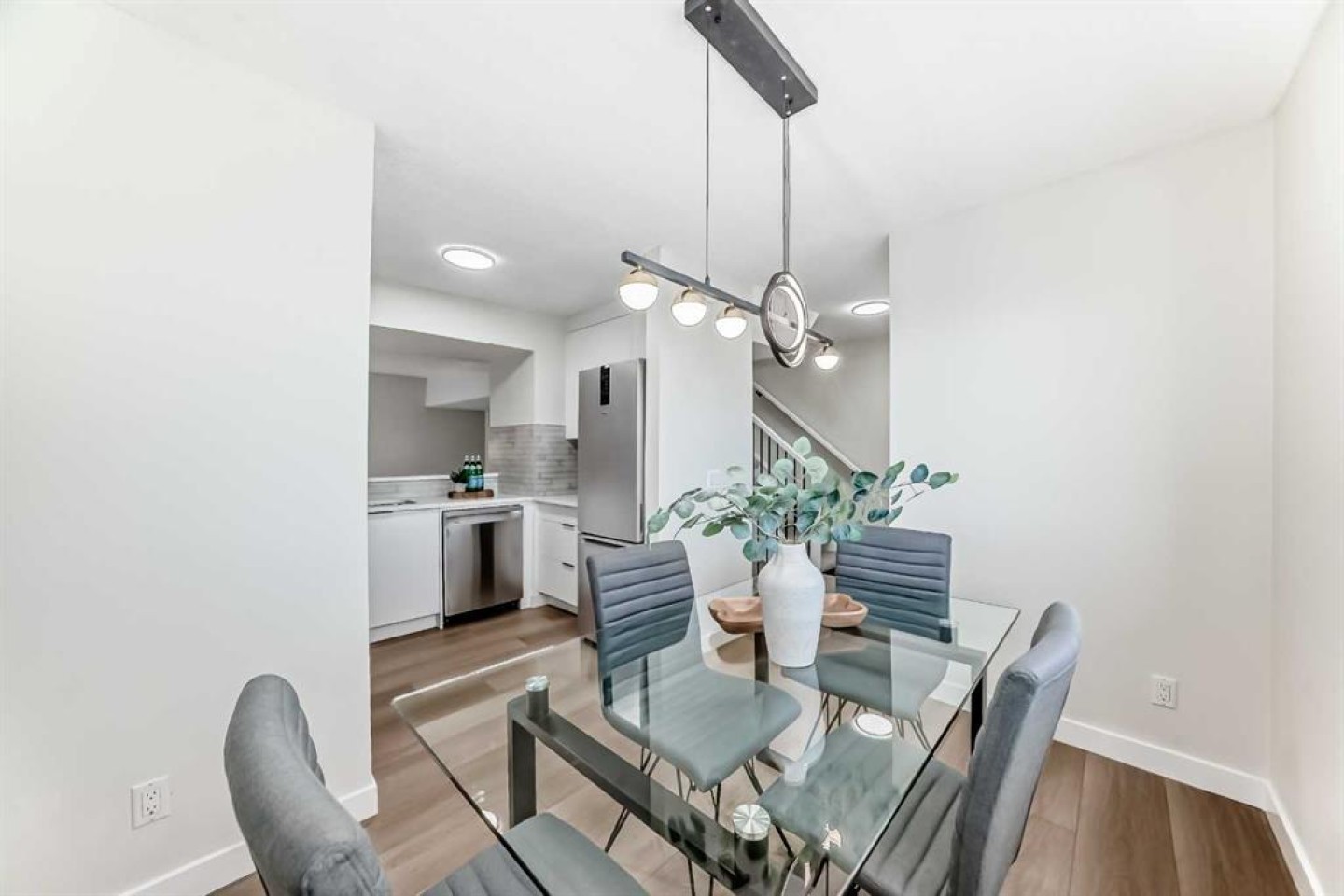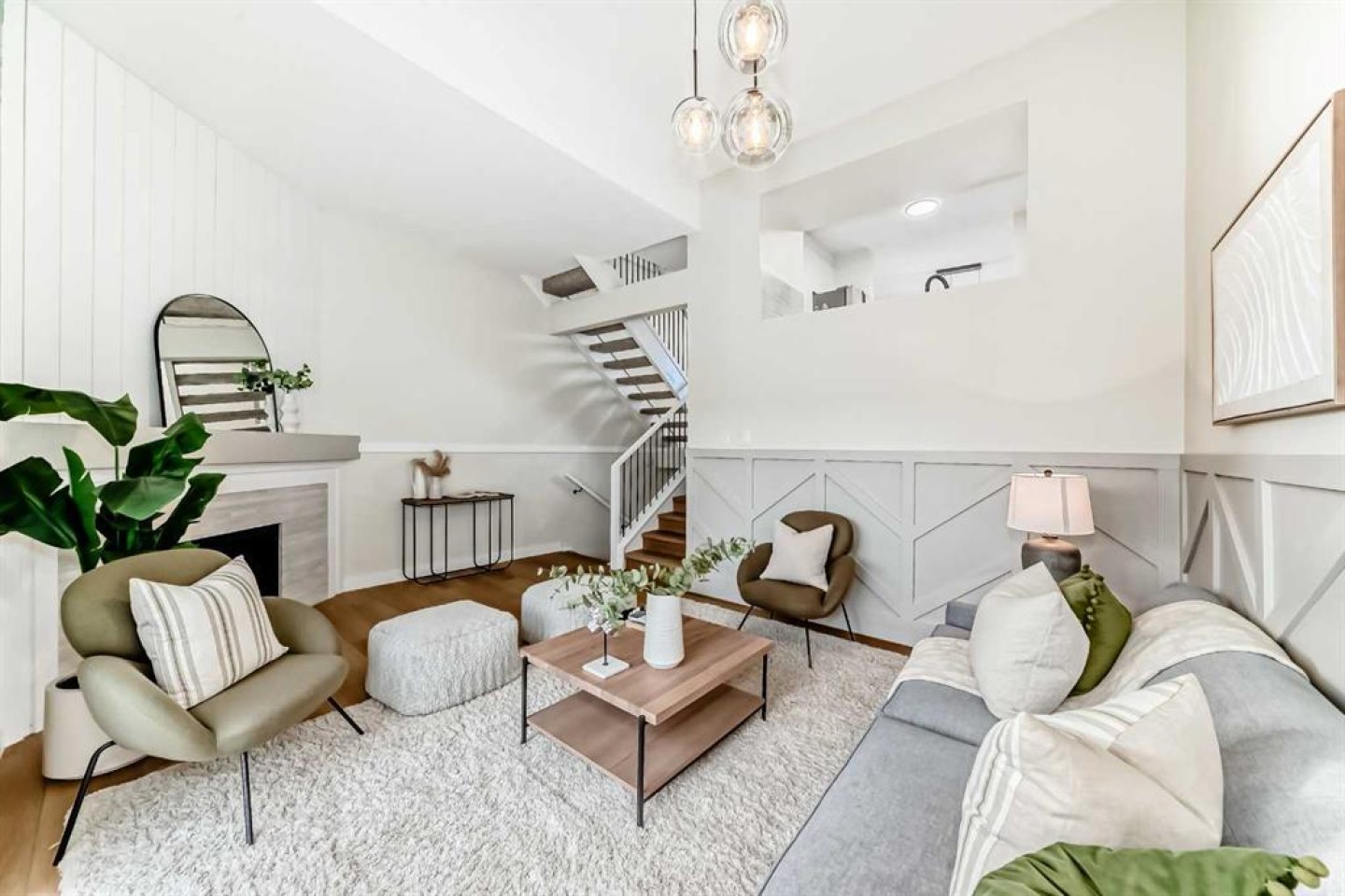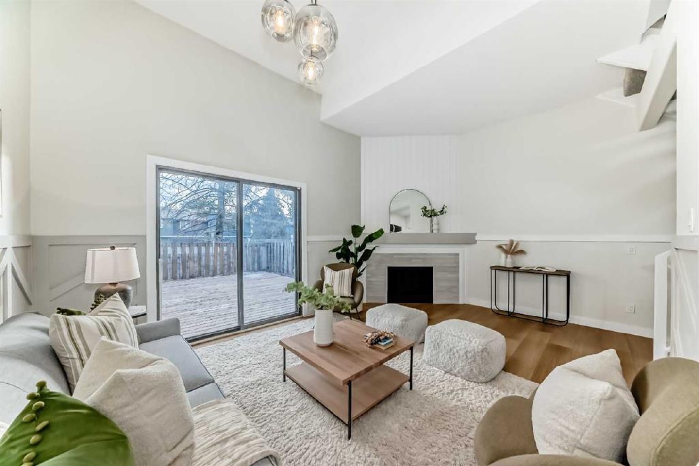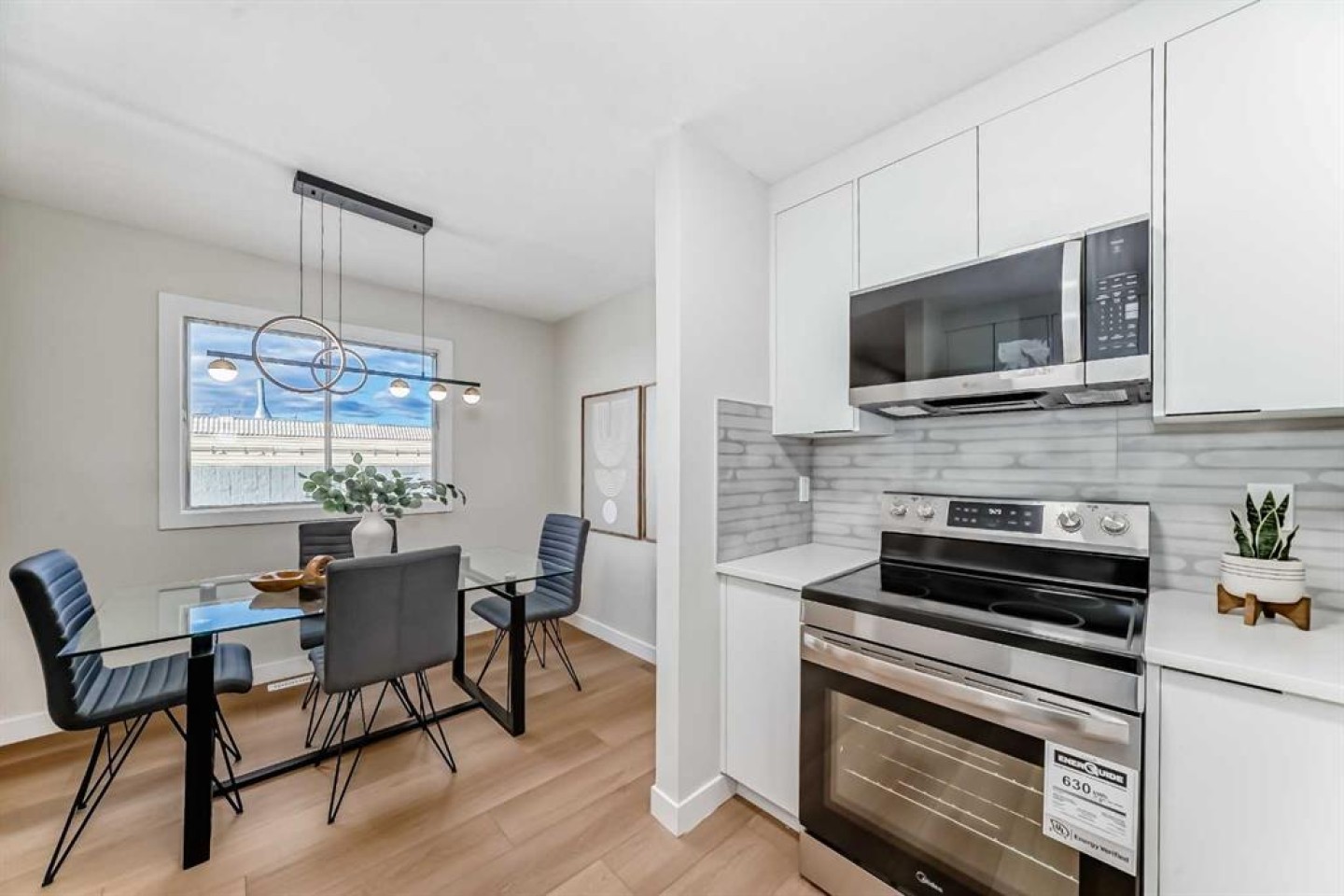 This newly renovated four-level split condo is a must-see. The main level offers a spacious living room with soaring ceilings, shiplap above the fireplace, and custom wainscoting on two wall. A cozy corner gas fireplace anchors the space, while patio doors lead to a massive east-facing deck (15’ x 19’). The railings on the staircase have all been modernized. Just a few steps up, the beautifully updated kitchen features white cabinetry, upgraded stainless steel appliances, and quartz countertops, and opens to a very spacious dining area.