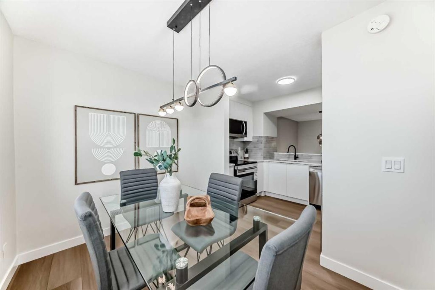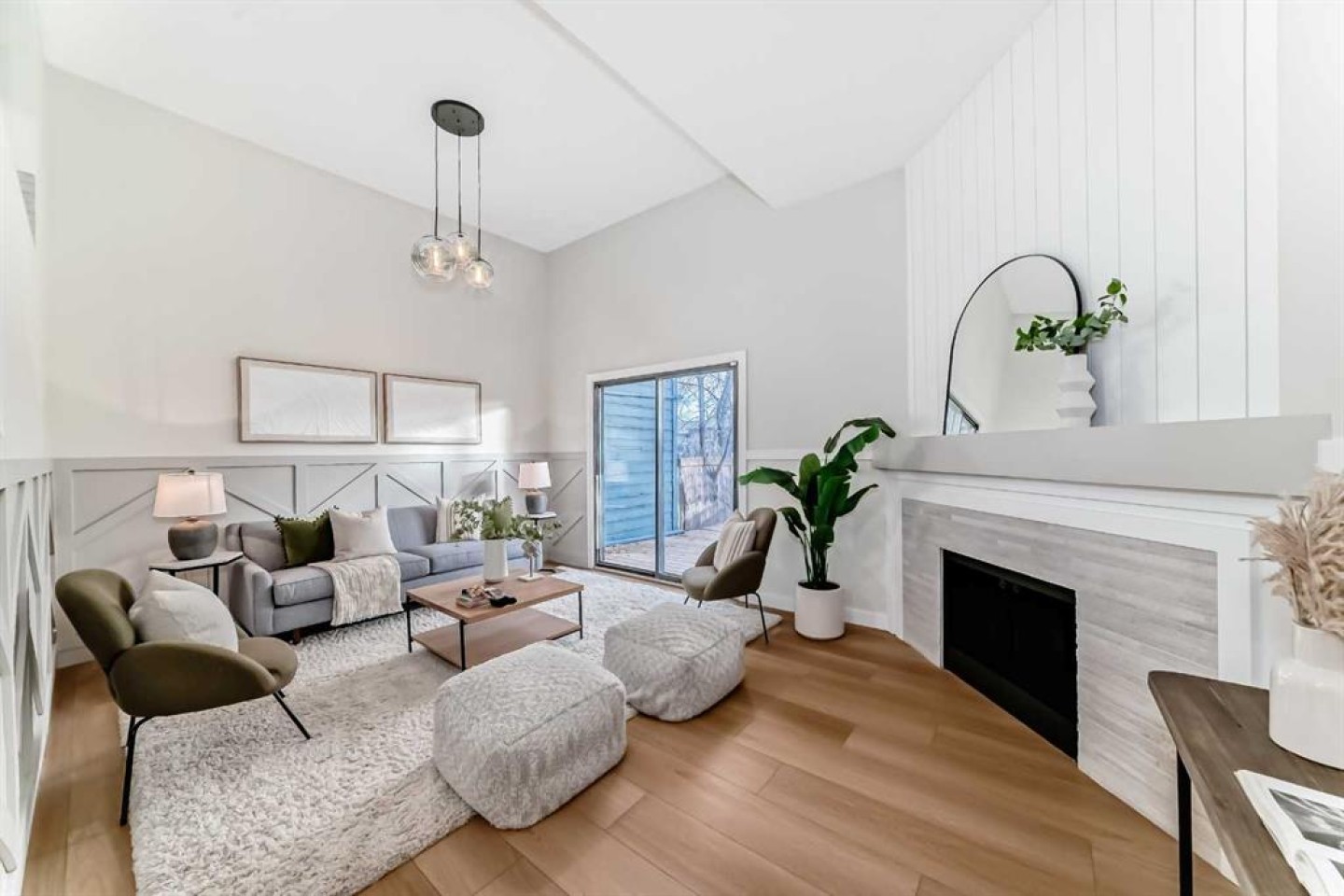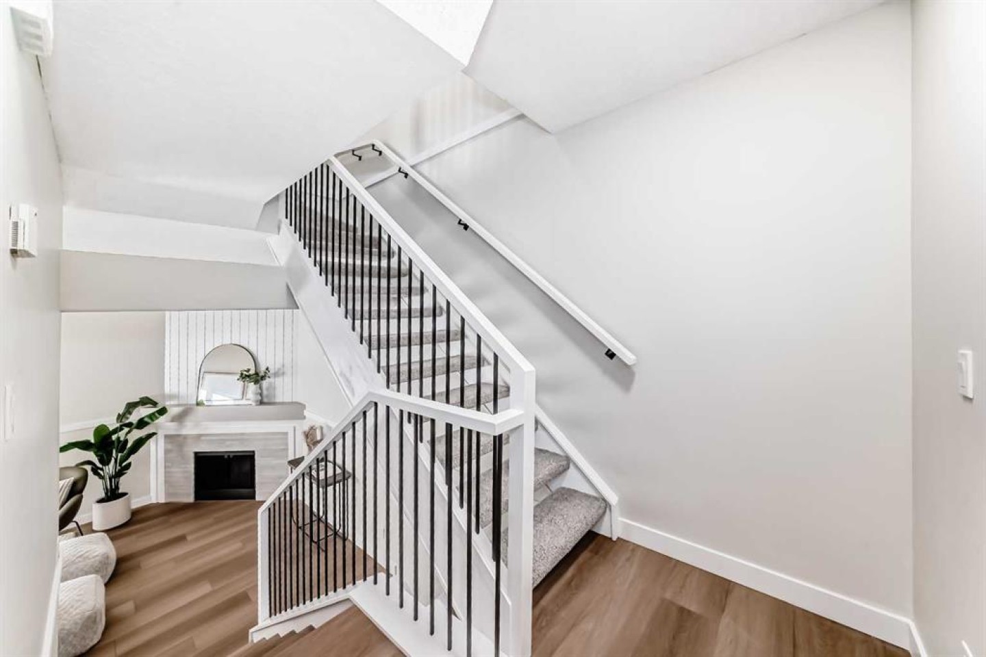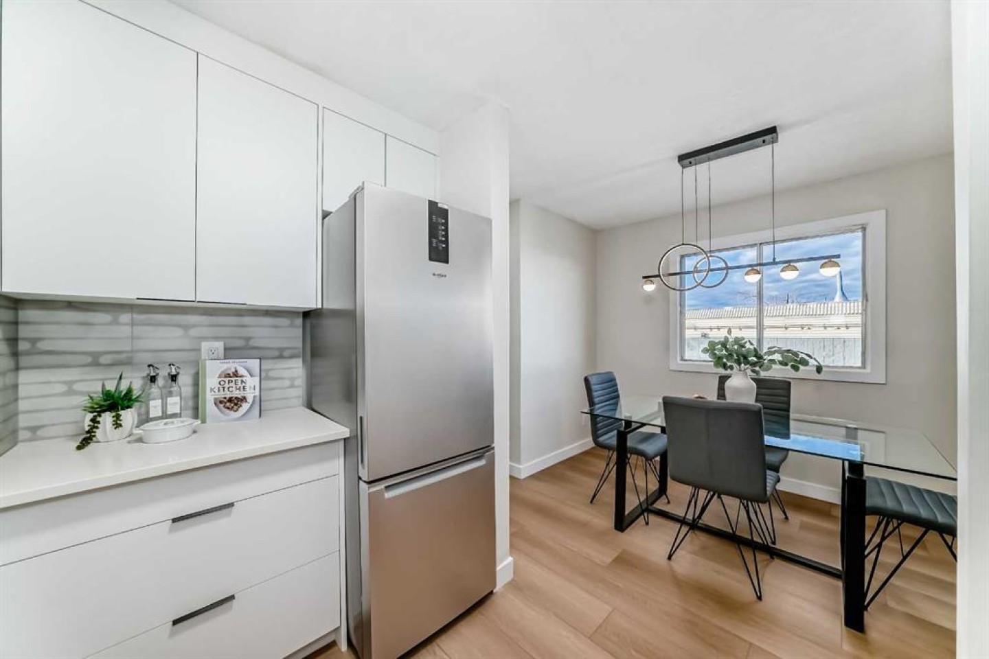 This newly renovated four-level split condo is a must-see. The main level offers a spacious living room with soaring ceilings, shiplap above the fireplace, and custom wainscoting on two wall. A cozy corner gas fireplace anchors the space, while patio doors lead to a massive east-facing deck (15’ x 19’). The railings on the staircase have all been modernized. Just a few steps up, the beautifully updated kitchen features white cabinetry, upgraded stainless steel appliances, and quartz countertops, and opens to a very spacious dining area.
