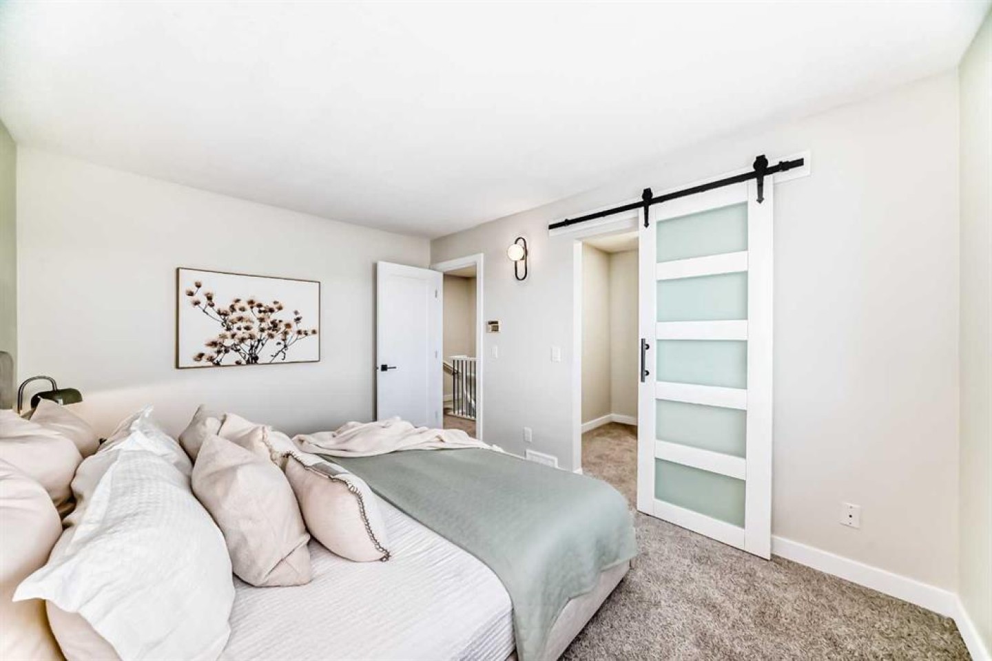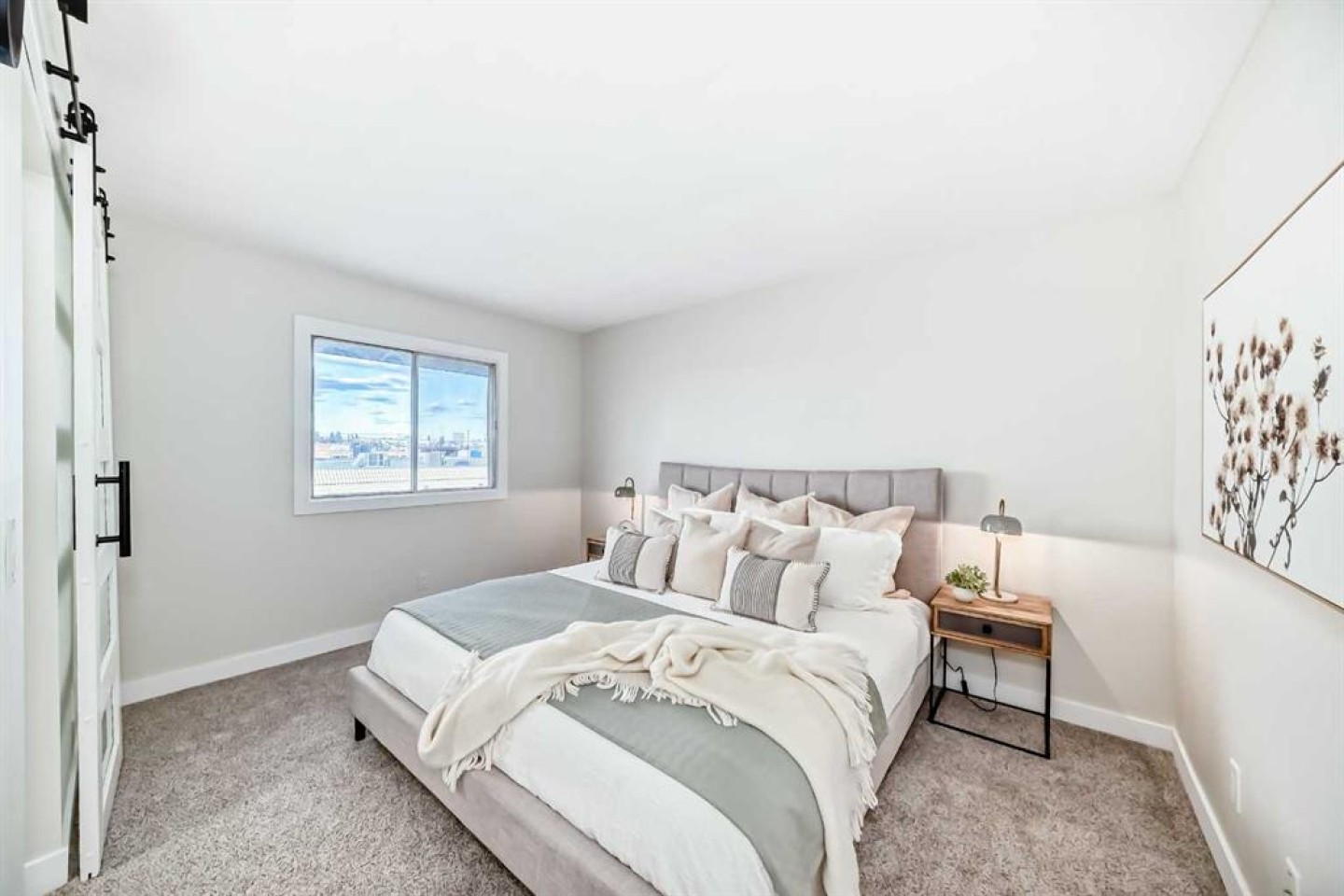 The lower two levels feature new upgraded vinyl plank flooring throughout. Upstairs, you’ll find two generous bedrooms with ample closet space, including a walk-in closet with a modern barn door off the master bedroom. The new flooring upstairs features carpet in the bedrooms and tile in the bathroom. The fully renovated four-piece bathroom showcases a large soaker tub and custom tile work. The home also features all-new lighting throughout, along with newer plumbing fixtures.