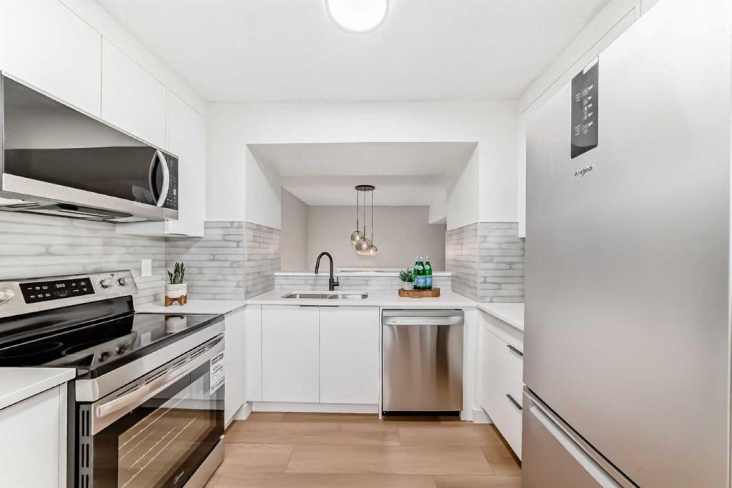 Dishwasher, Electric Stove, Microwave, Microwave Hood Fan, Refrigerator, Washer/Dryer