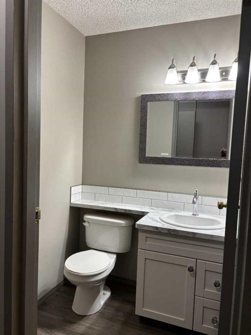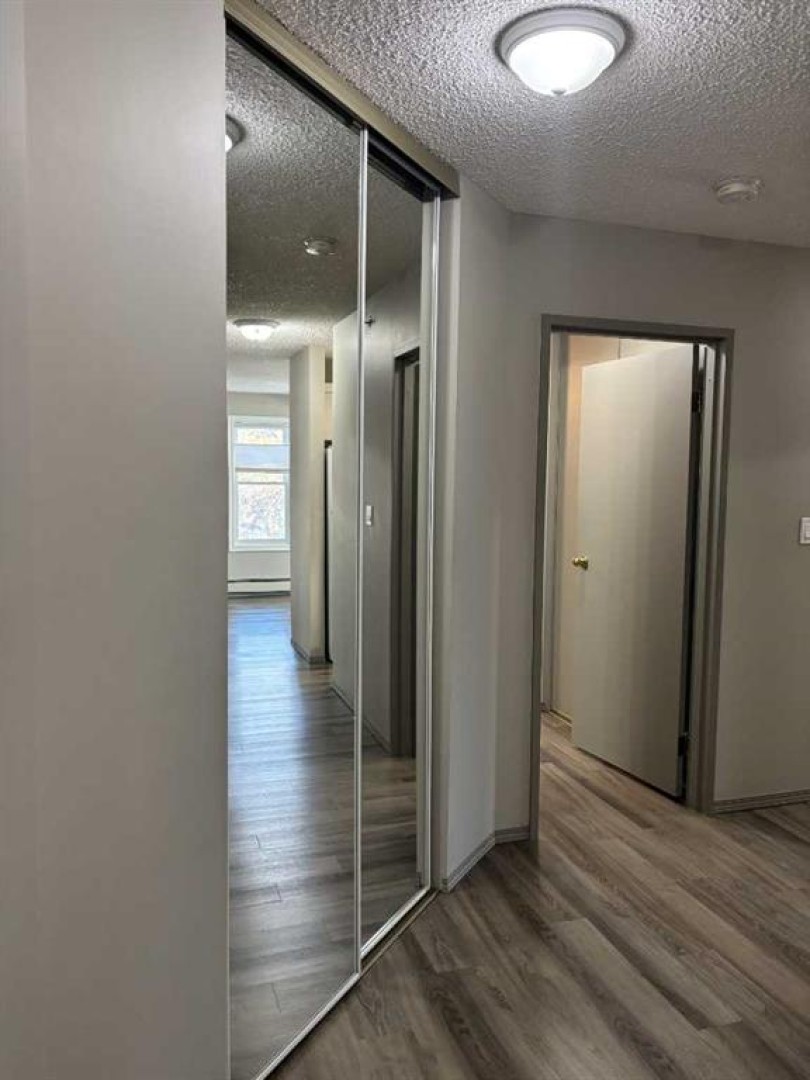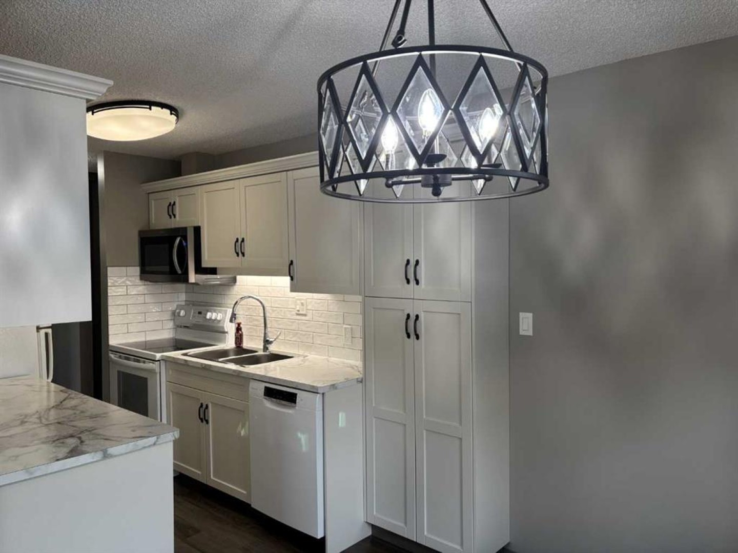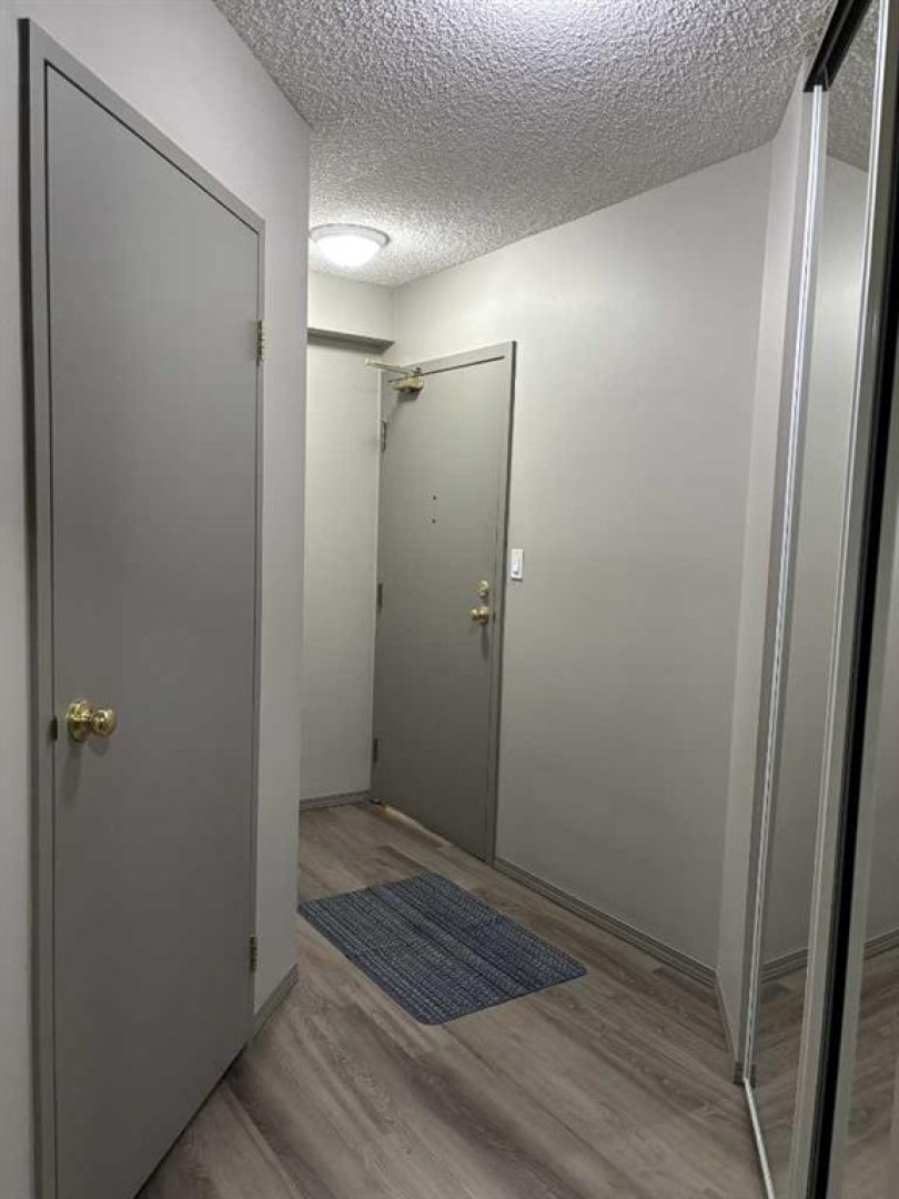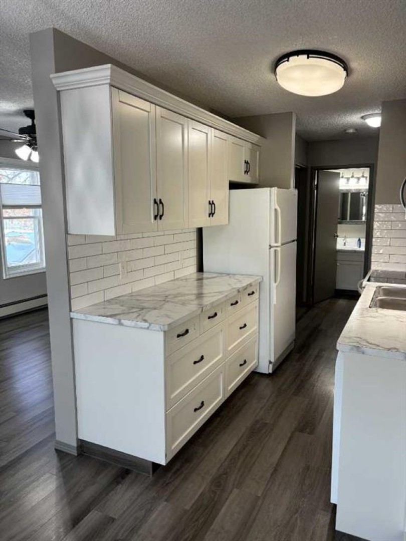 An adult building close to all ameninties downtown Ponoka offers, with a great shared lobby space that makes this a true community. The spacious newly renovated unit is freshly painted, new laminate counters, tile backsplash, lighting, paint thru out was professionally done and has exceptional finishes. Two bedrooms the primary with a 2 piece bath and a spare make it comfortable on your own or with company alike. Both bathrooms in the unit are updated and ready for their new owner. The large covered balcony that faces West has 2 storage units and enough room for a bistro set and some lounging chairs. An indoor parking space is in the parking garage, as well as a "games room" in the lobby is for the use of the home owners. With just your power and internet bill budgeting is a breeze.