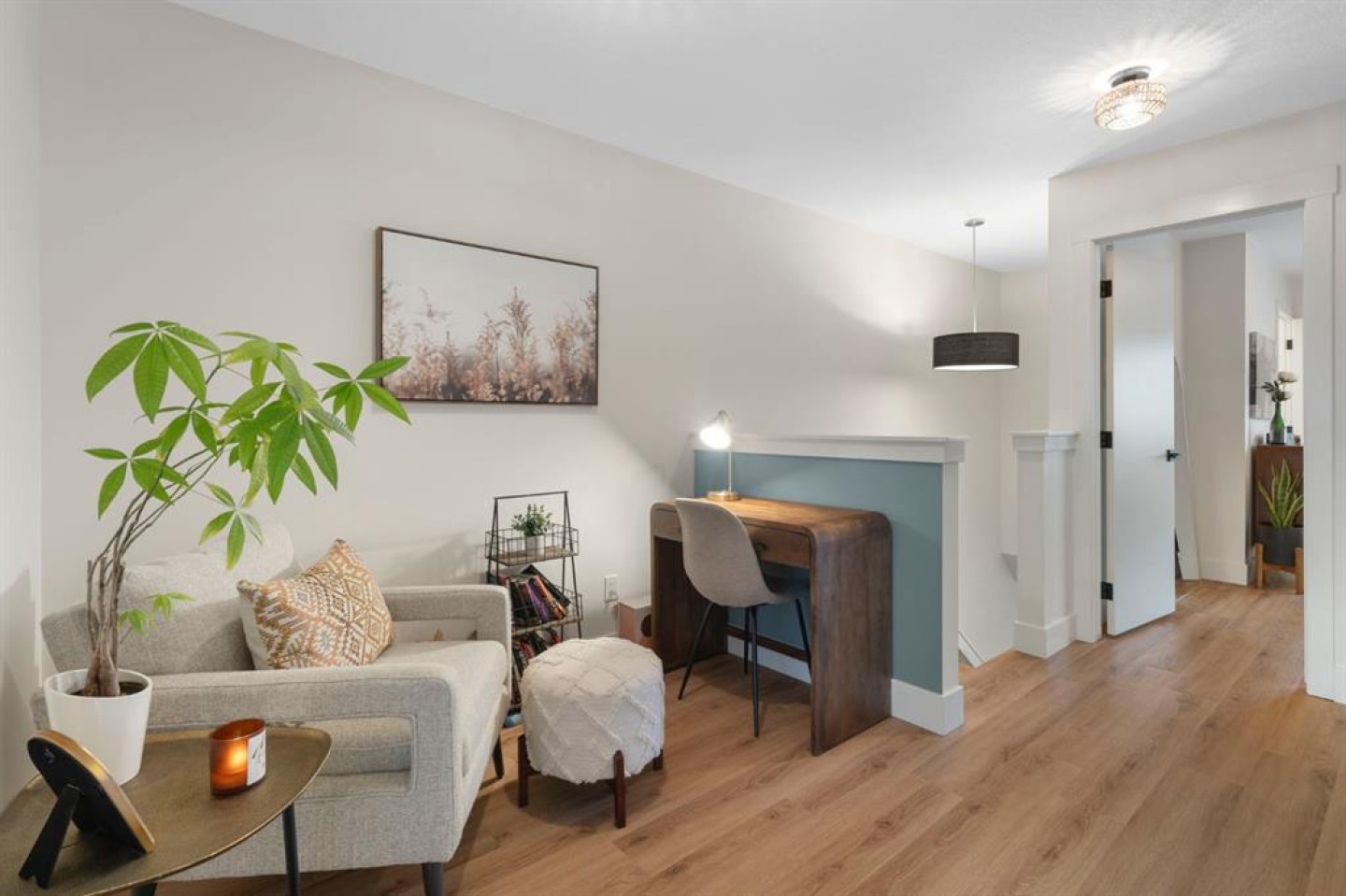 Upstairs, the primary bedroom includes its own ensuite and generous closet space, while two additional bedrooms offer flexibility for kids or guests. The nook that can be used for a home office, reading space or play area. The convenience of upper-level laundry keeps daily routines effortless, and vinyl plank flooring continues throughout the upper level for a clean, cohesive look.