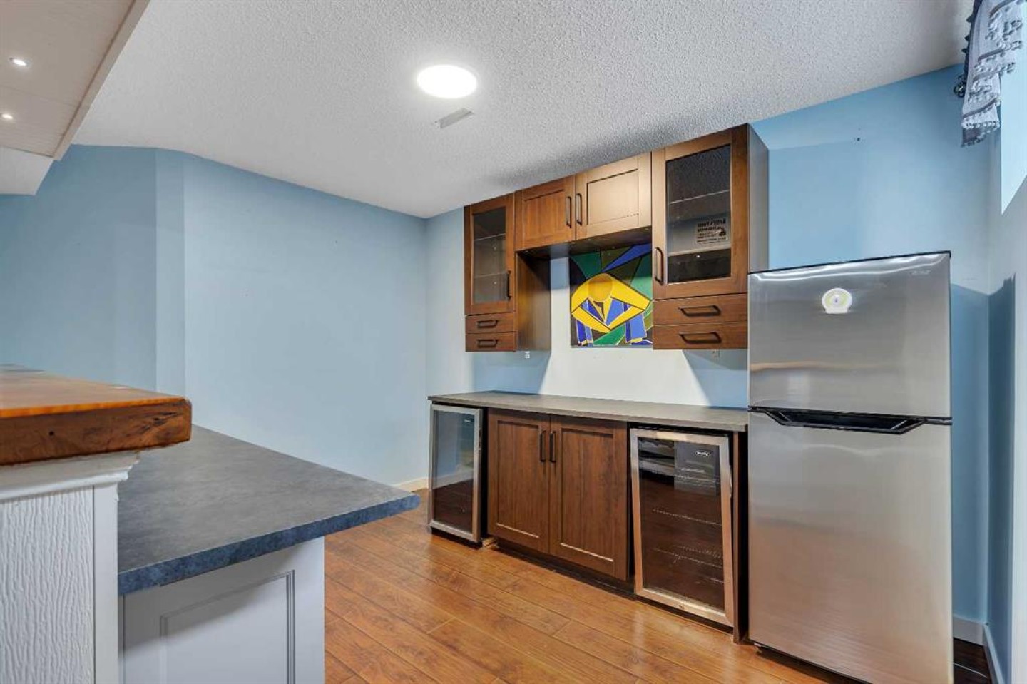 Discover This Impressive 3 + 1 Bedroom Home in Westridge, Okotoks! Explore this stunning home situated in the highly desirable Westridge community. With air conditioning and **3,432 sq ft** of living space, this residence features a recreational room complete with a bar, main floor office, a bonus room on the upper level. This property is conveniently located just steps away from pathway access, perfect for walking and biking enthusiasts. The west-facing, fully fenced backyard is ideal for entertaining guests. Upon entering, you are welcomed by a spacious foyer with a built-in bench. You'll immediately notice the beautiful new engineered hardwood flooring, **9-foot ceilings**, and large windows that fill the space with natural light. The expansive living room with gas fireplace, kitchen, and dining area are designed for comfort and style. The roomy kitchen offers ample cupboard and counter space, along with upgraded stainless steel appliances, including a gas stove. The bright and airy dining room provides access to the west-facing 2 tiered deck. A standout feature of this home is the walk-through pantry that connects to the mudroom, leading to the double attached heated garage. The pantry includes a wall of cupboards for all your storage needs, while the mudroom features built-in benches and hooks for hanging coats. Completing the main level are a convenient office and a half bath. UPPER LEVEL HIGHLIGHTS The upper floor boasts a spacious primary bedroom with a wall mounted electric fireplace, generous walk-in closet and a **5-piece ensuite**. There are two additional bedrooms and a 4-piece bath. A roomy bonus area with a stylish electric wall heater and close at hand is the laundry room. LOWER LEVEL HIGHLIGHTS! The lower level is perfect for gatherings, featuring a large recreation room, a bar equipped with a bar fridge, beer fridge, and wine fridge, fourth bedroom and a 3-piece bath with a sauna. An extra spacious utility room for abundant storage is included. This home not only offers great curb appeal but is also conveniently located near shopping, restaurants, schools, and more. Don’t miss the opportunity to own this beautifully maintained family home, which boasts numerous thoughtful upgrades, including: New engineered flooring throughout the main floor, Updated paneling on the counters (2024)