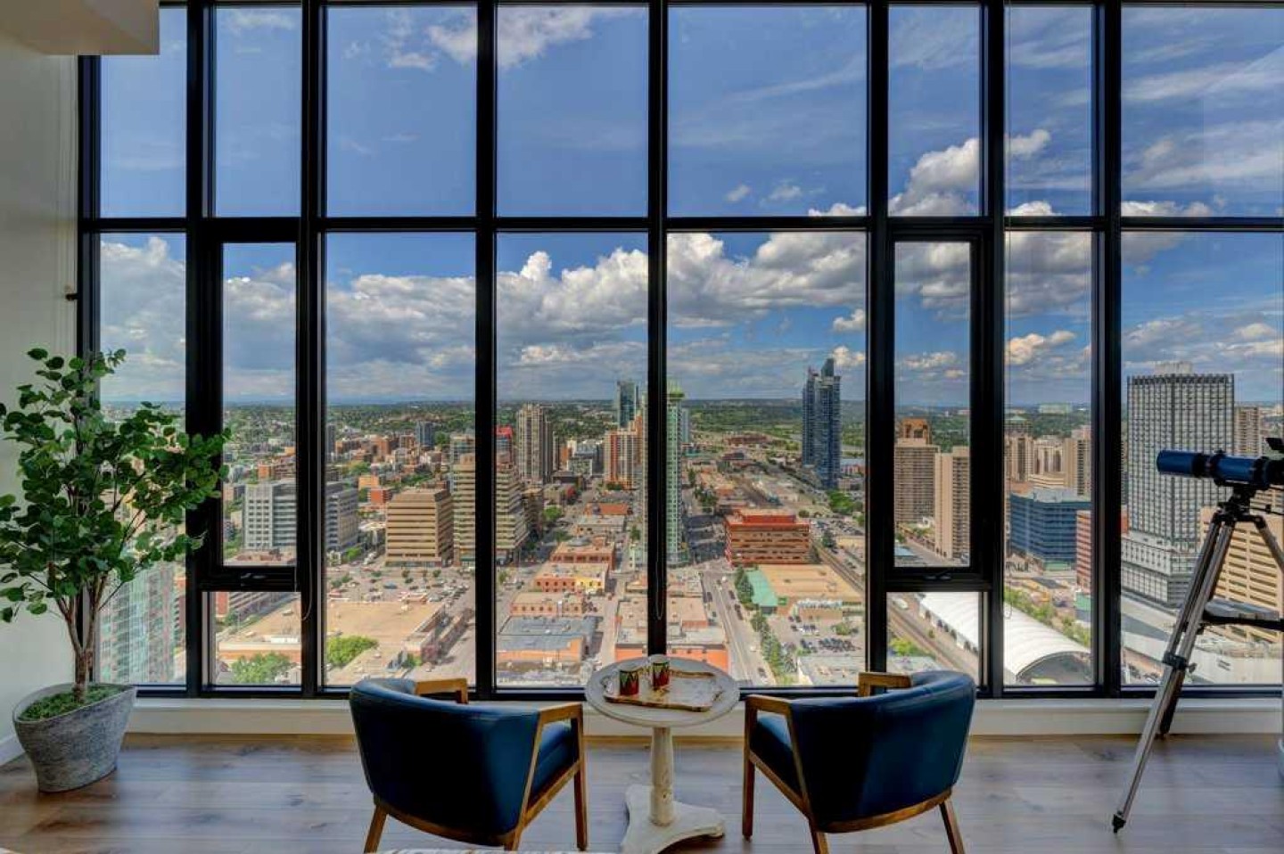 Fantastic views from this beautiful Penthouse! Location location, enjoy all the great new amenities in the heart of downtown Calgary’s Beltline, this modern penthouse suite is situated on the 31st floor of 6th and 10th. With over 1700 sqft. of living space on the inside and an additional 970 sq.ft. of outdoor living space, this stunning two-bedroom home is the largest and most impressive suite in the tower. The massive outdoor terrace area is one of the largest of any penthouses within the city and boasts stunning panoramic, mountain and city views, ideal for entertaining friends and family. The floorplan has been thoughtfully designed and features an open concept floor plan creating a bright and spacious living space. The chef inspired kitchen is well equipped with sleek, high gloss and modern cabinetry, stone countertops, stylish backsplash, and stainless-steel appliances with a gas stove. This incredibly open concept design is highlighted by 12 ft ceilings and floor to ceiling windows. You’re going to love working in the den, which offers incredible light and breathtaking views towards the Rocky Mountains, making it a perfect place to work or relax. The gorgeous master bedroom features a luxurious spa inspired ensuite with marble flooring, oversized shower (with mountain views!), double sink and a deep soaker tub, a brilliantly designed walk-in closet and a spacious private balcony offering some of the best views in the city. The second bedroom is inviting, also offering incredible views with a private balcony and large closet. Conveniently located close to the second bedroom is the 4-piece bath that features stunning marble flooring, a soaker tub, and a stone countertop. Additional special features include in-suite laundry, a large foyer and full-sized closet. Amenities in the building include the outdoor plunge pool and lounging area in the summer,