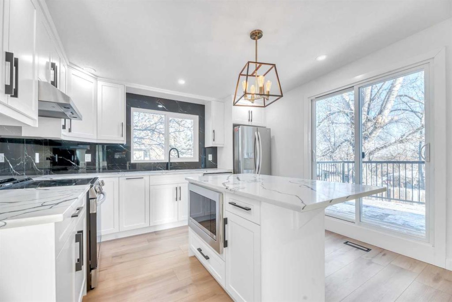 *** OPEN HOUSE: Sunday, January 11, 2:00-5:00PM *** WOW! Welcome to 128 Cantrell Place in Canyon Meadows, SW Calgary! This beautifully renovated, one-of-a-kind bungalow is situated on an incredible lot, on a quiet cul-de-sac, and boasts 2,400 square feet of fully developed living space, with 5 bedrooms and 3 bathrooms! The freshly remodelled open-concept main floor features 3 bedrooms, 2 bathrooms (including an ensuite with walk-in shower in the primary bedroom), modern kitchen (with brand new stainless steel appliances, quartz countertops and bright white shaker-style cabinetry), sunken living room (with electric fireplace and built-in cabinetry/shelving), sizeable dining room, main floor laundry, and ample storage/closet space! The newly and fully finished basement, with private separate side entrance, showcases an illegal basement suite with kitchenette, living/recreation room, 2 bedrooms, den/flex room, full bathroom, washer laundry hookup in the mechanical room, and an abundance of additional storage/closet space! Other noteworthy improvements here include: new vinyl windows, new exterior paint, new deck off of the kitchen (overlooking the backyard), and custom closet organizers in all the main floor bedrooms. This renovation was tastefully and seamlessly completed with consistent and matching finishings throughout! The spectacular west-facing front yard hosts an extra long driveway suitable for up to three vehicles (with plenty of room for a future garage), and the exquisite east-facing backyard is fully fenced and private, with two wooden decks for outdoor relaxation and entertaining! This property is located in the heart of Canyon Meadows, with close proximity to parks, playgrounds, schools, shopping, and public transit. Don’t miss out on this rare opportunity, call today!