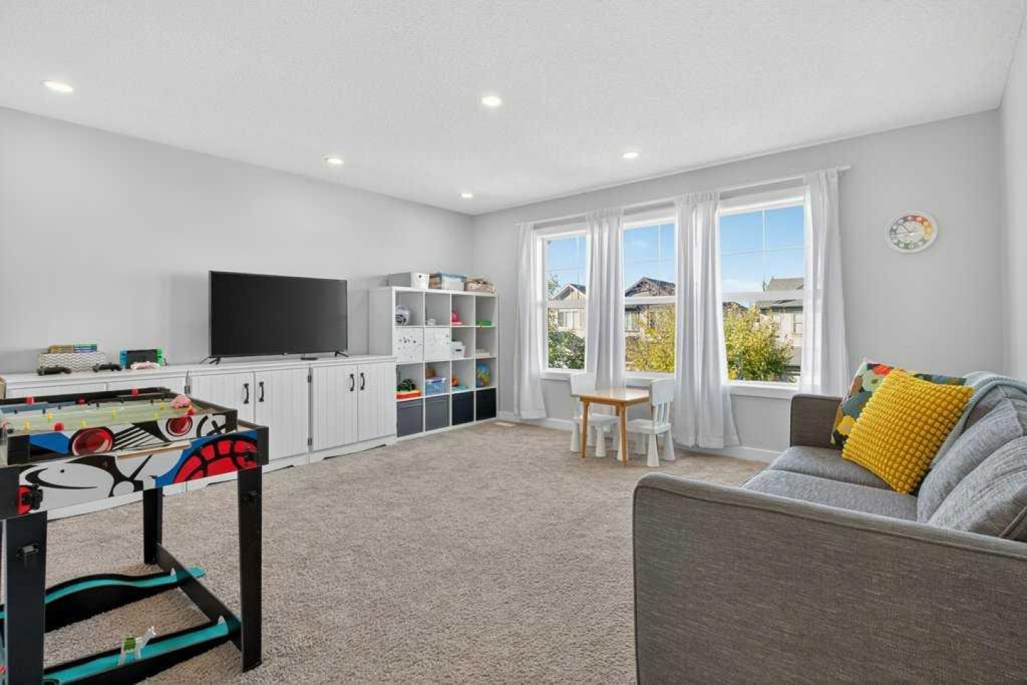 We are thrilled to present a truly exceptional property in New Brighton, one of Calgary's most sought-after neighborhoods. This five-bedroom, Cardel-built home offers over 3,000 square feet of developed space and is designed to impress. From the moment you step inside, you'll be greeted by open and airy nine-foot ceilings and luxurious upgrades throughout. Updated vinyl plank flooring guides you past the tandem triple garage and mudroom into the spacious main living area. A stylish barn door provides privacy for the main floor office, perfect for those who work from home. The modern kitchen is a chef's delight, featuring an extended island, a walk-in pantry, and updated appliances. Adjacent to the kitchen is a generous dining area that opens onto a large composite deck, ideal for outdoor entertaining. The expansive family room, complete with a custom fireplace, ensures cozy gatherings during cooler seasons. The living space extends outdoors with a sunny, east-facing yard, newly decked to enhance your summer evenings. Exterior upgrades include a fenced dog run, a firepit gas line, and Gemstone lighting. Upstairs, a huge bonus room provides the perfect space for sports enthusiasts or movie buffs. The upper level also features convenient laundry facilities, three bedrooms, and two full bathrooms. The enormous primary suite boasts a walk-in closet and a separate shower and tub, bathed in natural light. For your comfort, the entire home is fully air-conditioned. The fully developed basement offers an additional two bedrooms and a generously sized bathroom, perfect for teenagers, guests, in-laws, or multi-generational families. There's also a closed-off craft room, currently used as an artist's studio, ready for your own vision. SOLAR PANELS are a huge bonus and are sold contract free. This is truly one of the most desirable homes in the area, complete with a rare triple tandem garage. New Brighton offers an abundance of amenities, including walking paths, skate park, shopping centers, restaurants, schools, and water parks. Don't miss the opportunity to make this incredible home yours.