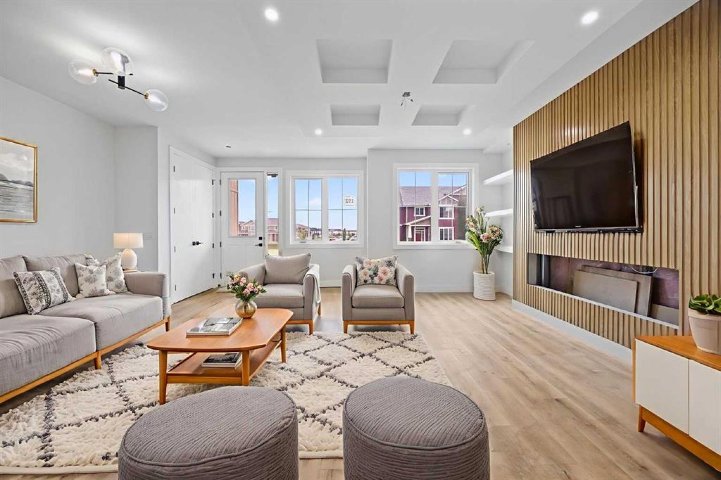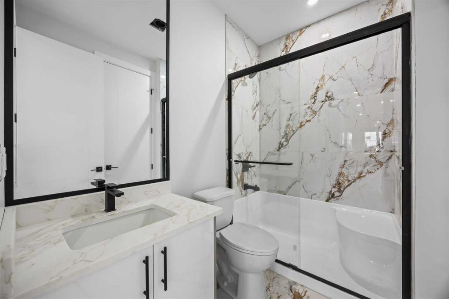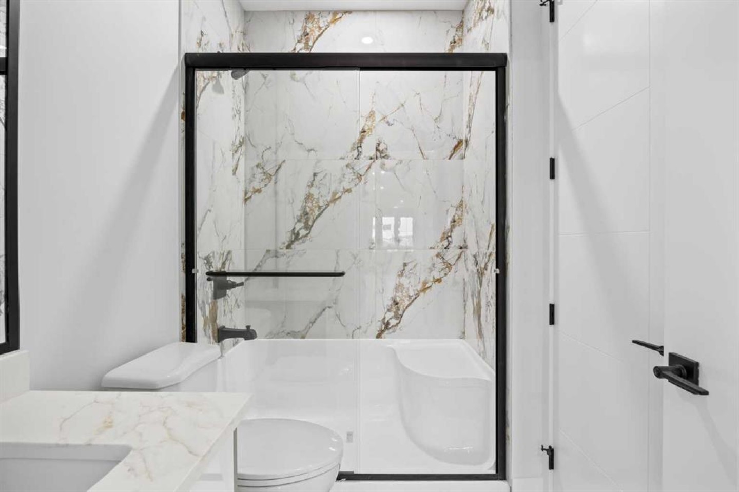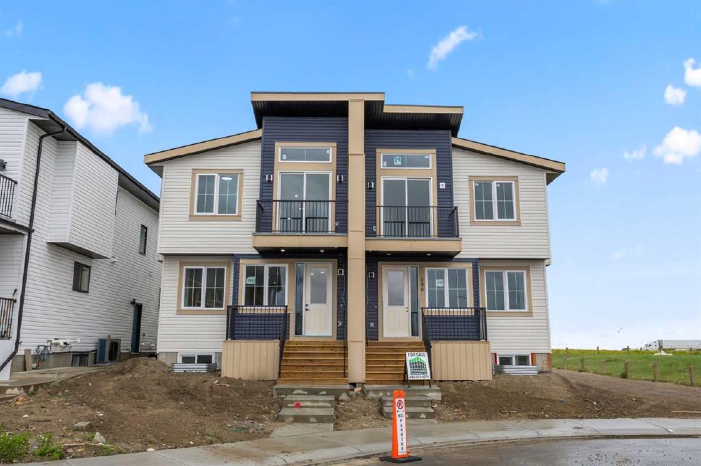 Welcome to this stunning semi-detached home in the desirable community of Saddle Ridge, offering over 3,000 sq ft of living space including a legal 2-bedroom basement suite! This beautifully upgraded home is packed with thoughtful details throughout, featuring 9 ft ceilings on all 3 levels, 8 ft doors, sleek black fixtures and hardware, quartz countertops, full railings, and large windows that flood the home with natural light. The main floor greets you with a spacious living room showcasing a modern built-in electric fireplace and custom shelving, leading into a chef’s dream kitchen with full built-in design, stylish two-toned cabinetry, gas cooktop, built-in oven and microwave, chimney hood fan, oversized island, and a pantry with wooden shelving. A full-size bedroom and a 3-piece bathroom with tiled shower add extra versatility on the main floor, along with a mudroom featuring built-in bench, cabinetry, and coat hooks. Upstairs you’ll find a bright family room with another electric fireplace and a balcony, two generous bedrooms, a 4-piece bath, convenient laundry room, plus a luxurious primary suite with dual-sink vanity, tiled shower, and custom walk-in closet. The legal secondary suite in the basement is finished to the same high standard, complete with 2 bedrooms, full kitchen, living room, 4-piece bath, and separate laundry—perfect for extended family or rental income. With every closet and pantry fitted with custom wooden shelving, upgraded finishes throughout, and a rare combination of space and style, this home truly has it all! Ideally located with quick access to Calgary International Airport, major highways, LRT, schools, shopping, recreation, and hospitals—this move-in ready home is an opportunity you don’t want to miss!