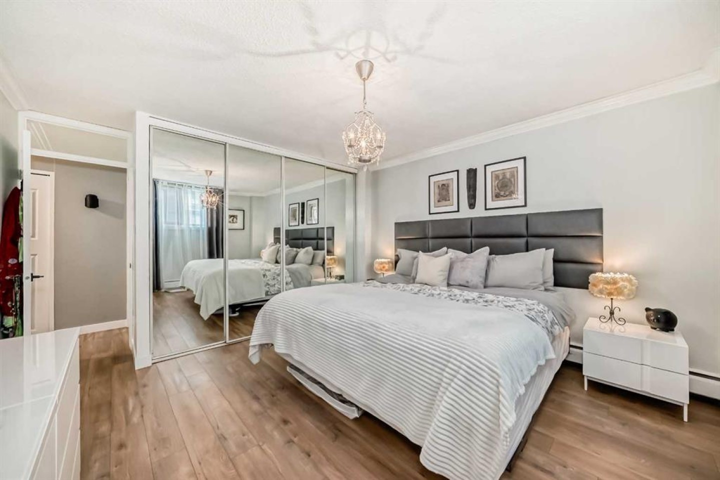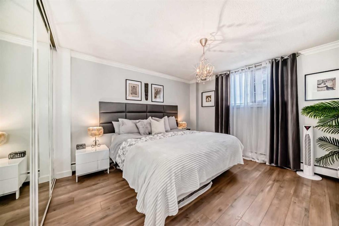 Come see this home for yourself....THIS weekend: OPEN HOUSE: Saturday Jan 10th: 11 am – 3 pm! Welcome home. Walking through the front door of your new home will check every box on your list including it being FULLY UPDATED, a Sunny South Exposure, and situated in the most walkable neighbourhood in Calgary with a walkability score of 99/100! Proudly presenting to you: Manor House – this well-cared for, quiet CONCRETE complex – where your affordable condo fees include all utilities (yes....even electricity!). This SPECTACULAR 2-bedroom home has been transformed and modernized, in the desirable Beltline neighbourhood – just steps away from all the action! Inside you will instantly appreciate the new elegant luxury vinyl plank flooring throughout the home which matches the modern décor throughout. The home features exceptional updates and upgrades throughout, which start out in the striking kitchen. The kitchen (like the entire home) has been completely renovated, highlighted by ALL new cabinetry and stunning Quartz gun metal grey countertops, with undermount sink. Counter level seating awaits, perfect for visiting with friends and family as you entertain from your exquisite gourmet kitchen. Updated SS appliances can’t wait to be used by you! There is ample space for a deep freeze IN your kitchen, without losing any counter or cupboard space, tucked away under the counter! Just off the kitchen is a large dining room, which can easily host a large dining table, perfect for making memories with friends and family. This home features beautiful crown moulding throughout; as well as beautifully updated lighting throughout. The large stunning living room is an exceptional space, large enough to accommodate all your furniture, providing plenty of space to relax or provide the ideal space to entertain! The tour continues with 2 large closets in the hall, and an updated & stunning 4-pc bathroom. The Primary bedroom is one of the largest you will find – hosting a King size bed, dresser and nightstands with ease, while still allowing for ample space leftover. The Primary closet features custom built-ins, easily organizing your wardrobe. The secondary bedroom is of excellent size and is the ideal place to host your home office, guest bedroom or use as a Yoga space! Newly updated vinyl windows allow your home to be energy efficient year-round! The large (11.5x 5 ft) balcony is ready for your enjoyment – offering endless sunshine with a sunny south facing view, perfect to enjoy in the warmer months! There is FREE laundry located on every floor of this superb building. Your new home comes with one assigned secure parking stall + additional storage locker for your items you don’t use every day. There is so much to love about this unique home including its location! You can walk or bike easily to work, and take in and enjoy the multitude of local shops, restaurants, pubs, grocery stores, and so much more!