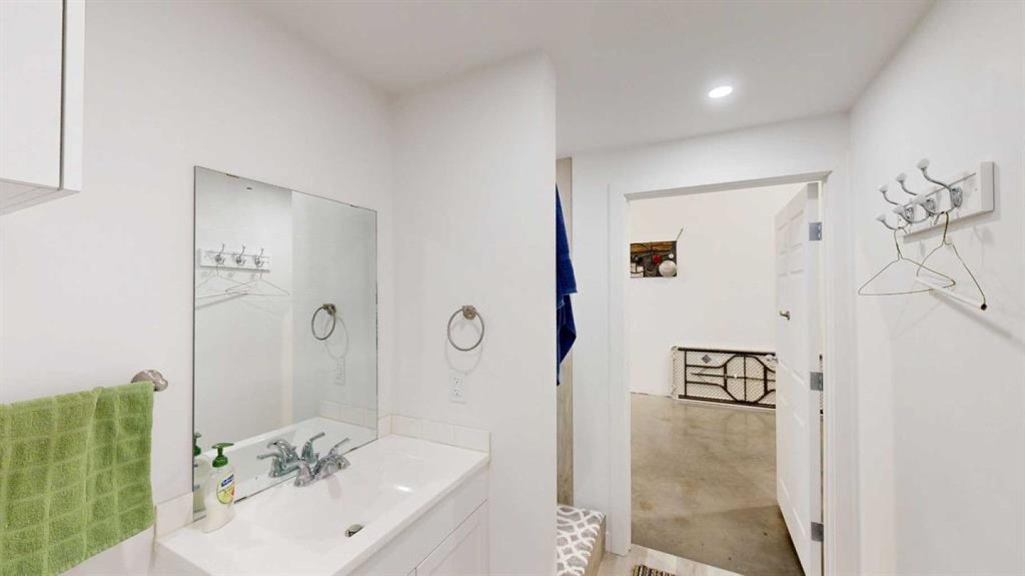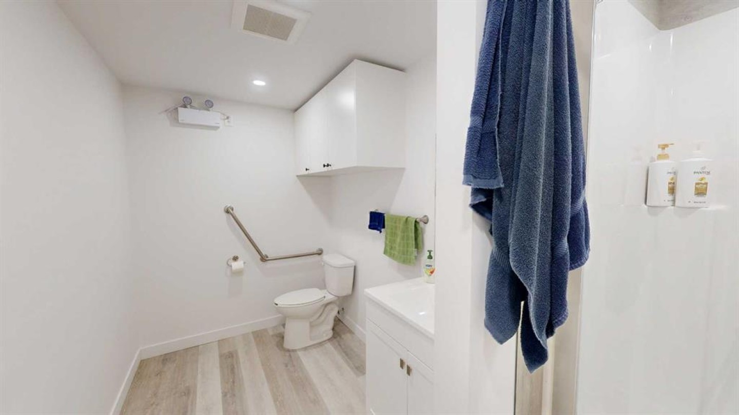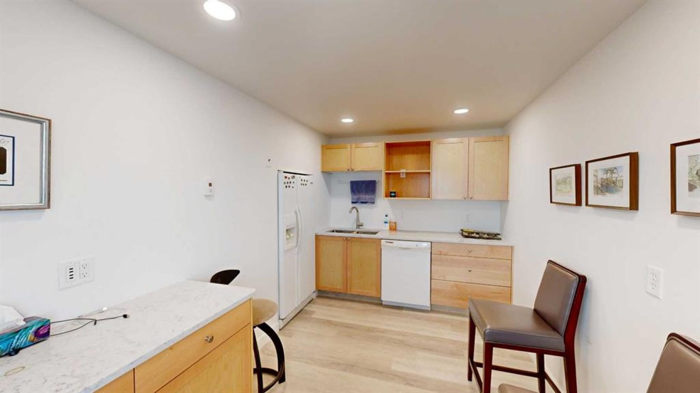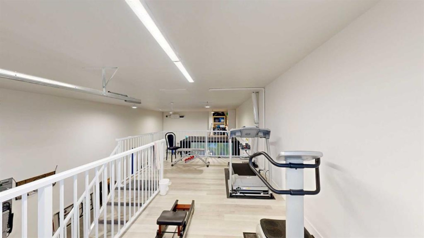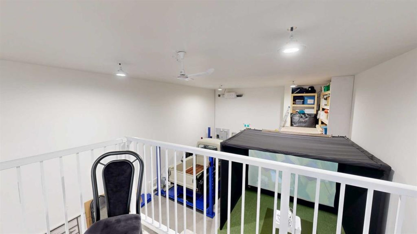 This bay is fully finished and features in-floor heating, 16’ ceilings, a 14’ overhead door, floor drain, a 3-piece bathroom, and a versatile kitchen/office area. The mezzanine provides additional workspace or storage, making the unit ideal for trades, small industrial operations, service companies, e-commerce, or collectors needing premium heated shop space.