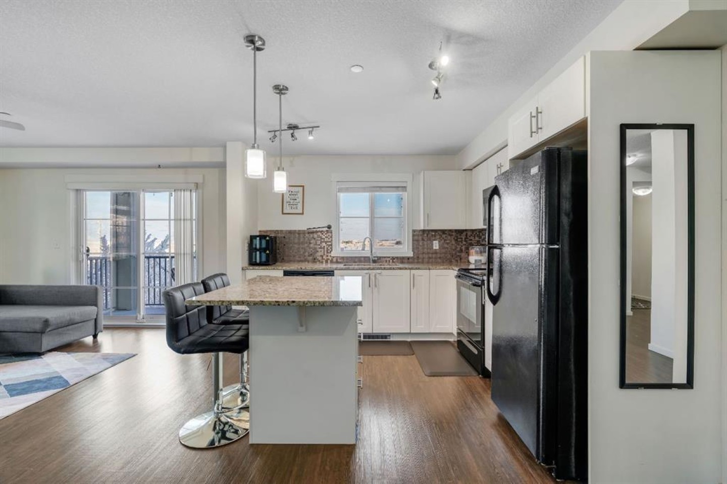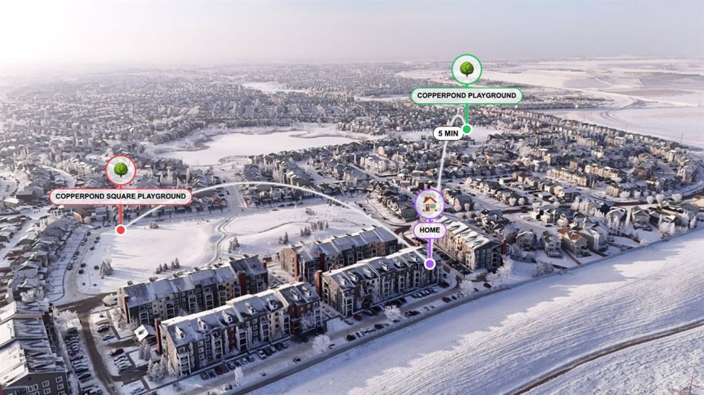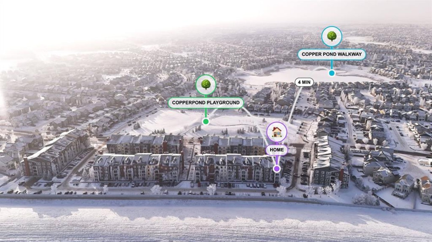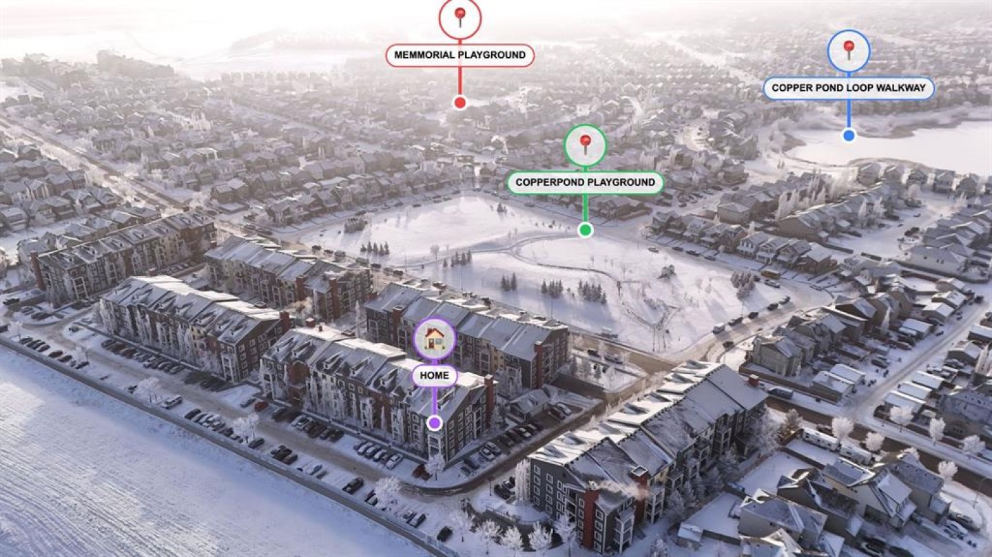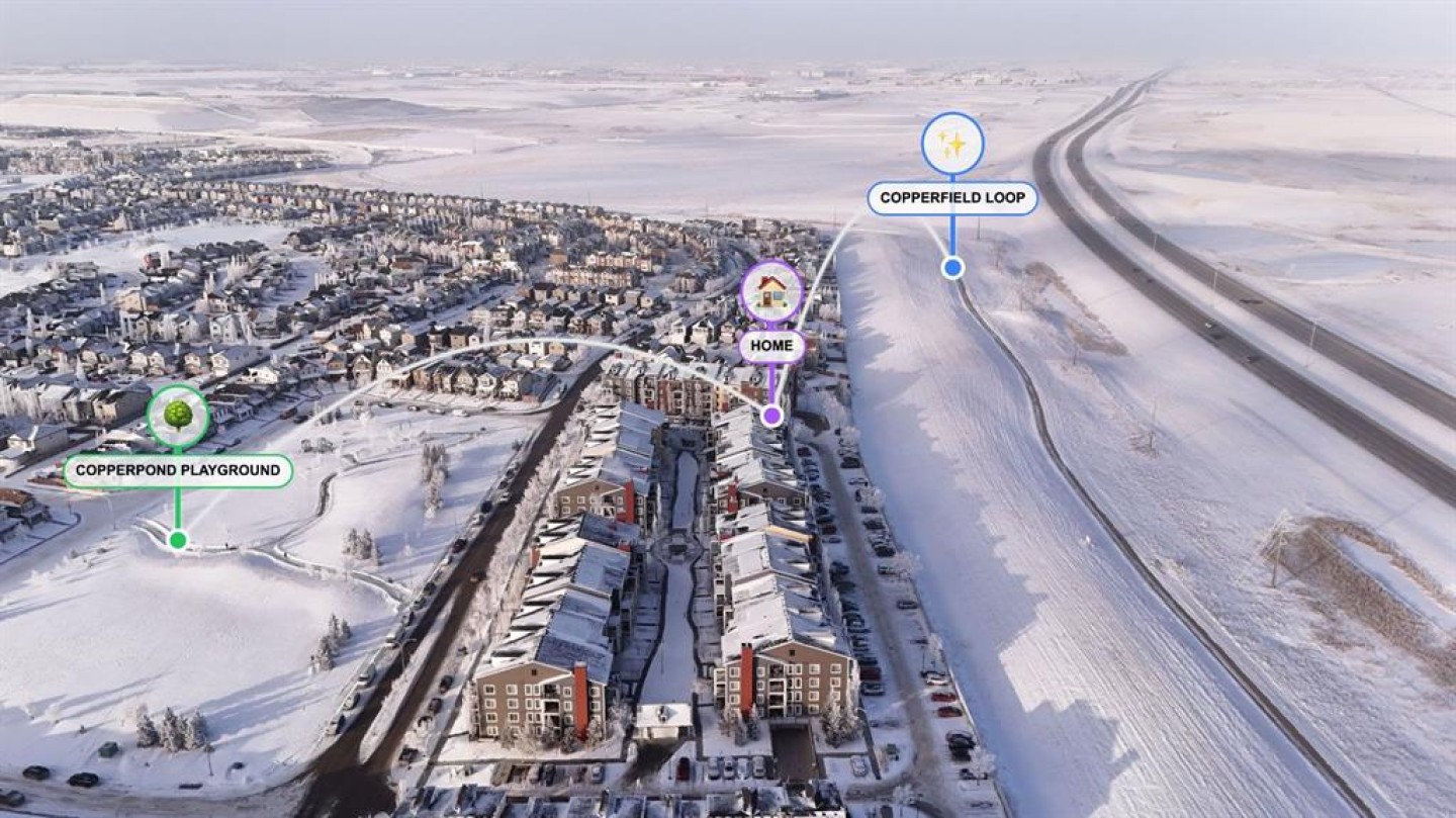 This doesn’t feel like your typical condo, it feels like a SPACIOUS HOME - Watch Video Tour! Picture this: you walk into a RARE 3RD FLOOR CORNER UNIT, suddenly noticing you actually have room to breathe in a MASSIVE 900+ SQ FT LAYOUT, then step onto your EAST-FACING BALCONY and think, “Wait… where are the other buildings?”because all you see are COMPLETELY UNOBSTRUCTED HORIZON VIEWS and open sky, the kind that makes mornings calm and evenings exciting enough that you might even catch a GLIMPSE OF THE AURORA BOREALIS if the night is feeling generous. This WELL-MAINTAINED CORNER UNIT clearly shows PRIDE OF OWNERSHIP, wrapped in a CLASSIC BRICK EXTERIOR that feels welcoming before you even step inside. Once you do, the BRIGHT & OPEN FLOOR PLAN pulls you in with LARGE WINDOWS, BEAUTIFUL VINYL PLANK FLOORING, and NEWER BEDROOM CARPETS, starting with a smart entry hallway that keeps your living space private and gives you room for bags, shoes, and real life plus a stylish feature wall that quietly says, “Yes, this place is special.” The kitchen quickly becomes the star of the show with GRANITE COUNTERTOPS, a CENTRE ISLAND WITH PENDANT LIGHTING perfect for breakfasts, coffee, or midnight snacks, and a SINK WITH A VIEW that somehow makes dishes feel less like a chore. The MASSIVE LIVING ROOM opens directly to the balcony, features a stunning accent wall, and feels so cozy it might ruin hotel stays forever, while a DEDICATED DINING SPACE sits conveniently beside the kitchen for dinners you’ll swear you’ll host more often. The PRIMARY BEDROOM offers peaceful views, DUAL WALK-THROUGH CLOSETS, and a PRIVATE ENSUITE FULL BATHROOM, while the SECOND BEDROOM WITH A VIEW sits near the 4-PIECE MAIN BATH. Add UPGRADED IN-SUITE LAUNDRY, CORNER TITLED HEATED UNDERGROUND PARKING, an ASSIGNED STORAGE UNIT, AMPLE VISITOR PARKING, and PET-FRIENDLY (BOARD APPROVAL) living in a special complex with a beautifully designed central courtyard, and life just gets easier. Step outside this specific building in COPPERFIELD PARK II and you’re surrounded by PARKS, PLAYGROUNDS, PONDS, WALKING PATHS, AND SPORTS COURTS, while being just minutes from 130TH AVENUE, SOUTH HEALTH CAMPUS, shopping, dining, schools, and effortless access to STONEY TRAIL & DEERFOOT TRAIL and with a PROFESSIONALLY MANAGED COMPLEX offering solar assistance and beautifully maintained grounds, this home delivers quiet residential living, unbeatable value, and the kind of comfort that makes you wonder why you didn’t move sooner, because once you see it, you won’t be asking if it’s the one, you’ll be asking how fast you can make it yours.