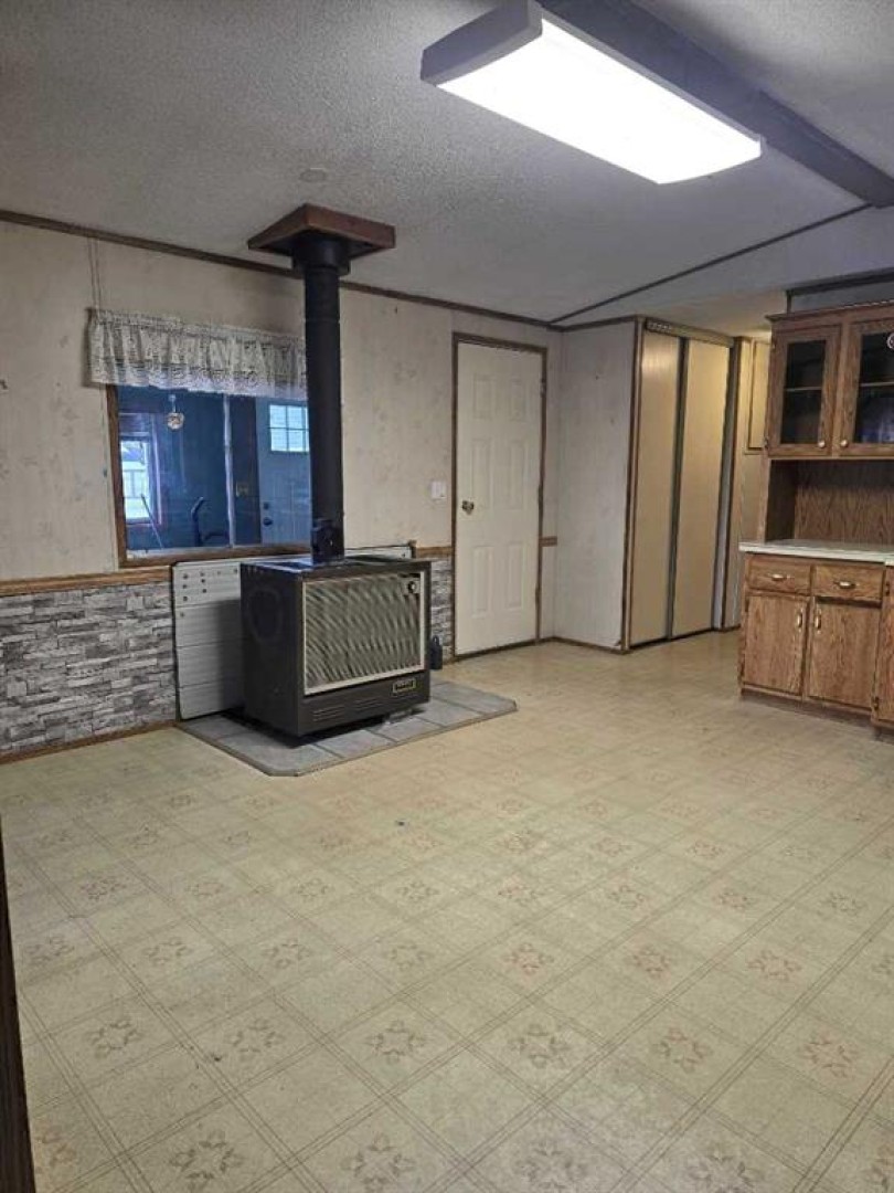 This 1990 mobile home offers approx 1,152 square feet of living space with 3 bedrooms and 1.5 bathrooms, sitting on a generous 14,375 sq ft lot. The double detached garage is heated and includes a workshop area, perfect for projects, storage, or hobby use. You’ll also find room to park an RV or trailer with ease. The home is serviced by a private well, septic tank, and field system. It does need work and finishing touches, but the potential is real for the right buyer looking to build equity or invest. Located in Hespero, just a 35-minute drive to Red Deer, this property delivers space, utility, and rural privacy with town access nearby.