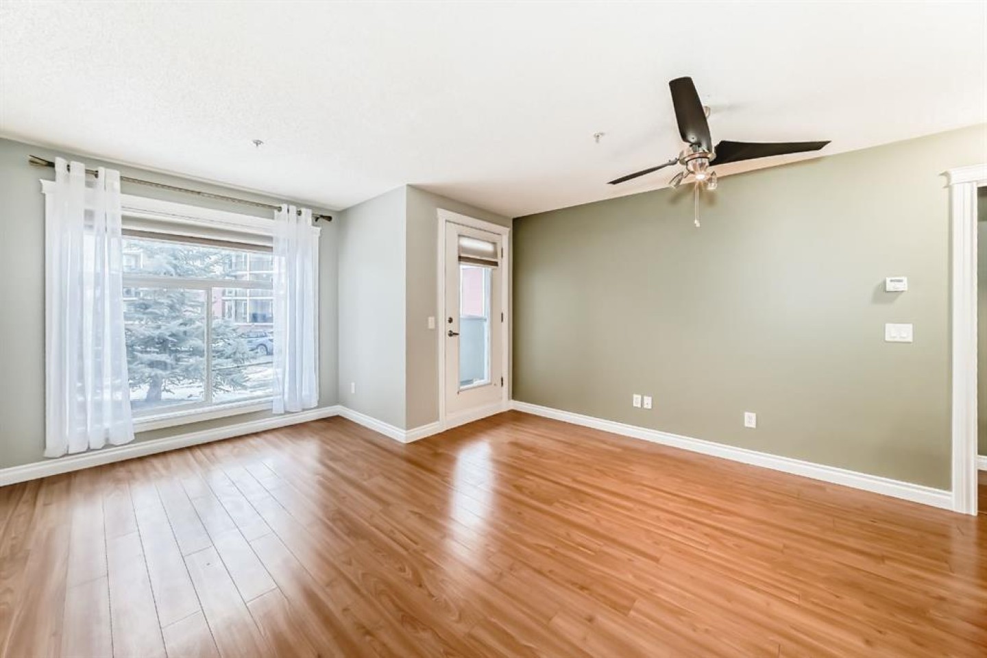 Welcome to this well-maintained southwest facing, spacious condo, offering over 1100 sq. ft. of comfortable living space. This home is great for small families, first-time buyers, or those looking to downsize. Step inside this main floor condo to find an airy, open-concept layout with a central kitchen island. This home boasts two generously sized bedrooms, including a primary suite with a large walk-in closet and a private ensuite bathroom. A second bedroom as well as a second full bathroom that adds extra convenience for guests or family. This home has in-floor heat, in-suite washer and dryer, also includes a titled heated underground parking stall and currently leasing a second out door parking stall (year by year basis). Ideally located close to parks, schools, shopping, and quick access to major routes.
