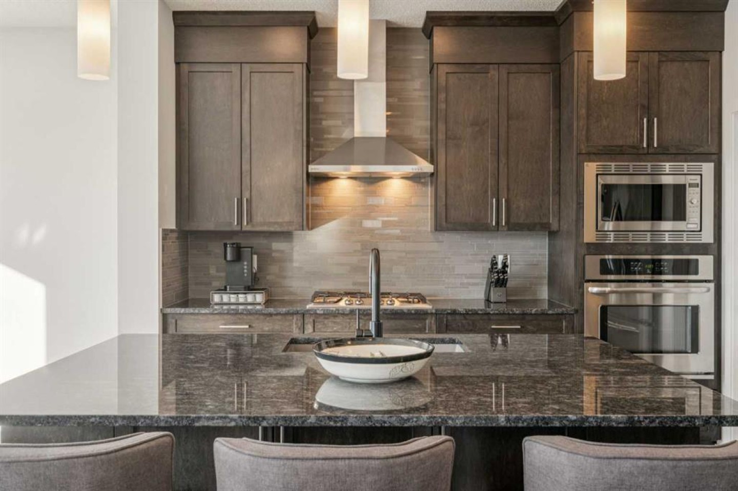 The main level is designed for both everyday living and entertaining, offering a PRIVATE OFFICE, a cozy GAS FIREPLACE, and a seamless OPEN CONCEPT layout. The chef’s kitchen impresses with ceiling-height cabinetry, UPGRADED APPLIANCES, a built-in microwave, wall oven, gas cooktop and range hood, and timeless finishes throughout.