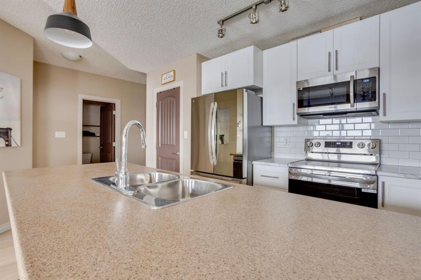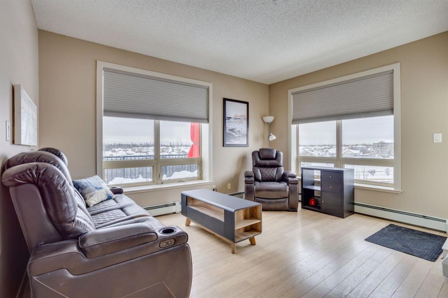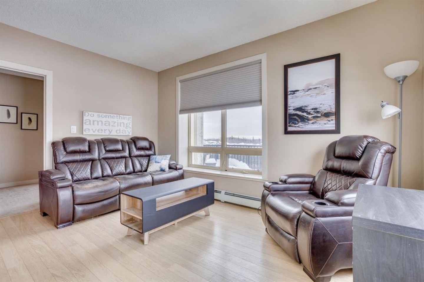 Beautifully Updated Executive Corner Unit in Eagle Ridge Welcome to The Summits in Eagle Ridge—an exceptional, updated executive-style top-floor corner unit offering privacy, freshly painted interiors, and two exterior balconies. This elegant 1,014 sq. ft. open-concept condominium features 2 bedrooms and 2 bathrooms and is being sold fully furnished, providing a truly turnkey living experience. The bright, modern kitchen features laminate flooring, white upper cabinetry, a convenient eat-up breakfast bar, and ample cabinet and counter space. Recent upgrades include a new stainless steel refrigerator, stove, microwave, washer, and dryer, along with a newly installed white subway tile backsplash. Both bedrooms are generously sized and offer plush carpet flooring and large windows. The primary suite includes a walk-through closet, a 4-piece ensuite bathroom with a tub/shower combination, and private access to one of the exterior balconies. The secondary bedroom is conveniently located near an additional 4-piece bathroom. The main living area is highlighted by laminate flooring, central air conditioning, and abundant natural light, with direct access to the second covered exterior balcony—ideal for relaxing or entertaining. Additional highlights include two titled underground tandem parking stalls and a titled storage unit. Residents of The Summits enjoy access to premium amenities, including a fitness centre and wash bay. Condo fees include water, heat, garbage, exterior insurance, and reserve fund contributions. Contact us today to schedule your private viewing of this exceptional, fully furnished property.