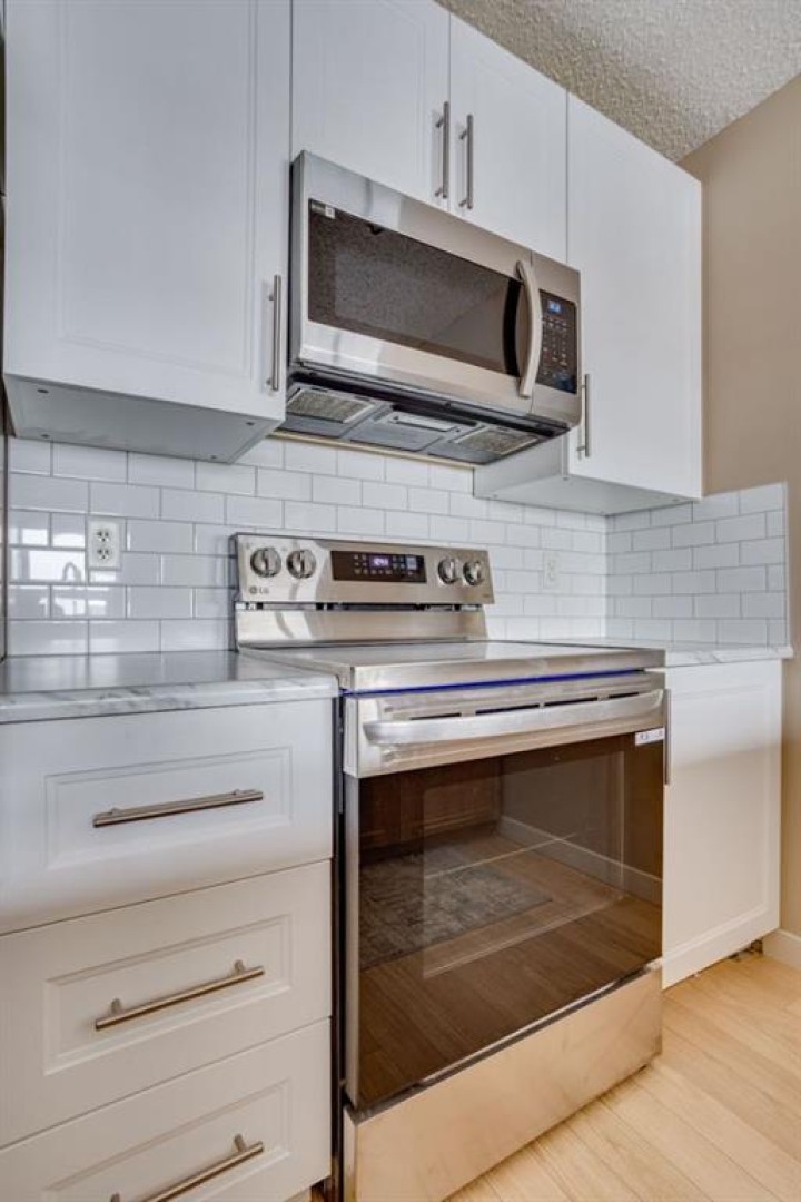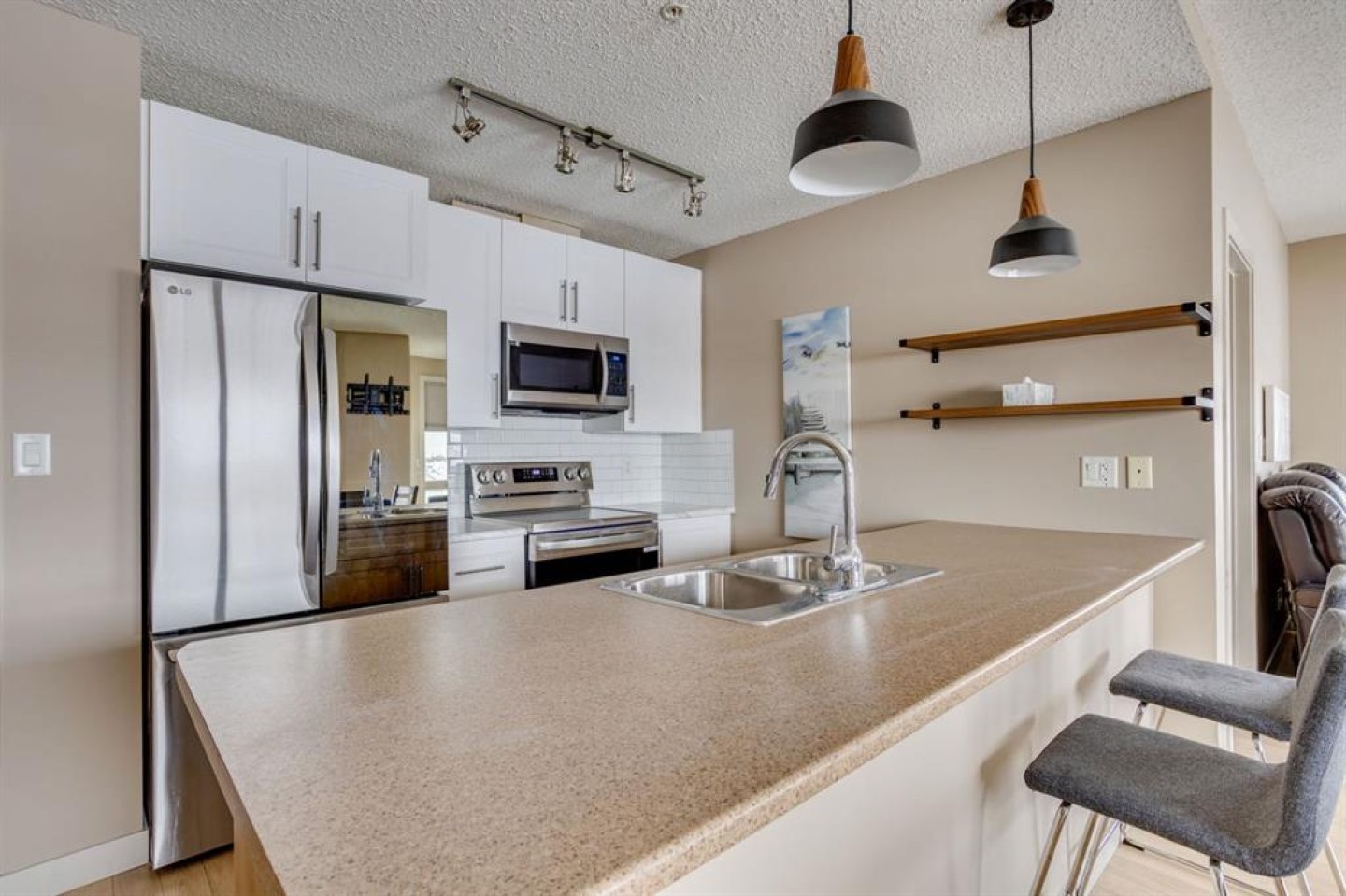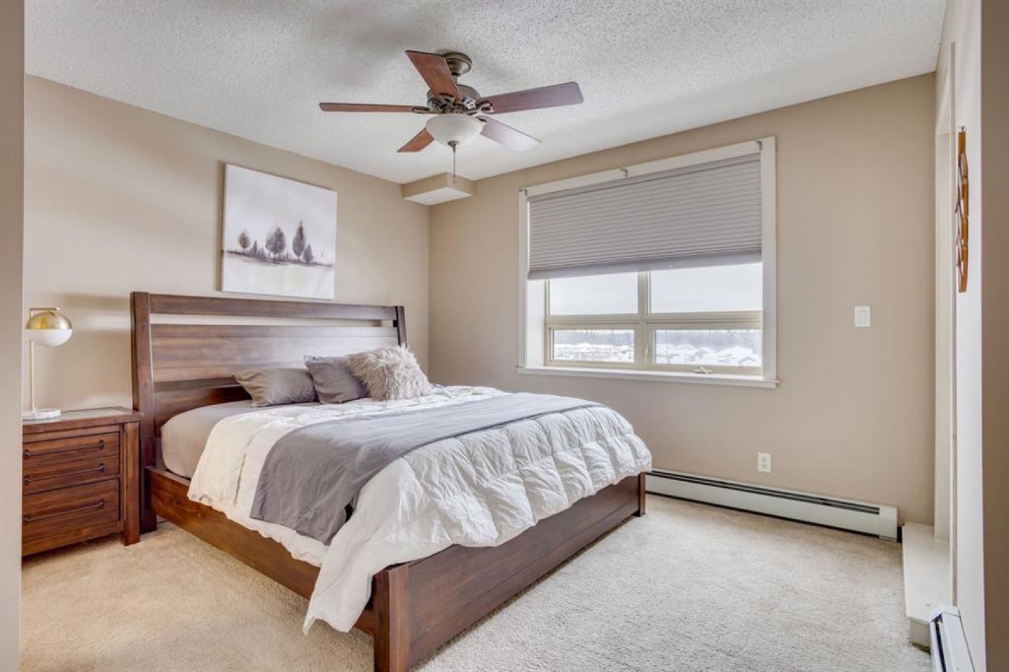 Beautifully Updated Executive Corner Unit in Eagle Ridge Welcome to The Summits in Eagle Ridge—an exceptional, updated executive-style top-floor corner unit offering privacy, freshly painted interiors, and two exterior balconies. This elegant 1,014 sq. ft. open-concept condominium features 2 bedrooms and 2 bathrooms and is being sold fully furnished, providing a truly turnkey living experience. The bright, modern kitchen features laminate flooring, white upper cabinetry, a convenient eat-up breakfast bar, and ample cabinet and counter space. Recent upgrades include a new stainless steel refrigerator, stove, microwave, washer, and dryer, along with a newly installed white subway tile backsplash. Both bedrooms are generously sized and offer plush carpet flooring and large windows. The primary suite includes a walk-through closet, a 4-piece ensuite bathroom with a tub/shower combination, and private access to one of the exterior balconies. The secondary bedroom is conveniently located near an additional 4-piece bathroom. The main living area is highlighted by laminate flooring, central air conditioning, and abundant natural light, with direct access to the second covered exterior balcony—ideal for relaxing or entertaining. Additional highlights include two titled underground tandem parking stalls and a titled storage unit. Residents of The Summits enjoy access to premium amenities, including a fitness centre and wash bay. Condo fees include water, heat, garbage, exterior insurance, and reserve fund contributions. Contact us today to schedule your private viewing of this exceptional, fully furnished property.