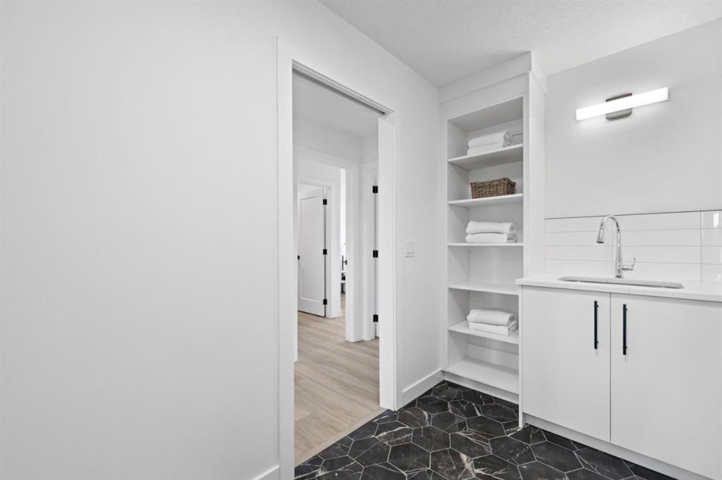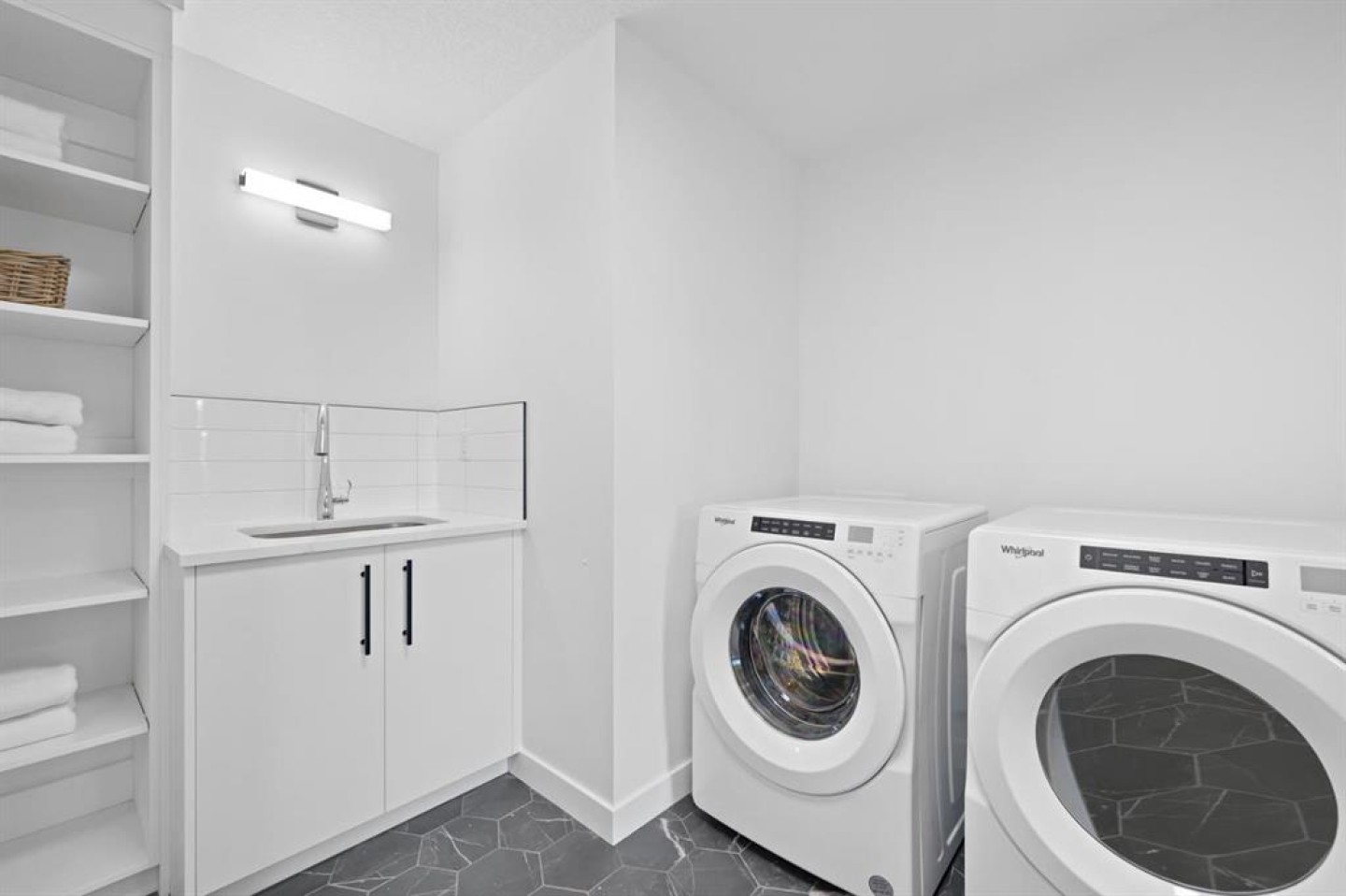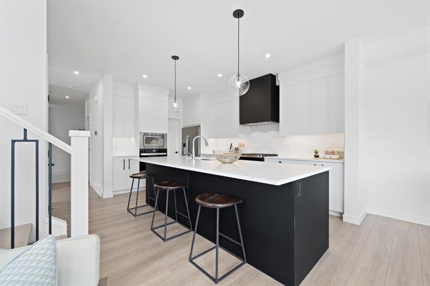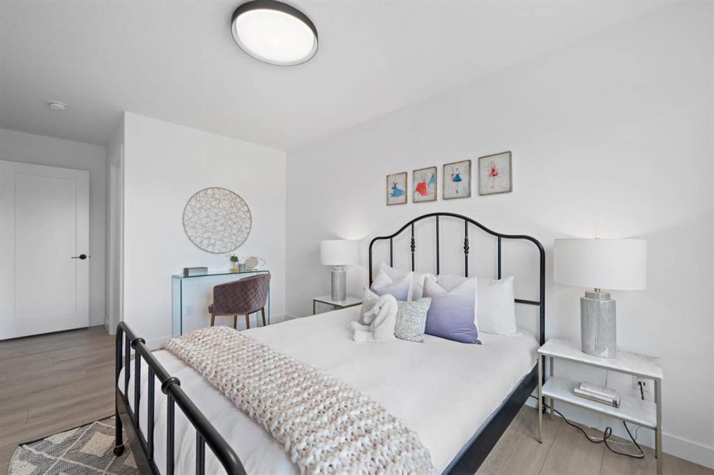 Upstairs, the primary retreat is defined by a tray ceiling, a spa-inspired 5-piece ensuite, and a generous walk-in closet enhanced with custom built-in organizers. Two additional bedrooms—each featuring built-in closet systems—are complemented by a central bonus room, a modern 4-piece bath, and convenient upper-level laundry, offering both comfort and functionality for today’s lifestyles.