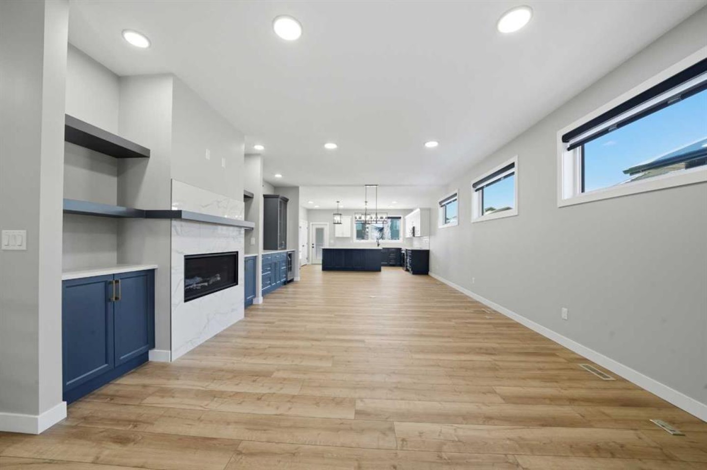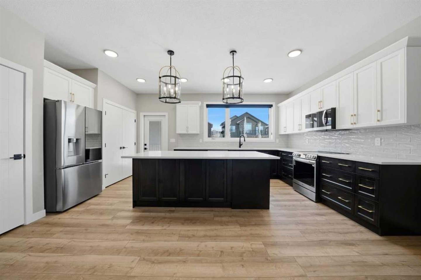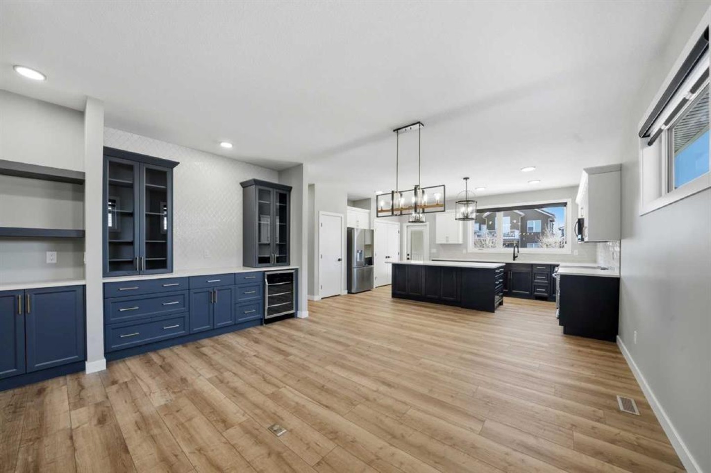 This statement raised Bungalow by Riser Homes is built for space, style, and entertaining. Offering 1,862 sq ft on the main level, high ceilings, and a large entry with custom built in bench, this home delivers scale rarely found in bungalow living. The open main floor features a custom living room feature wall, floor plug ins, designer kitchen with custom cabinetry, abundant pull-out drawers, hidden island storage, top of the line LG appliances, pantry, broom closet, pull-out faucets, and a dedicated coffee & dry bar station with a bar fridge. Three oversized main-floor bedrooms include a primary suite with heated ensuite floors that extend to the tile shower. A fabulous main floor laundry room equipped with tower stackable washer/dryer, lots of cabinets and a sink. Extras: Toto toilets, quad outlets, and custom battery-powered blinds throughout. Outdoor living shines with a 30'x10' deck and built-in pregola, complete with gas line for BBQ or smoker. The fully finished heated 25x24 garage offers dual doors an a floor drain. Other extras: A/C, Gem exterior lighting, wired for security and New Home Warranty. The basement is framed and ready - functioning in-floor heat, 3 large bedrooms (approx. 13x11 each), 4 piece bath plumbed (bath tub and counter included), wet bar roughed-in, gas fireplace roughed-in, second laundry plumbed in, massive storage/workshop, and an ideal layout for a games room or golf simulator space and family lounge. Walk to trails, parks, schools, amenities, aquatic centre nearby, easy highway access and just 10 minutes to Red Deer.