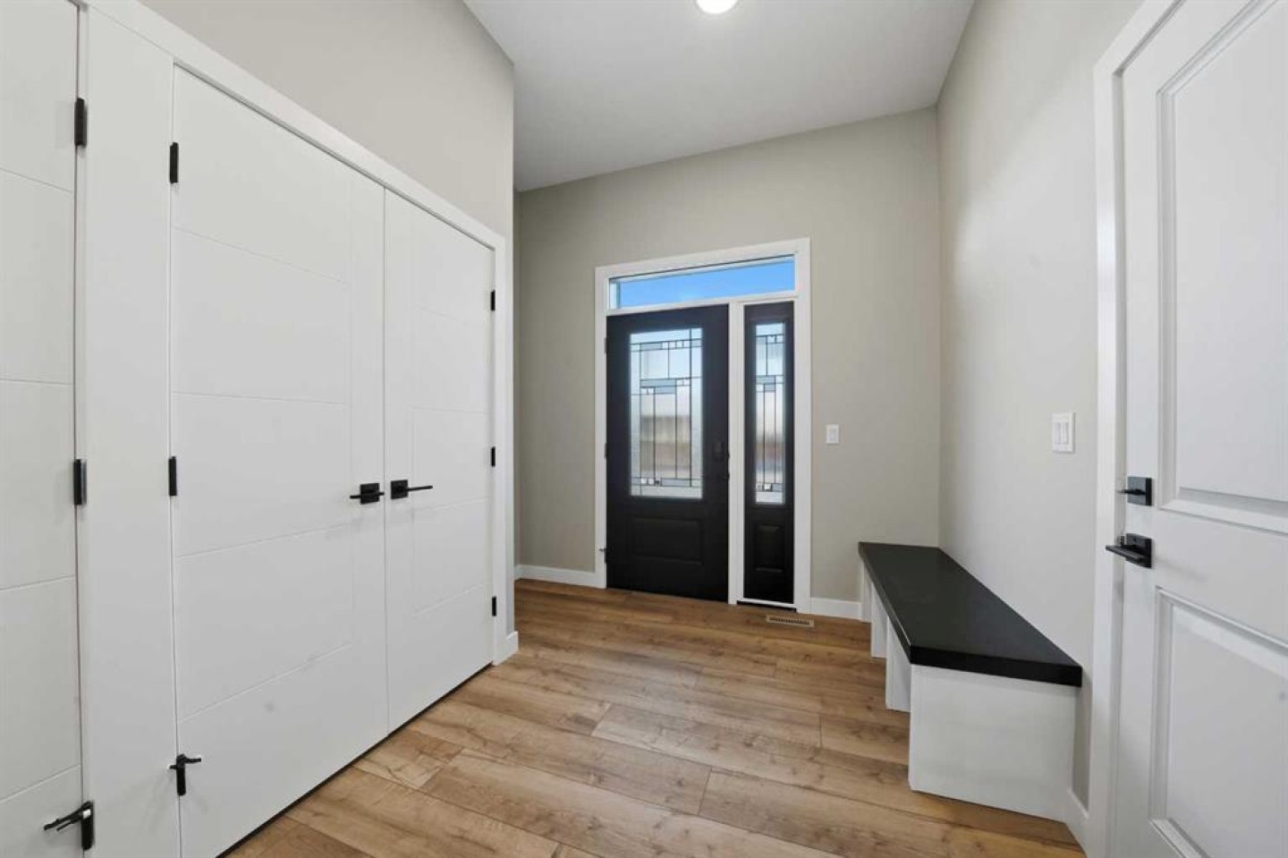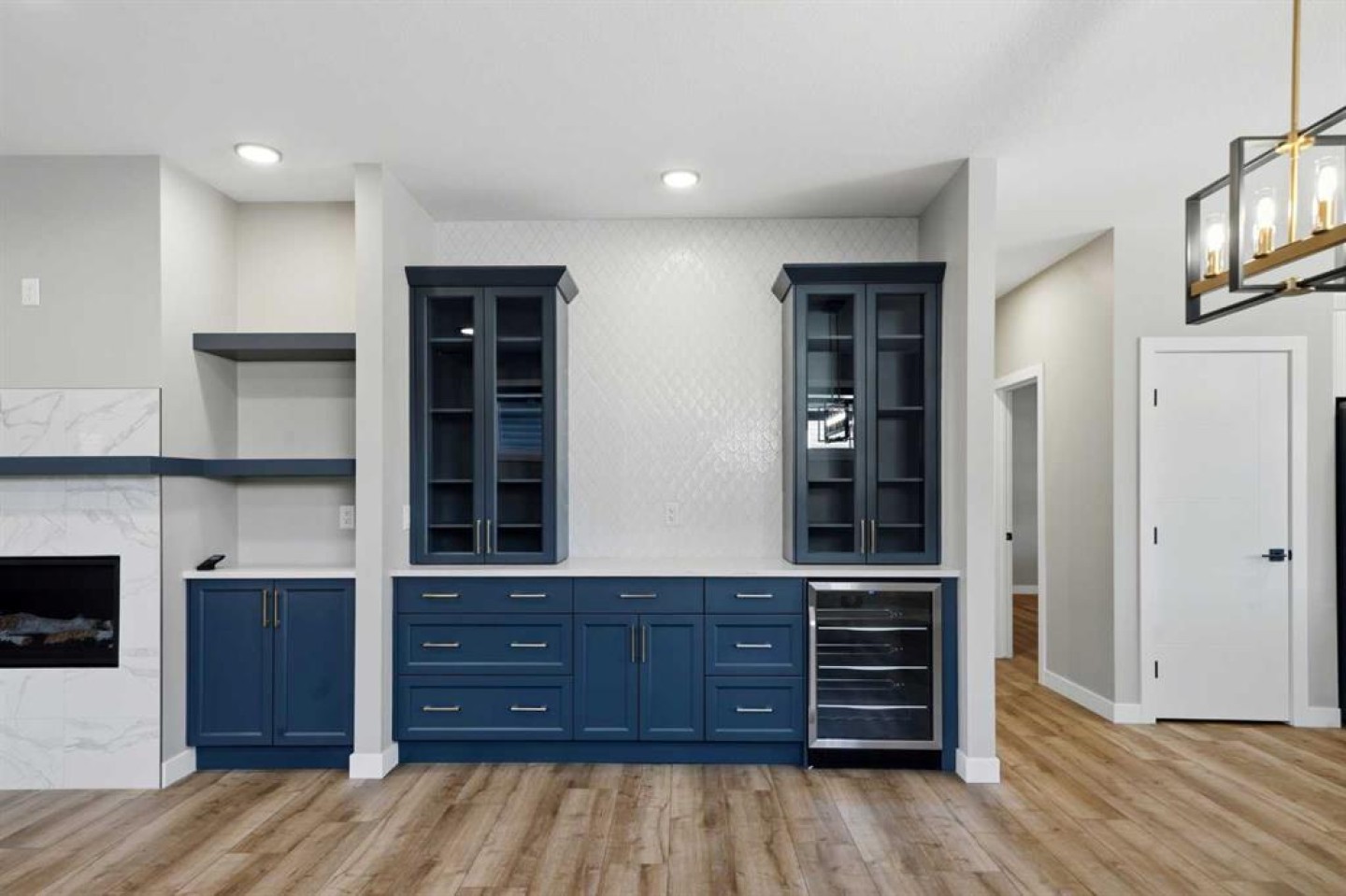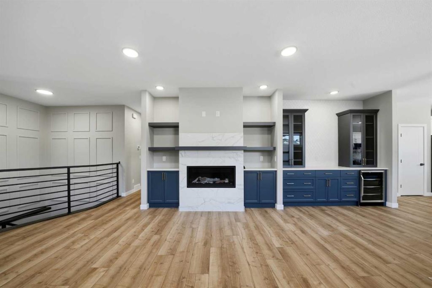 This statement raised Bungalow by Riser Homes is built for space, style, and entertaining. Offering 1,862 sq ft on the main level, high ceilings, and a large entry with custom built in bench, this home delivers scale rarely found in bungalow living. The open main floor features a custom living room feature wall, floor plug ins, designer kitchen with custom cabinetry, abundant pull-out drawers, hidden island storage, top of the line LG appliances, pantry, broom closet, pull-out faucets, and a dedicated coffee & dry bar station with a bar fridge. Three oversized main-floor bedrooms include a primary suite with heated ensuite floors that extend to the tile shower. A fabulous main floor laundry room equipped with tower stackable washer/dryer, lots of cabinets and a sink. Extras: Toto toilets, quad outlets, and custom battery-powered blinds throughout. Outdoor living shines with a 30'x10' deck and built-in pregola, complete with gas line for BBQ or smoker. The fully finished heated 25x24 garage offers dual doors an a floor drain. Other extras: A/C, Gem exterior lighting, wired for security and New Home Warranty. The basement is framed and ready - functioning in-floor heat, 3 large bedrooms (approx. 13x11 each), 4 piece bath plumbed (bath tub and counter included), wet bar roughed-in, gas fireplace roughed-in, second laundry plumbed in, massive storage/workshop, and an ideal layout for a games room or golf simulator space and family lounge. Walk to trails, parks, schools, amenities, aquatic centre nearby, easy highway access and just 10 minutes to Red Deer.