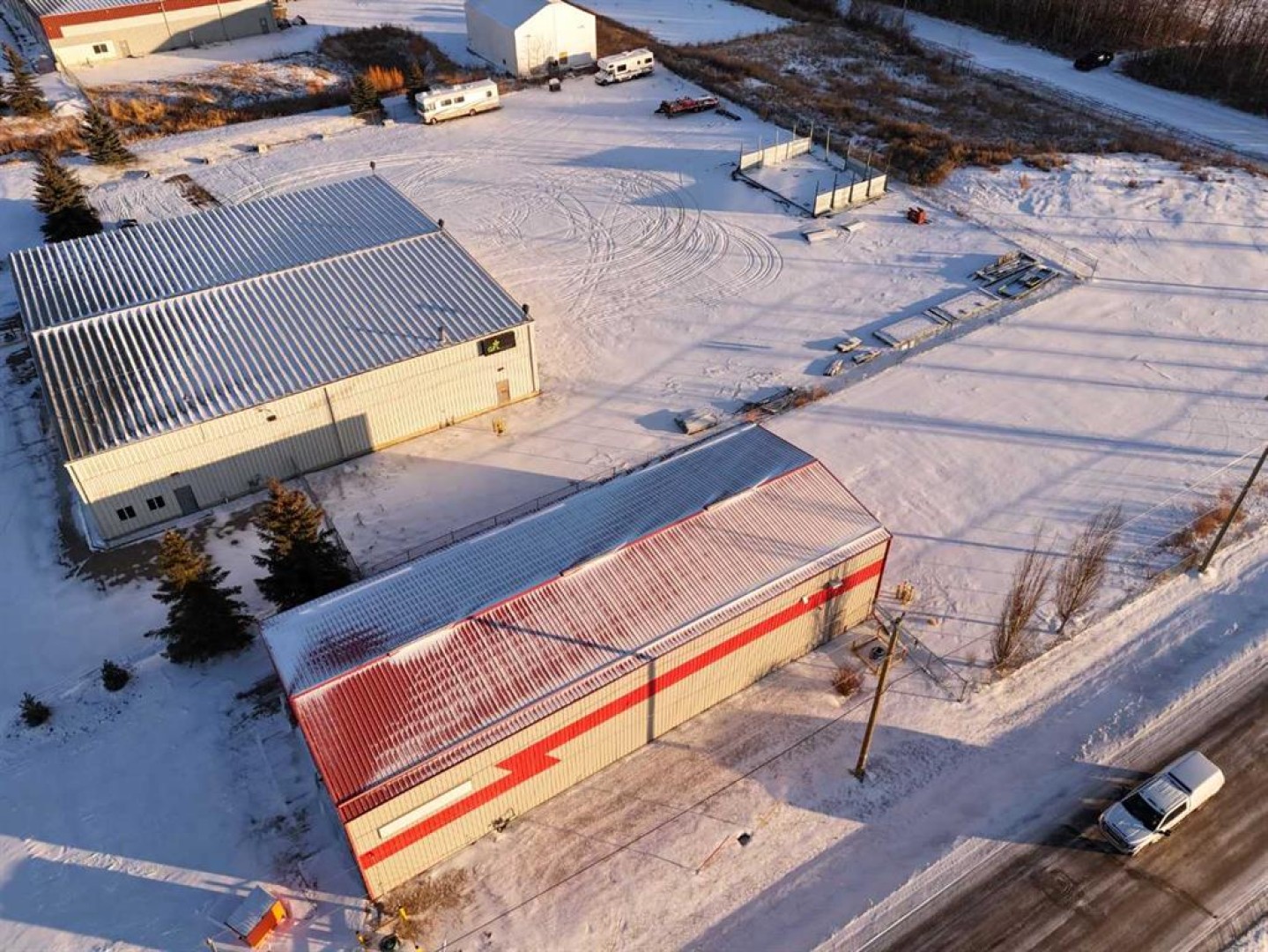 TWO SHOPS! One Title! FRESH PAVEMENT THROUGH OUT NEWLY SUBDIVIDED SUBDIVISION! Featuring one 10,000 SQ FT STAND ALONE SHOP w/ office spaces developed on both the East & West sides, AND one 4,000 SQ FT STAND ALONE SHOP on 2.99 Acres of FENCED, COMPACTED GRAVEL YARD! 10,000 SQ FT Shop leased out to GFL ENVIRONMENTAL until 2030! (w 5year renewal clause) Paved front drive for customer/ employee parking, along a paved entrance road. NEW LED SHOP LIGHTS in both shops, New office flooring, fresh paint , SEALED FLOOR with separate shop & sewer sumps in each shop, Located in the NEW BLINDMAN INDUSTRIAL AREA- #5 Shop Features 100'x100' long building with 4-14’x16’h DRIVE-THRU BAYS at the front, 6-14'X16'H bay doors at the back, TEN bay doors in total. 5 offices, 2-board rooms, Locked tool crib, 5 baths in total and two undeveloped Mezzanine floors. Low Operations costs (available to interested purchasers) Decent drive-around access provided by drive-thru gate on west side of the property. #3 Shop 40'x100' Shop with a FULLY FENCED yard.,Catering to Oilfield/ Mechanical and many other BSI Zoned businesses. Infrared tube heating, well insulated attractive building. High bay LED LIGHTING, large insulated overhead doors, signage on building for your graphics. Secured Yard Spaces. WELL MAINTAINED 40'x 100' DRIVE-THRU SHOP SPACE!. "19 foot ceilings throughout, all steel (interior & exterior) overhead infrared heaters, a 16' wide by 16' high doors and one other shop 12'x16' door at the back. Reception, two offices/ 2 baths, Fully fenced & secure, seperate 1.0 ACRE YARD SPACE.. Visit REALTORS® website for more details on this great stand-alone shop in Red Deer County. BSI ZONED, lots of flexibility to operate your business from this space.