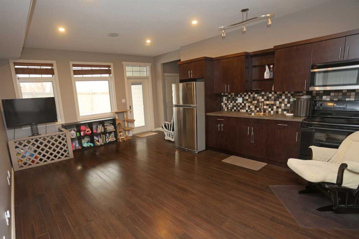 The fully developed lower level offers exceptional flexibility, featuring three bedrooms, a full bathroom, and a large common area complete with a kitchenette. This unique layout allows for a variety of living arrangements, including an income suite, Airbnb, caregiver accommodations, or a home based business.