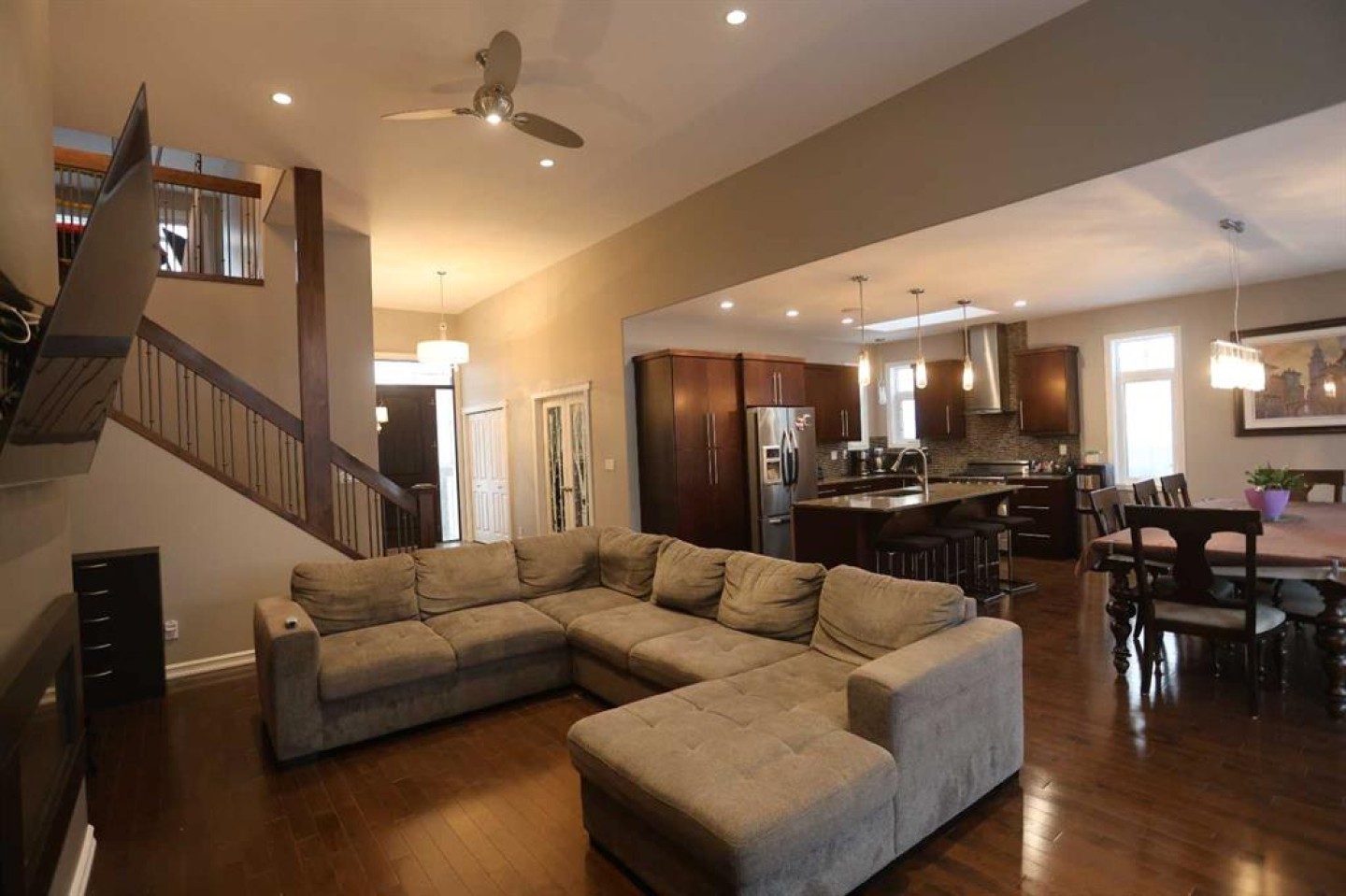 The main floor also features a luxurious primary suite with a 5-piece ensuite and walk-in closet, convenient main floor laundry, an additional 3 piece bathroom, and direct access to the heated double attached garage.