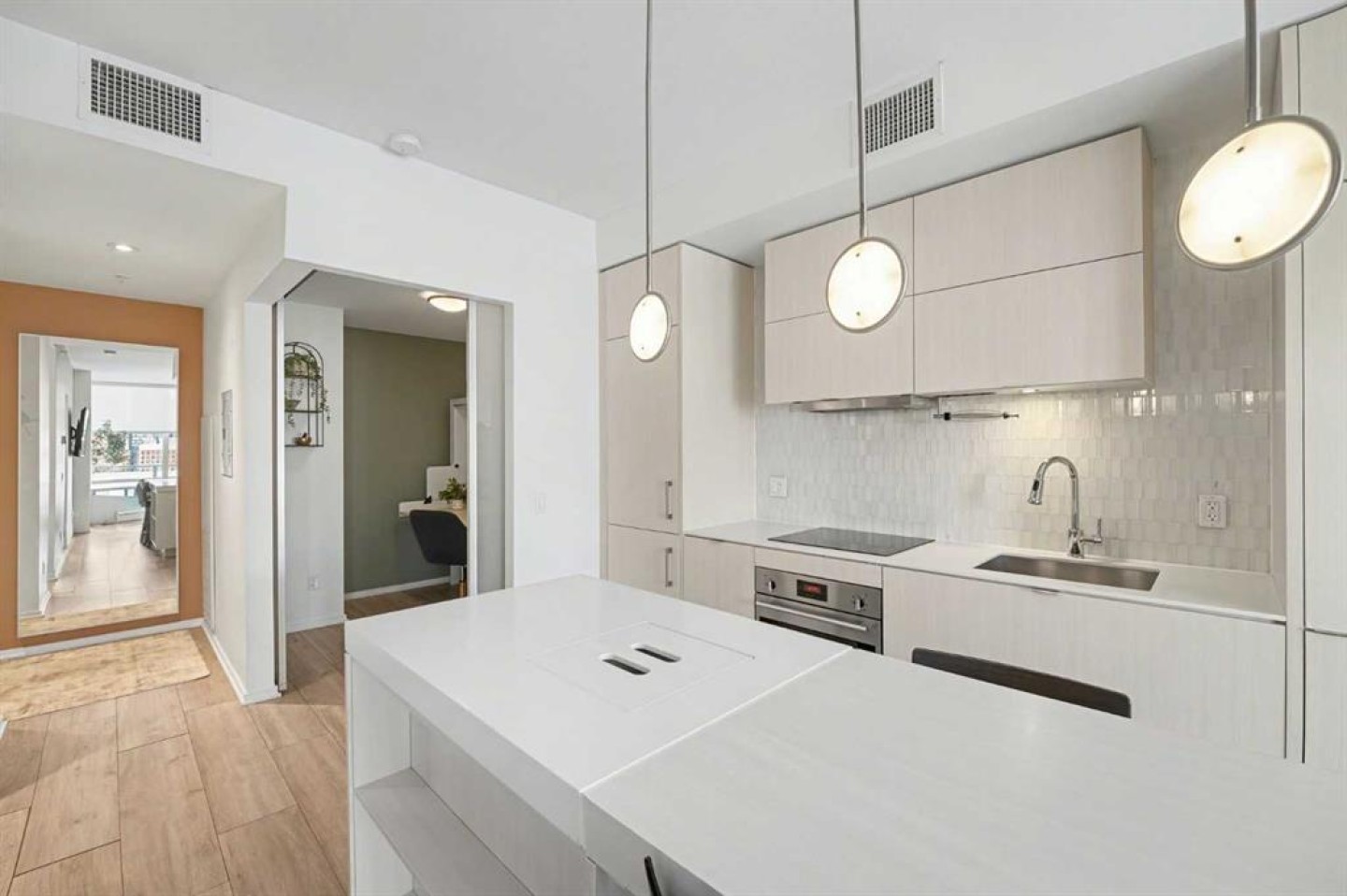 Experience refined inner city living from the 17th floor of Verve, a contemporary and secure high rise in the heart of East Village offering full concierge service and impressive resident amenities. This thoughtfully designed one bedroom, one bathroom plus den residence delivers both functionality and style, with expansive windows that frame beautiful views and flood the home with natural light.